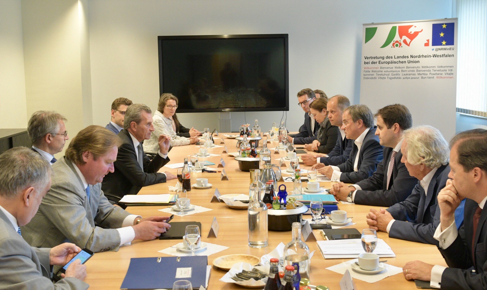 An der Auswärtigen Kabinettsitzung in der nordrhein-westfälischen Landesvertretung nahm als Gast der für Haushalt und Personal zuständige Kommissar der Europäischen Union, Günther Oettinger teil. Zentrale Gesprächsthemen mit ihm waren unter anderem die Zukunft des EU-Haushalts, der Mehrjährige Finanzrahmen ab 2021 und seinen Folgen für Nordrhein-Westfalen, so etwa die Möglichkeit zusätzlicher europäischer Fördermittel für Kohleregionen zur Bewältigung der Herausforderungen des Strukturwandels.