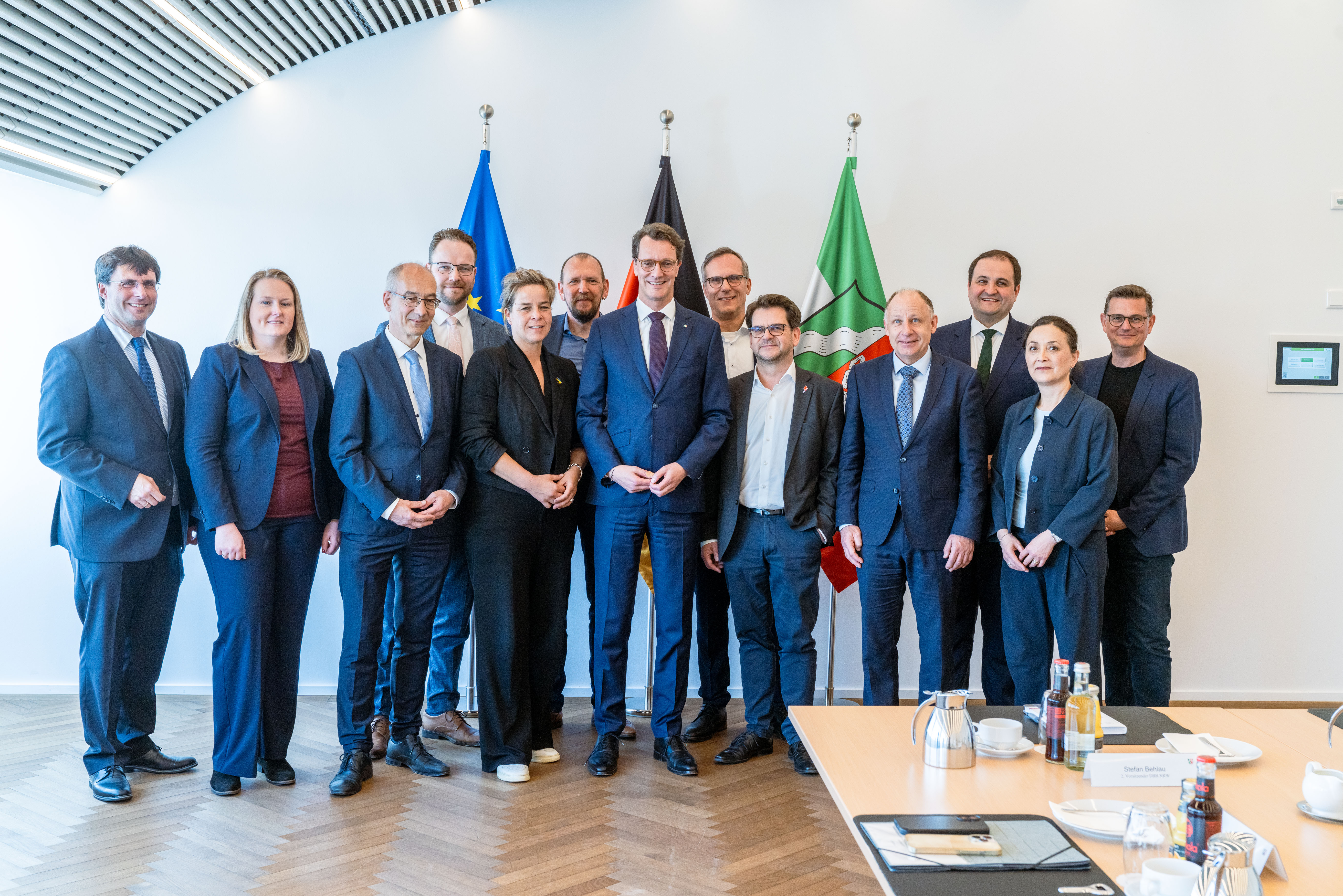 Die Landesregierung Nordrhein-Westfalen hat sich im Besoldungsgespräch mit den Vertreterinnen und Vertretern der Verbände und Gewerkschaften darauf verständigt, die Tarifeinigung vom 14. Februar 2026 systemgerecht eins zu eins auf die Beamtinnen und Beamten, Richterinnen und Richter sowie Versorgungsempfängerinnen und Versorgungsempfänger zu übertragen. An dem Gespräch nahmen von Seiten der Landesregierung Ministerpräsident Hendrik Wüst, stellvertretende Ministerpräsidentin Mona Neubaur, Finanzminister Dr. Marcus Optendrenk und Minister und Chef der Staatskanzlei Nathanael Liminski teil.