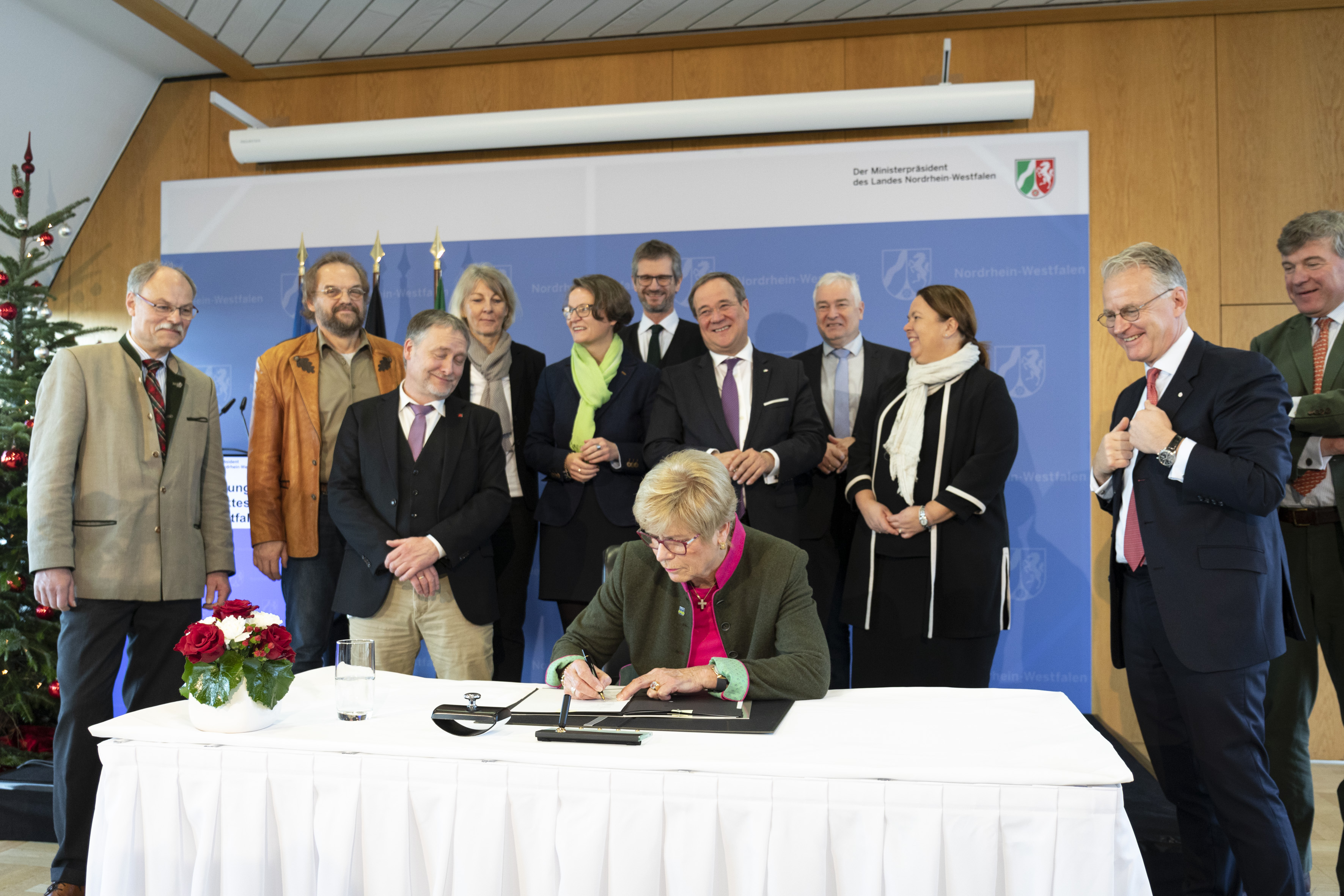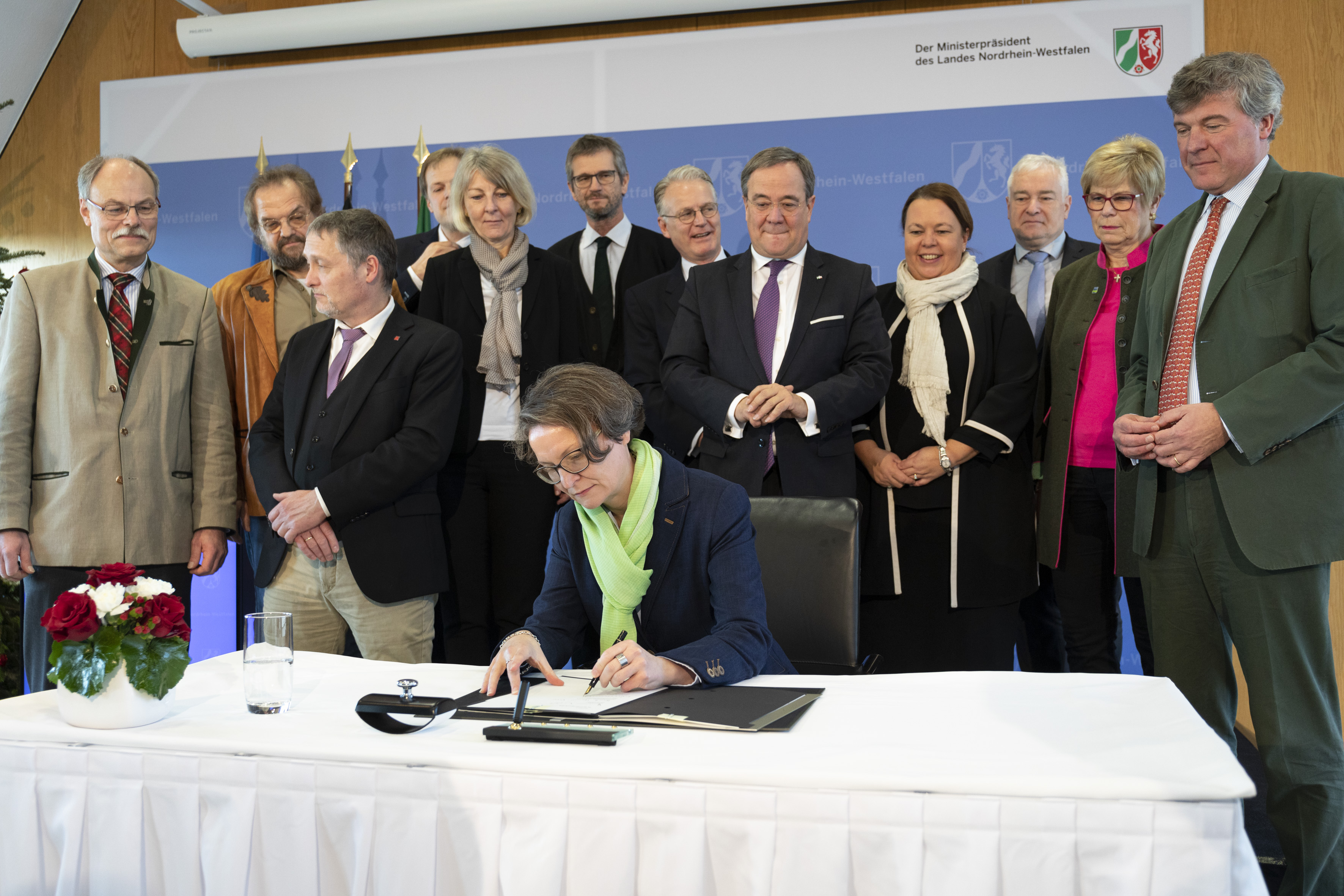 Um sich weiter gemeinsam für die Zukunft der Wälder zu engagieren, hat die Landesregierung in der Staatskanzlei des Landes Nordrhein-Westfalen mit Verbänden aus Forst- und Holzwirtschaft, Naturschutz und Berufsvertretung den Waldpakt „Klimaschutz für den Wald – unser Wald für den Klimaschutz“ unterzeichnet.