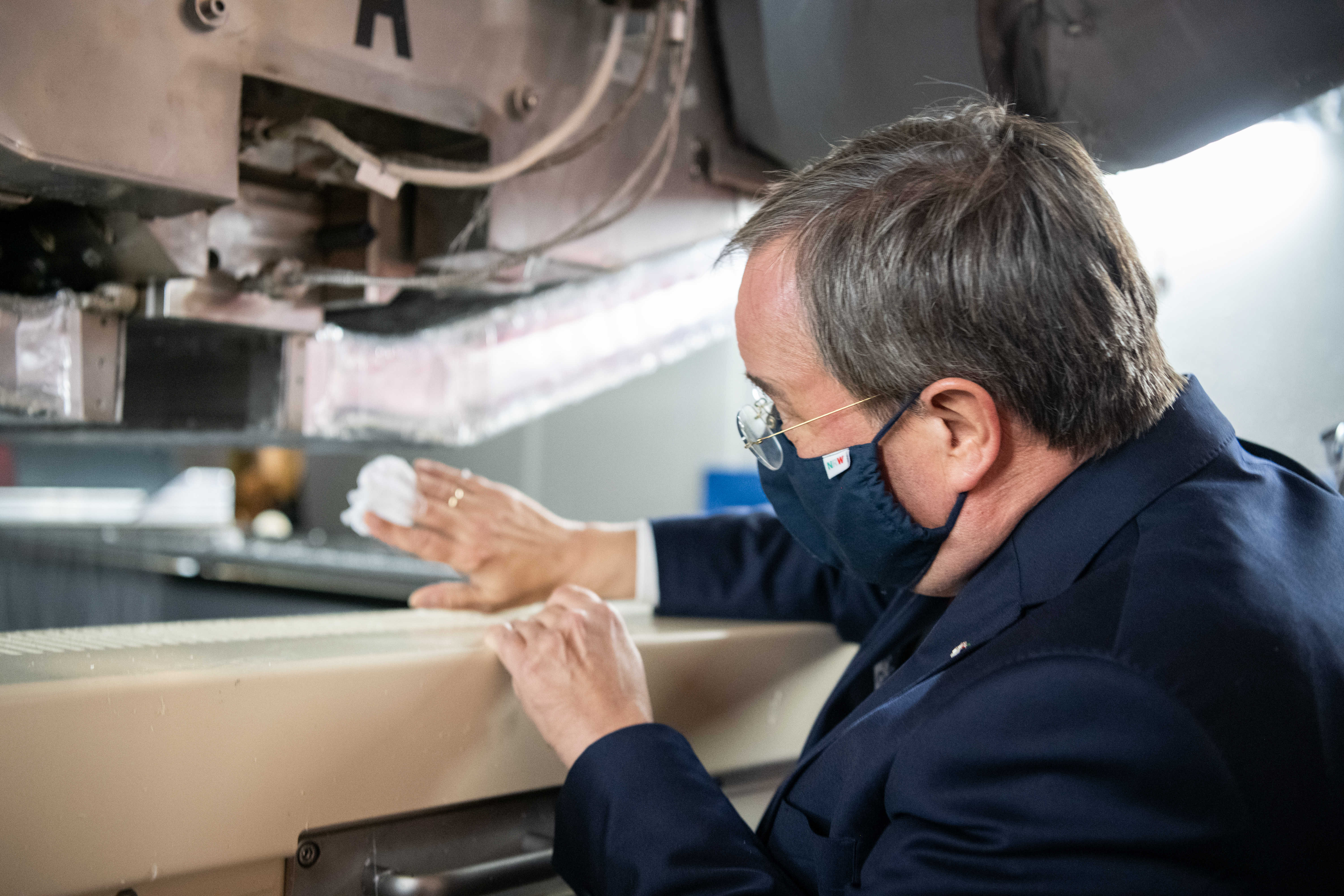 Ministerpräsident Armin Laschet hat am Freitag, 20. November 2020, das Unternehmen Innovatec Microfibre Technology GmbH & Co. KG in Troisdorf besucht. Anlass war die Inbetriebnahme der ersten von drei neuen Anlagen zur Produktion von Meltblown-Vliesgewebe.