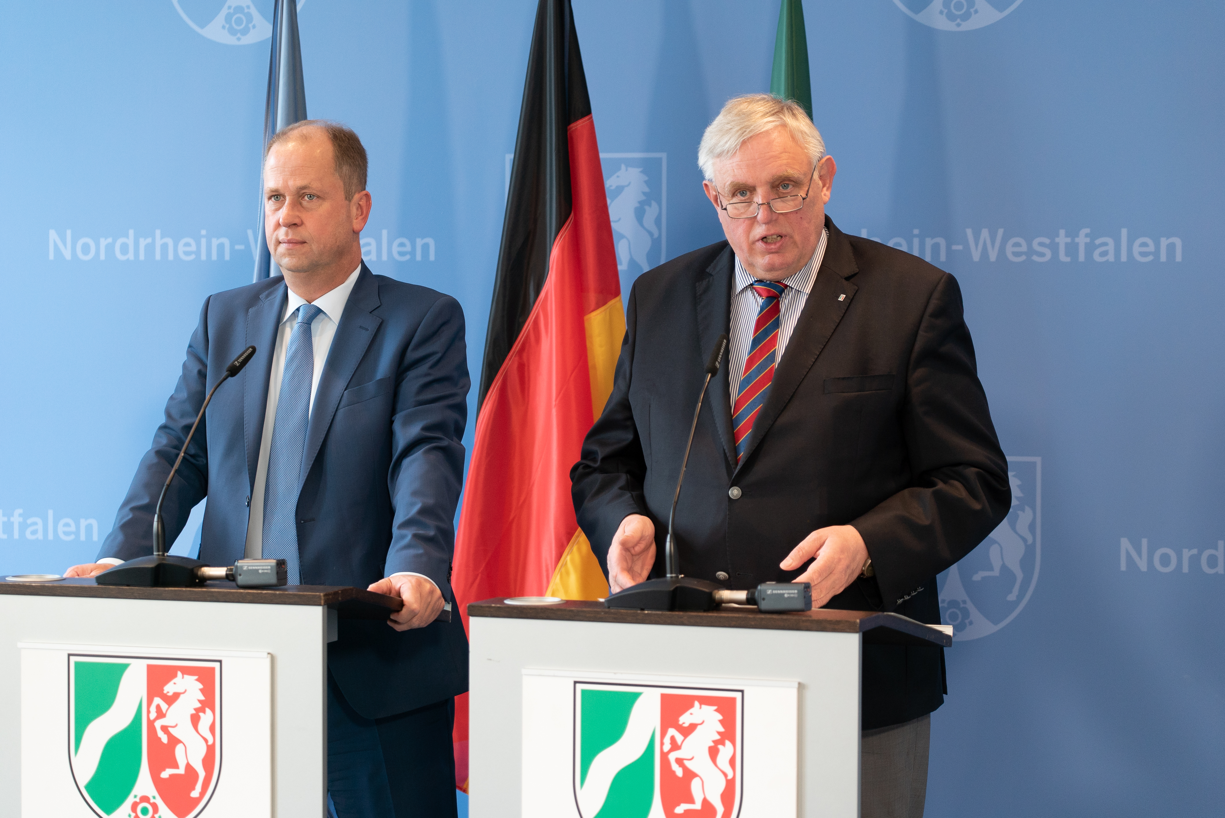 Ohne Schulabschluss und abgeschlossene Berufsausbildung ist eine nachhaltige Integration in den deutschen Arbeitsmarkt schwierig. Gerade bei jungen, erwachsenen Flüchtlingen kann eine Nachqualifizierung in Deutschland ihre Chancen auf dem Arbeitsmarkt erhöhen. Das Landeskabinett hat daher die Initiative „Durchstarten in Ausbildung und Arbeit“ verabschiedet, um insbesondere junge Flüchtlinge besser in Ausbildung und Arbeit zu bringen. Insgesamt werden Mittel in Höhe von 50 Millionen Euro zur Verfügung gestellt. Arbeitsminister Karl-Josef Laumann und Integrationsminister Joachim Stamp stellten das Programm im Anschluss an die Kabinettssitzung in Düsseldorf vor.