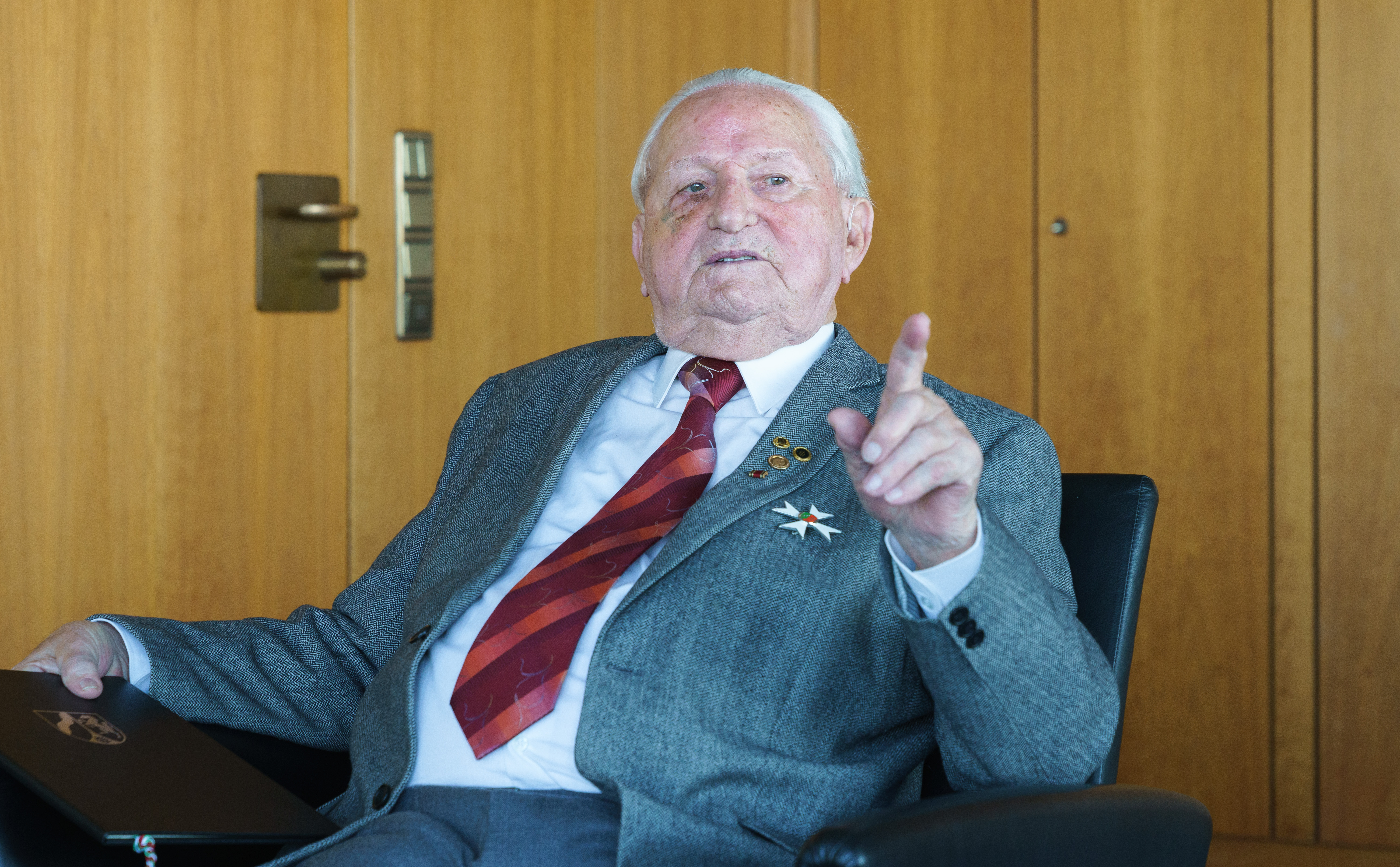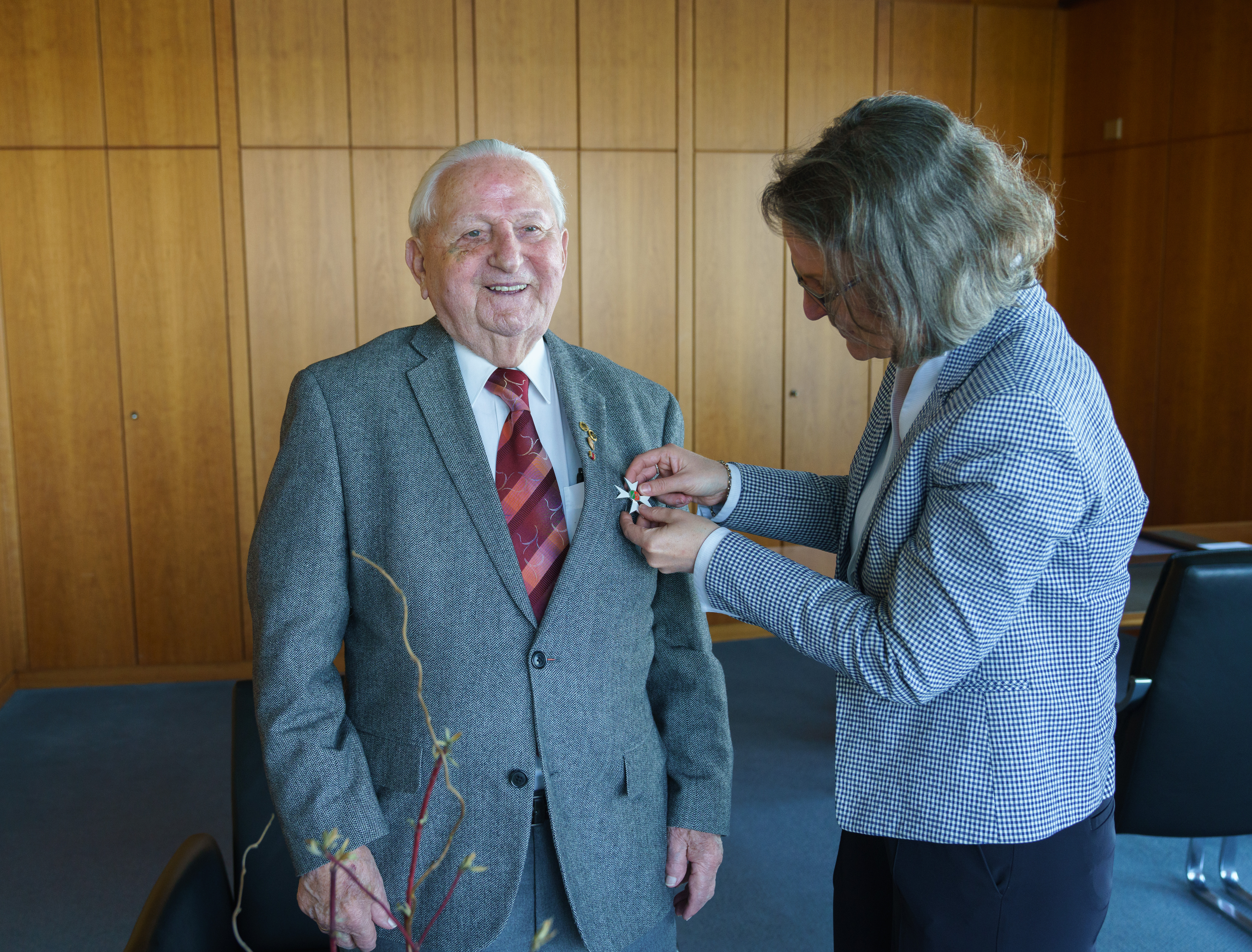 Ina Scharrenbach, Ministerin für Heimat, Kommunales, Bau und Gleichstellung des Landes Nordrhein-Westfalen hat am Mittwoch, 23. März 2022, Werner Schmidt aus Wilnsdorf mit dem Verdienstorden des Landes Nordrhein-Westfalen geehrt. Der 102-jährige wurde für sein langjähriges Engagement im Dienste der Völkerverständigung und vor Ort in Wilnsdorf ausgezeichnet. Damit ist Werner Schmidt der älteste Träger des Landesverdienstordens.