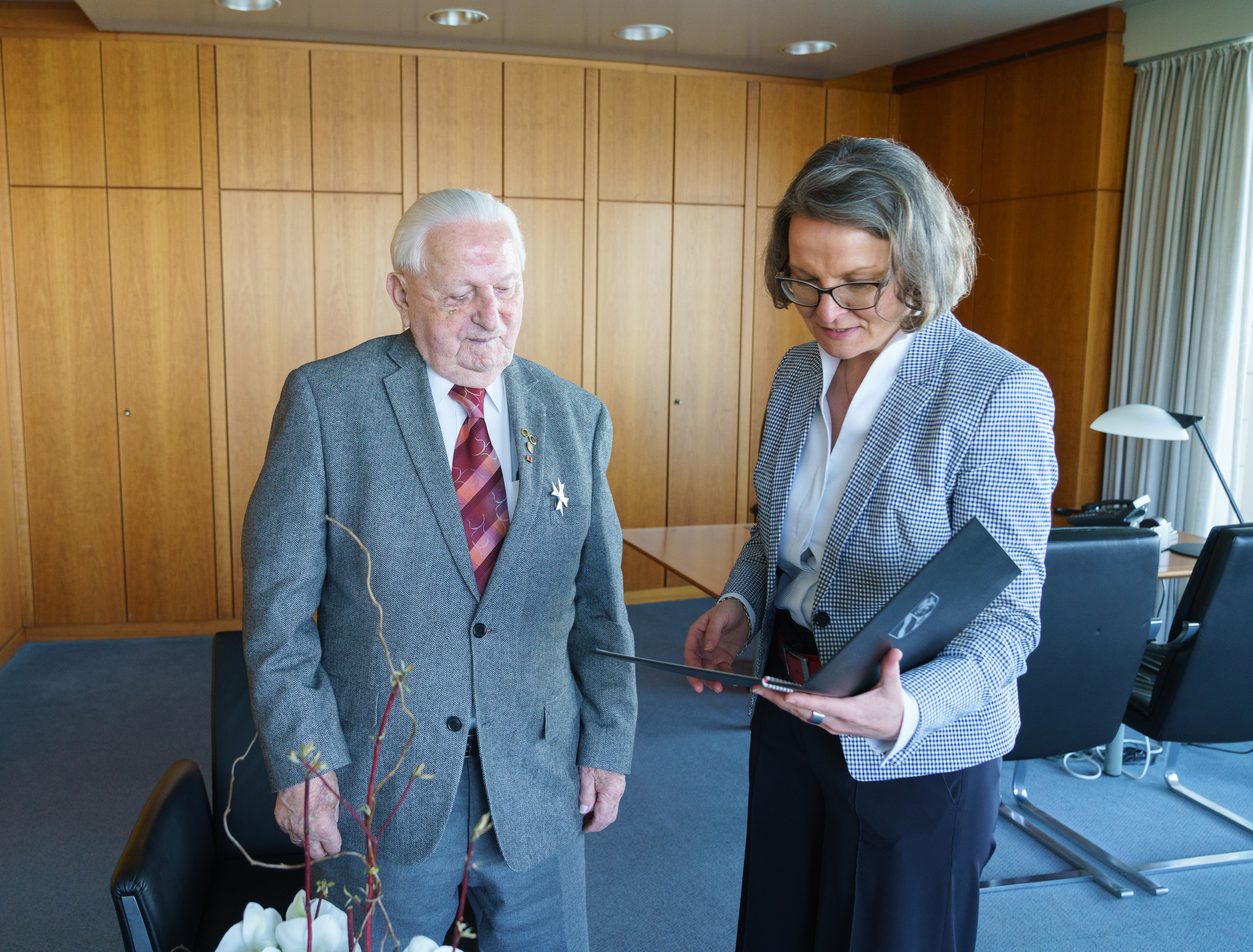 Ministerin Scharrenbach ehrt Werner Schmidt mit dem Verdienstorden des Landes Nordrhein-Westfalen