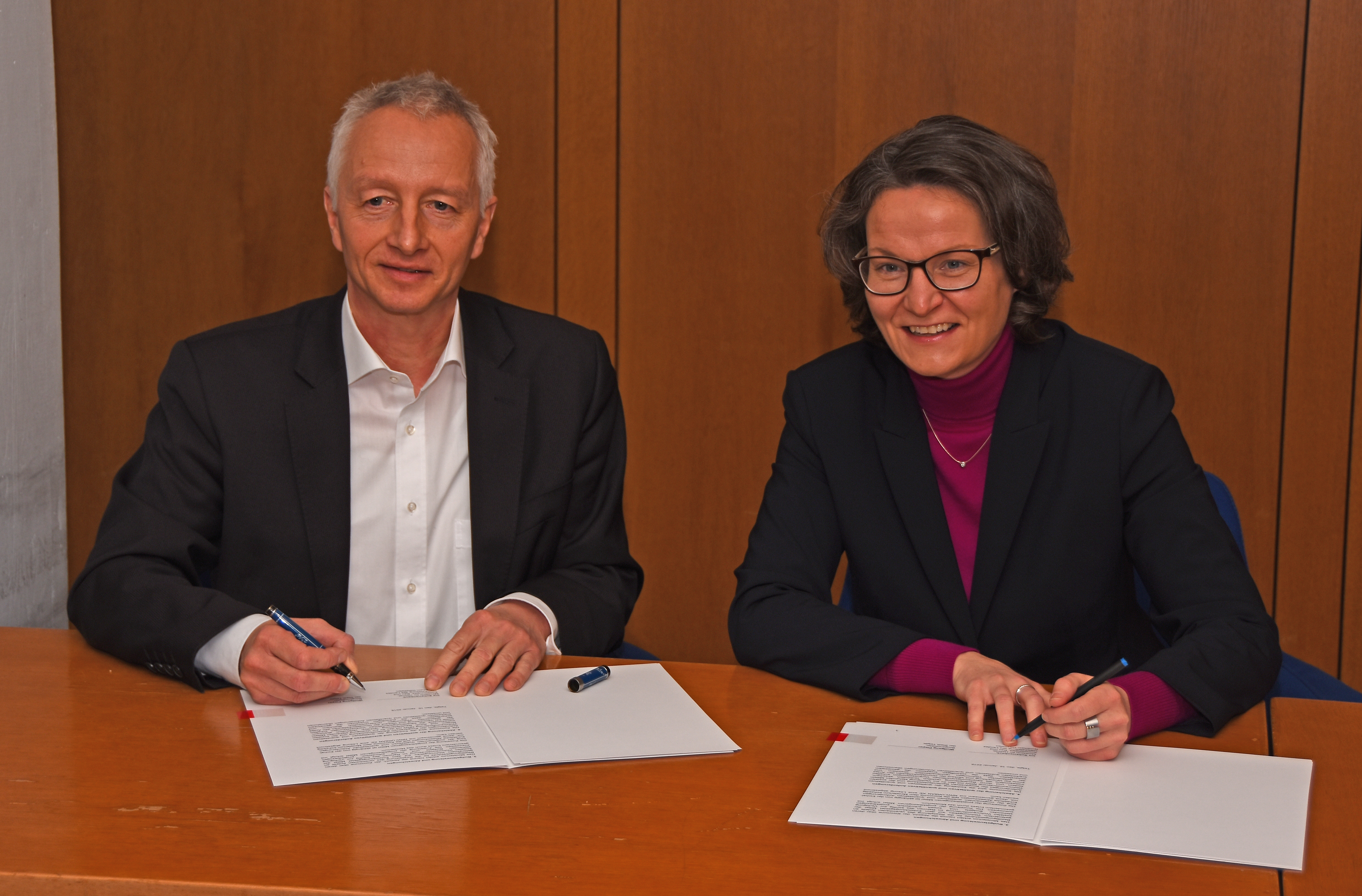 Ministerin Ina Scharrenbach hat in Telgte mit Bürgermeister Wolfgang Pieper die erste Zielvereinbarung zur Umsetzung der kooperativen Baulandentwicklung unterzeichnet.