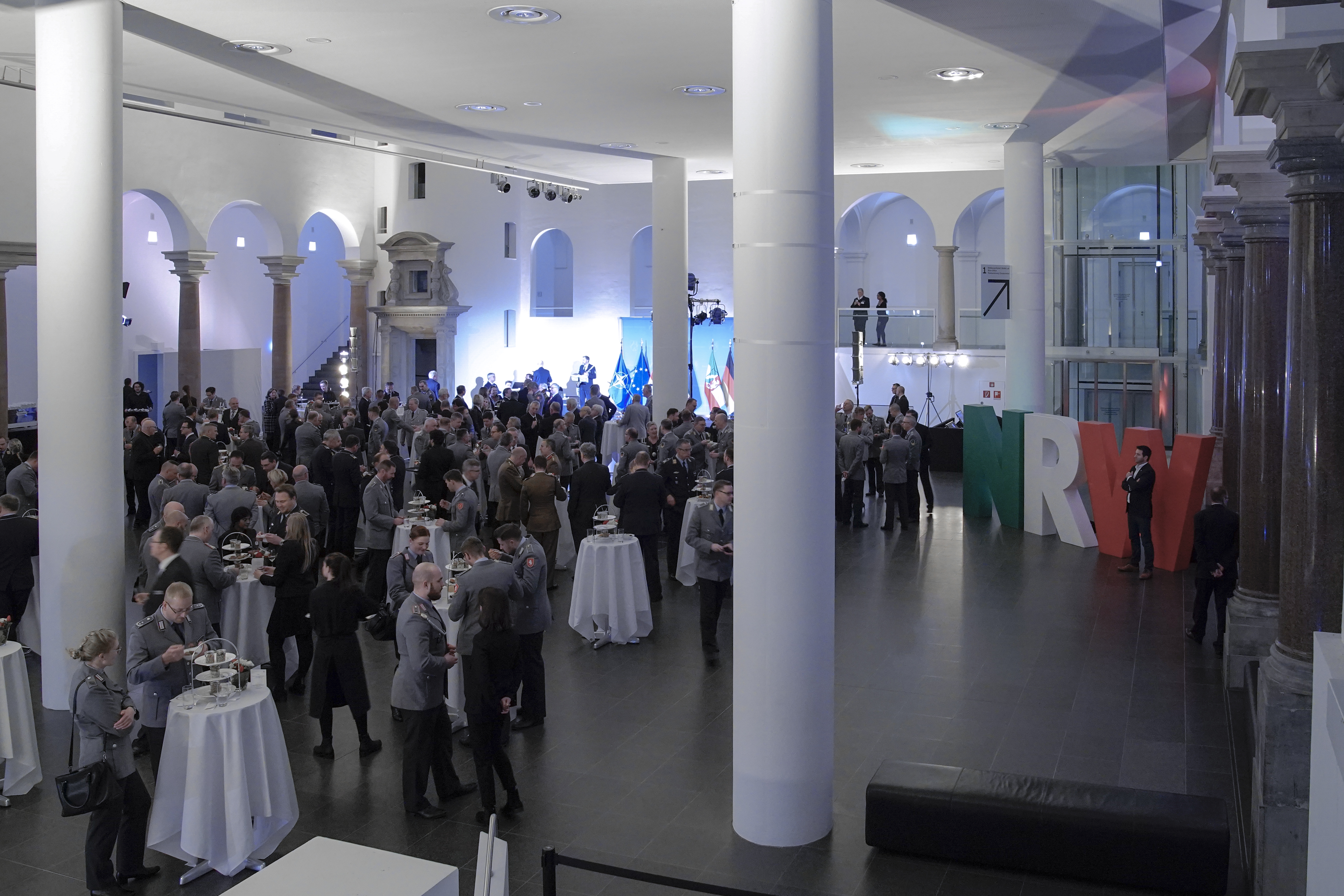 Ministerpräsident Armin Laschet hat rund 200 Repräsentantinnen und Repräsentanten der in Nordrhein-Westfalen stationierten Einheiten der Bundeswehr sowie der befreun-deten Streitkräfte in der Düsseldorfer Kunstsammlung K21 empfangen.