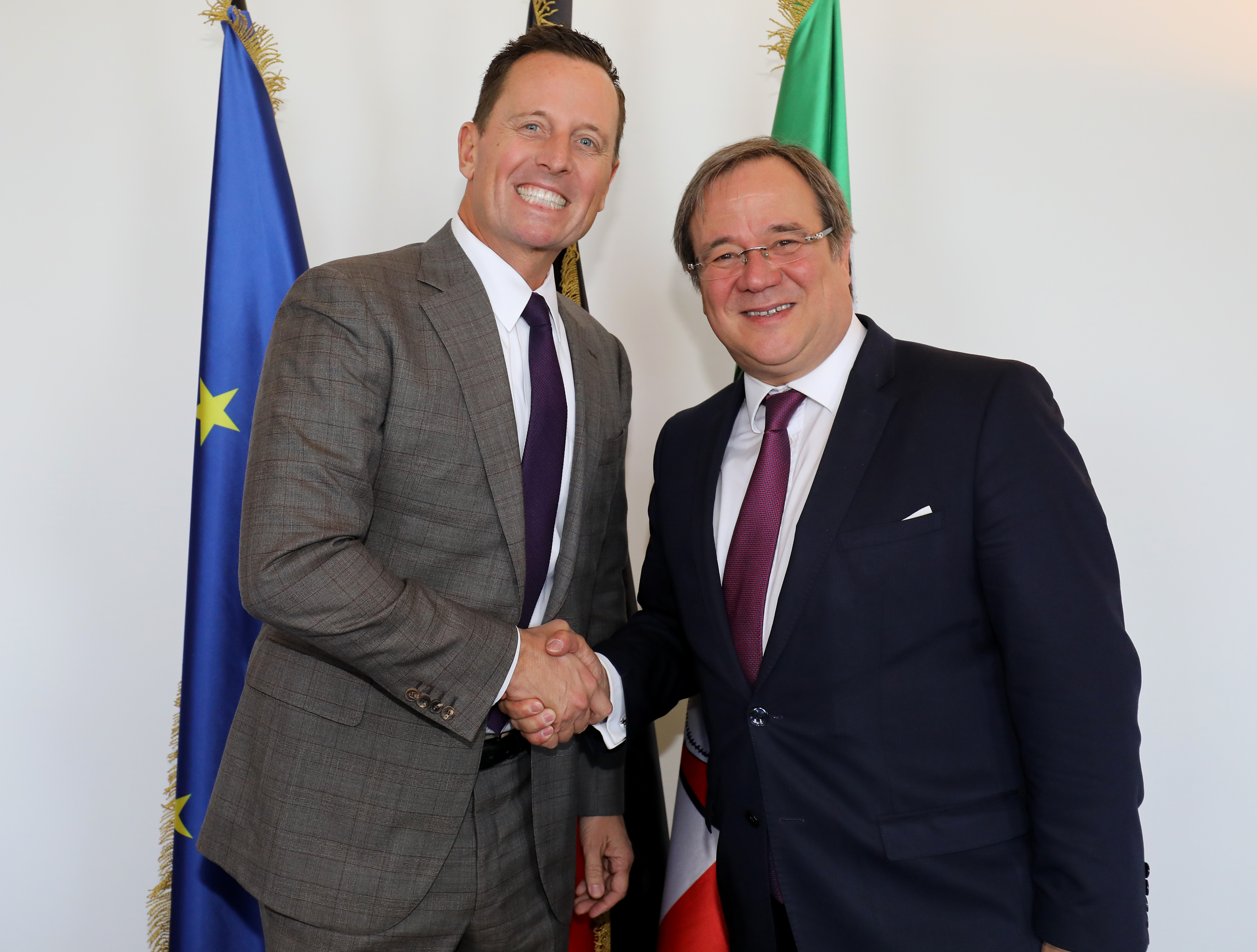 Zu Beginn des Besuchs trug sich Botschafter Grenell in das Gästebuch der Landesregierung ein. Im Anschluss tauschten sich beide Seiten über den aktuellen Stand der Beziehungen zwischen den Vereinigten Staaten von Amerika und Nordrhein-Westfalen sowie Perspektiven der Zusammenarbeit aus. Ministerpräsident Laschet betonte, dass ein weiterer Ausbau der bereits guten Beziehungen ausdrücklich erwünscht sei. „Die USA sind und bleiben unser bedeutendster Partner außerhalb der Europäischen Union. Sie zählen zu unseren wichtigsten Außenhandelspartnern und US-Unternehmen gehören zu den größten Investoren und ausländischen Arbeitgebern in Nordrhein-Westfalen“, so Ministerpräsident Laschet. Die über 1.600 in Nordrhein-Westfalen angesiedelten amerikanischen Unternehmen seien ein Beleg für die guten wirtschaftlichen Beziehungen zwischen den Vereinigten Staaten von Amerika und Nordrhein-Westfalen.