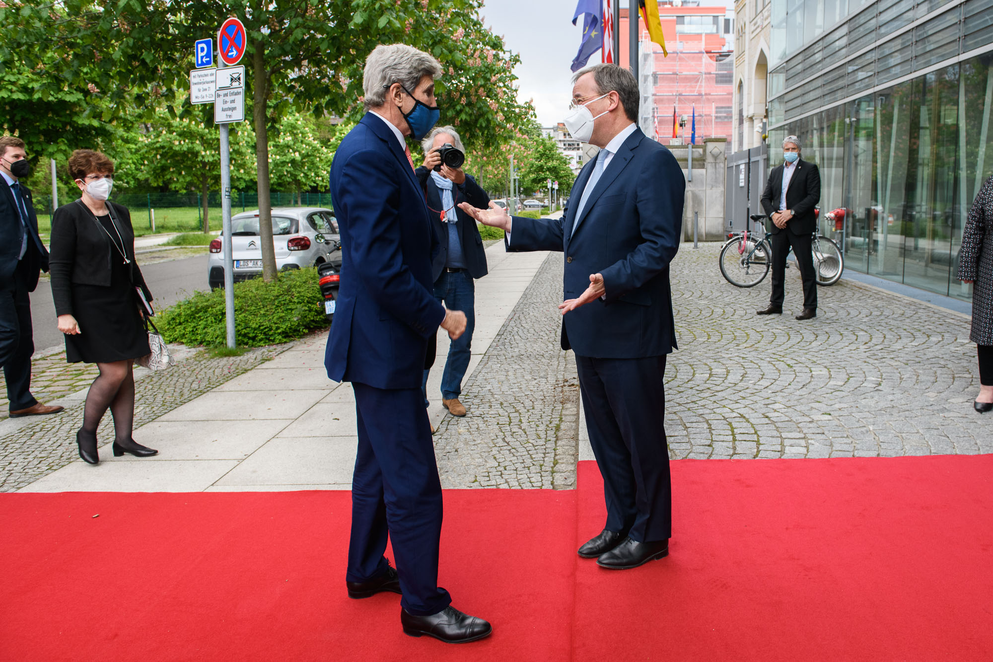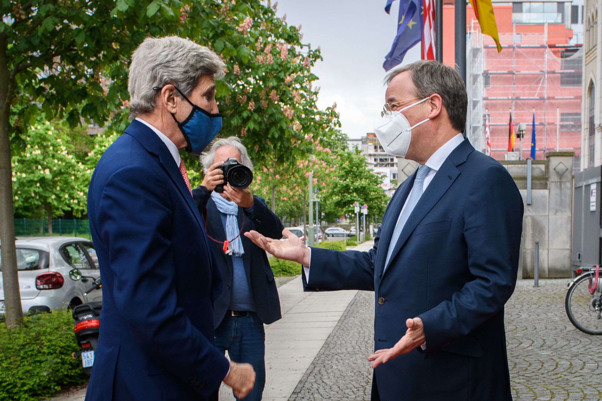 Ministerpräsident Armin Laschet hat am Montag, 17. Mai 2021, den Sondergesandten von US-Präsident Joe Biden für das Klima und ehemaligen US-Außenminister John Kerry empfangen. Das Treffen fand in der Landesvertretung des Landes Nordrhein-Westfalen in Berlin statt. Beide sprachen über die Bekämpfung des Klimawandels als globale Herausforderung.