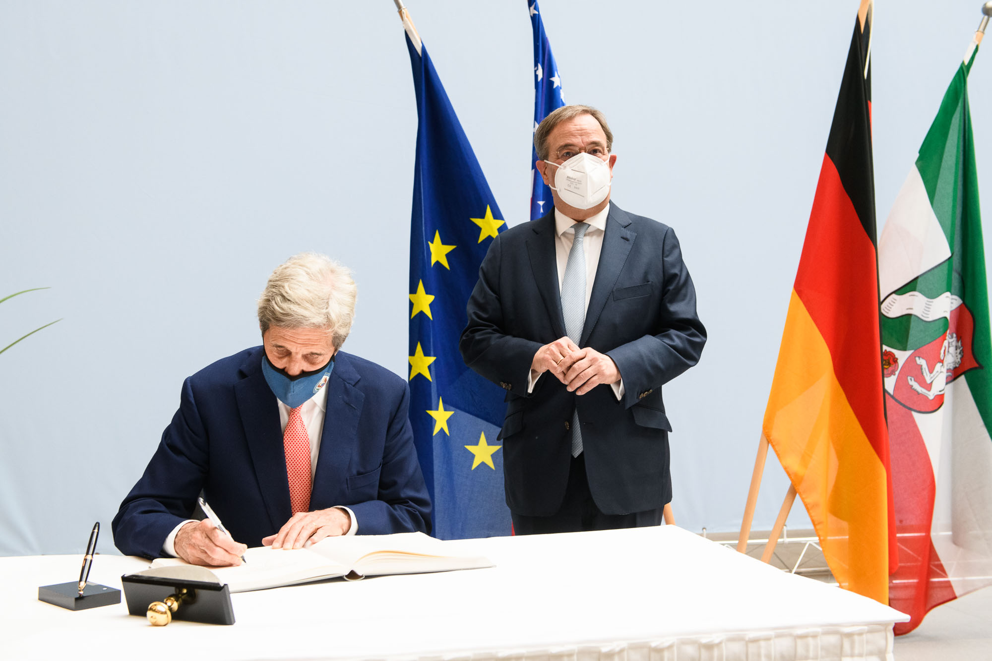 Ministerpräsident Armin Laschet hat den Sondergesandten von US-Präsident Joe Biden für das Klima und ehemaligen US-Außenminister John Kerry empfangen.
