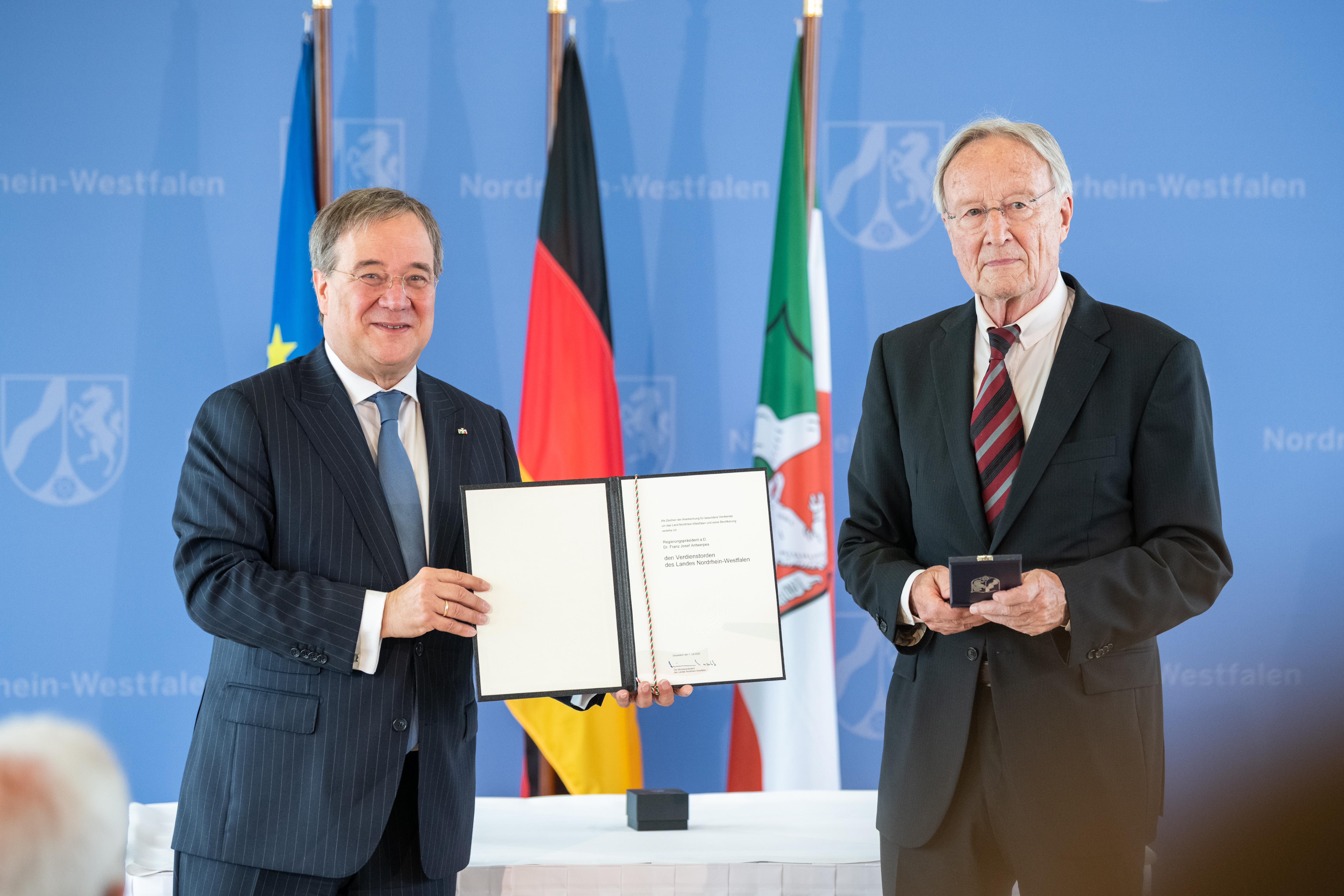 Heute dankt Ihnen Nordrhein-Westfalen, lieber Herr Antwerpes, für eine beeindruckende Lebensleistung im Dienste des Staates und zum Wohle seiner Bürgerinnen und Bürger mit dem Verdienstorden unseres Landes.