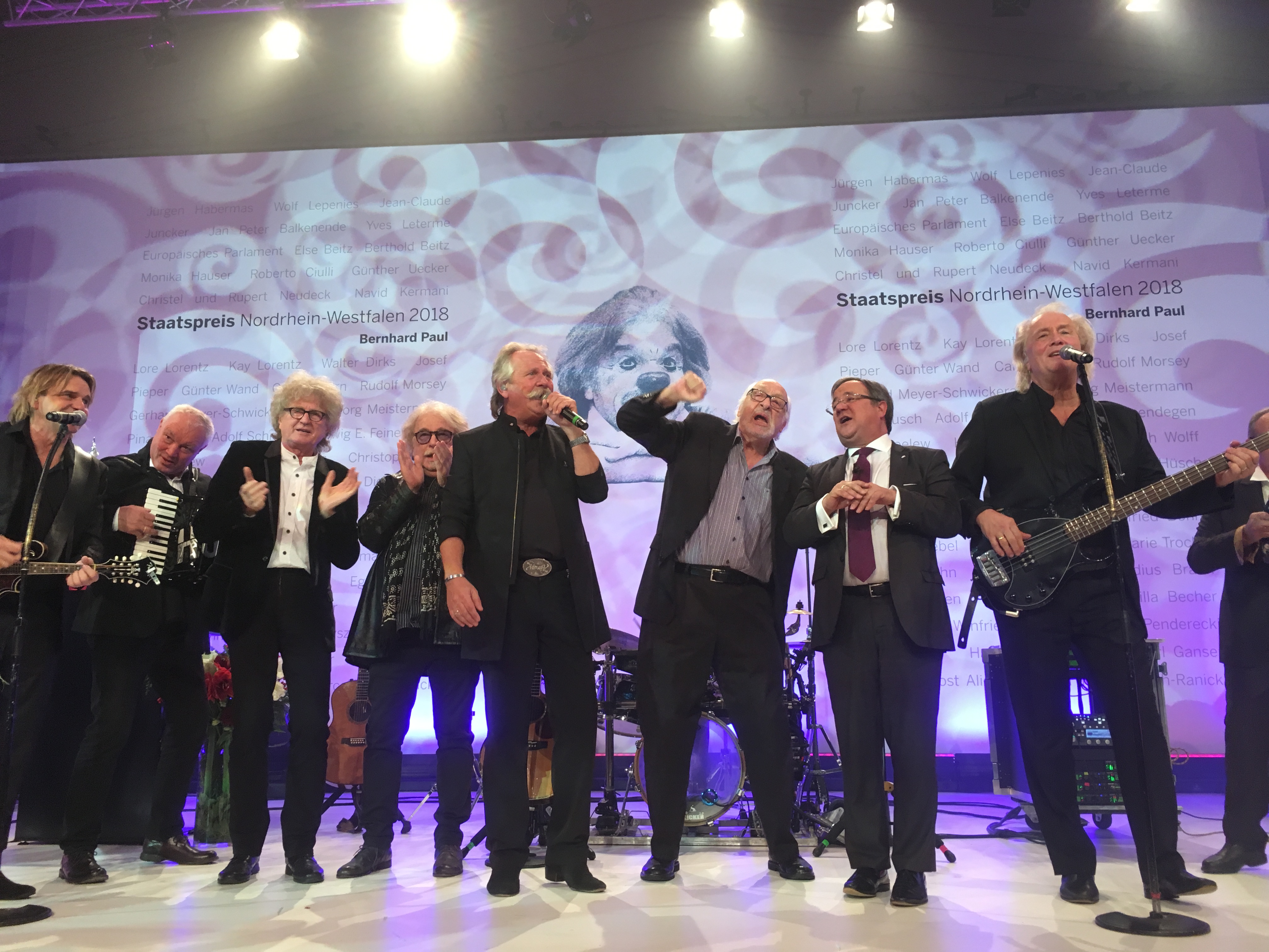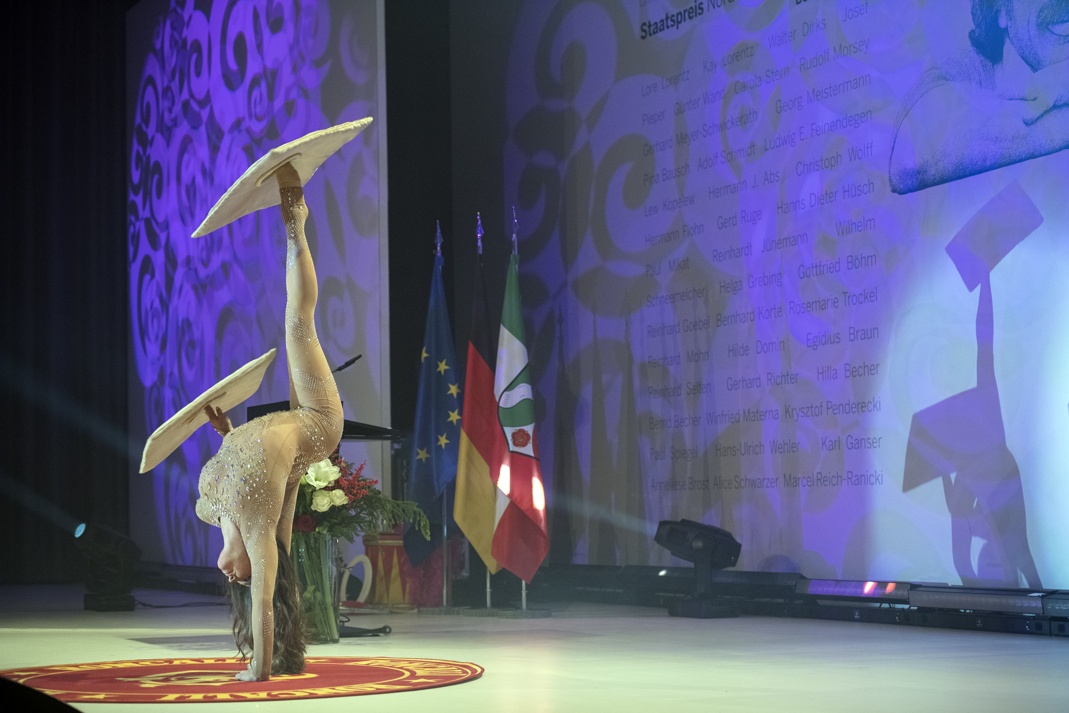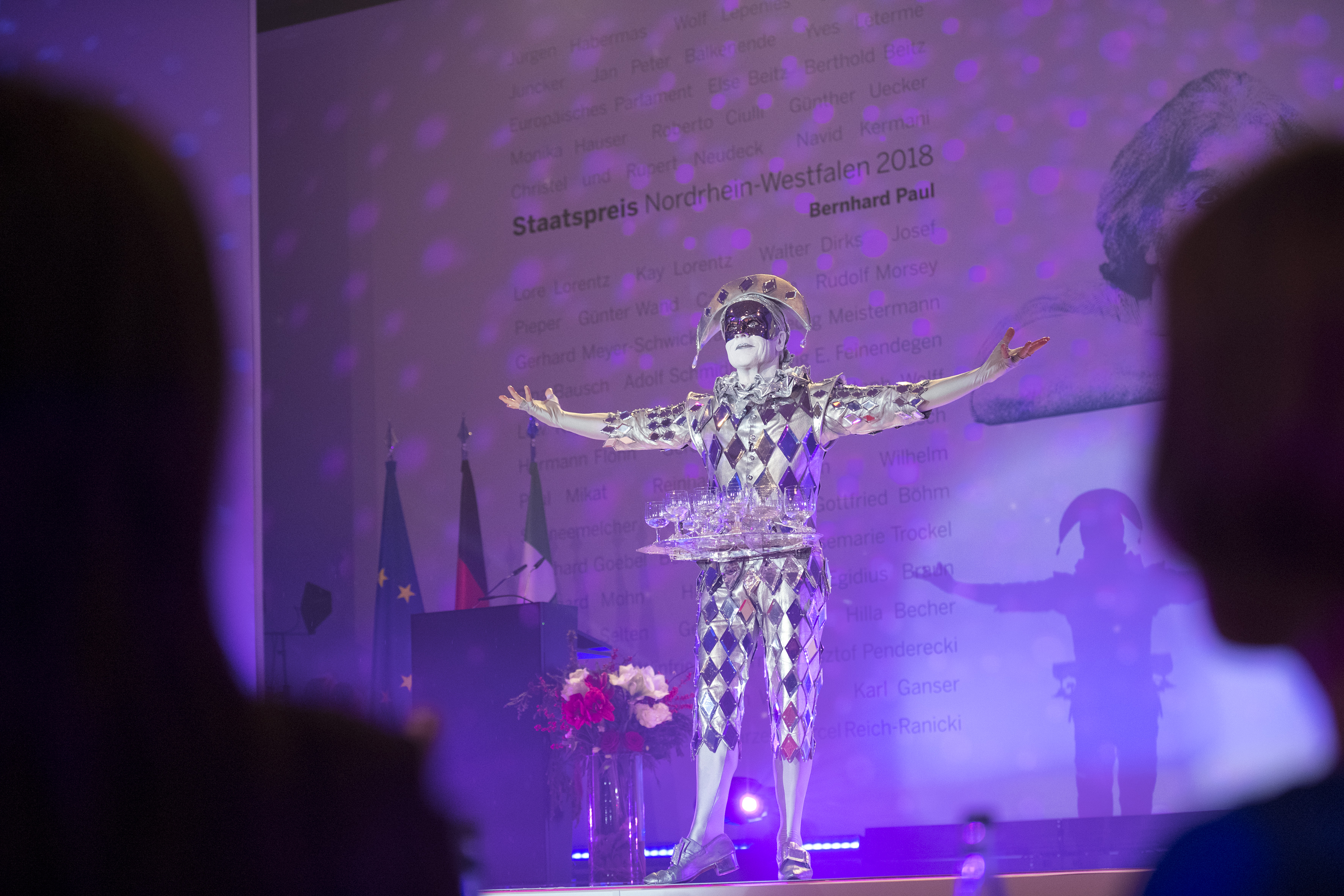 Begleitet wurde die Preisverleihung durch ein mitreißendes künstlerisches Rahmenprogramm von Familie und Weggefährten Bernhard Pauls: die Kölner Band „Höhner“, Akrobatin Lili Paul und der Harlekin „Kristalleon“ untermalten die Veranstaltung mit Musik und Akrobatik.