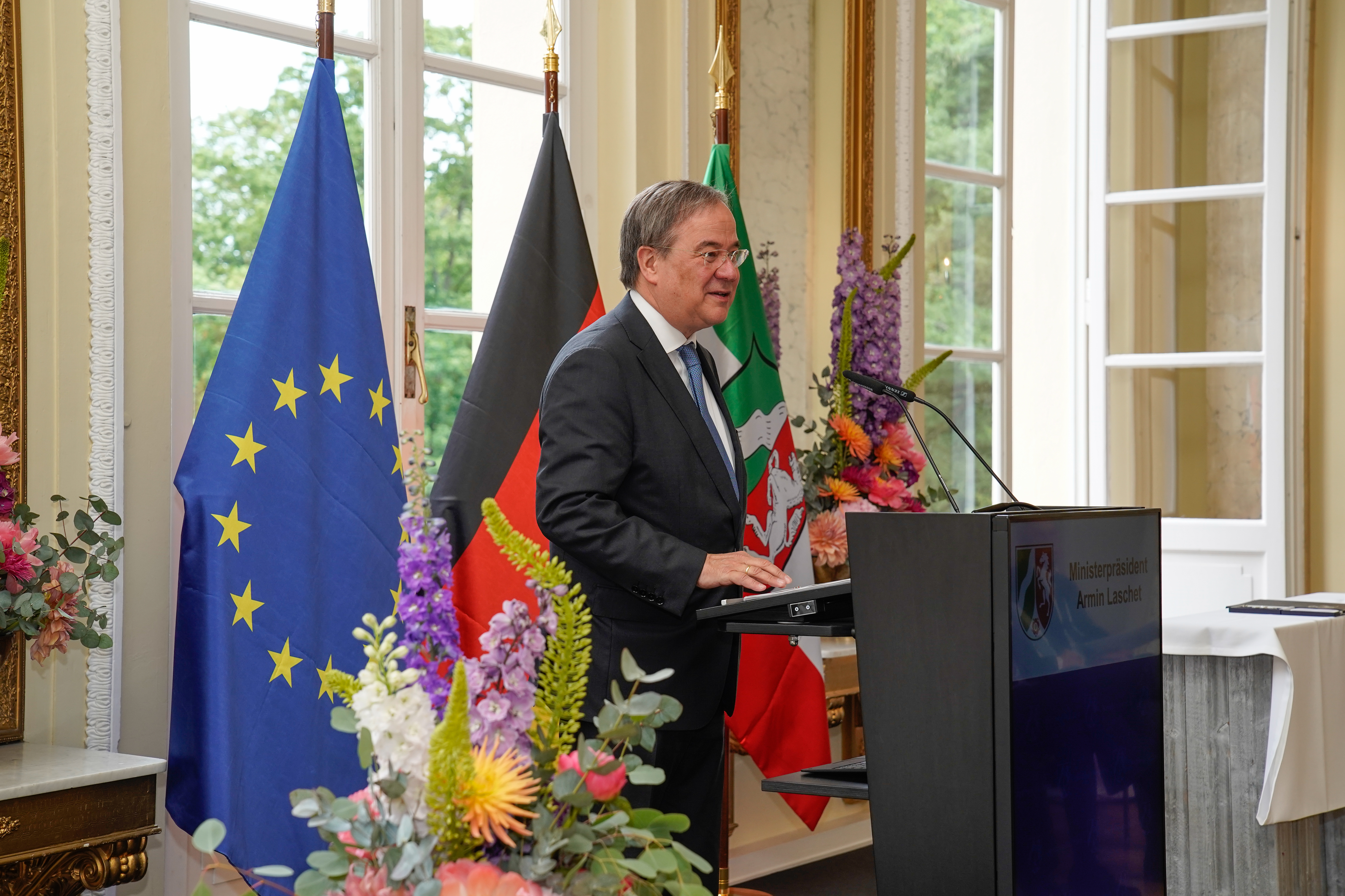 Ministerpräsident Armin Laschet hat am Montag, 28. Juni 2021, elf Persönlichkeiten mit dem Verdienstorden des Landes Nordrhein-Westfalen ausgezeichnet. Die Verleihung fand – zum ersten Mal in diesem Jahr in Präsenz – im Schloss Eller in Düsseldorf statt. Mit dem Orden ehrt die Landesregierung traditionell ehrenamtlich besonders engagierte Bürgerinnen und Bürger für ihre herausragenden Verdienste um das Gemeinwohl und um das Land Nordrhein-Westfalen.