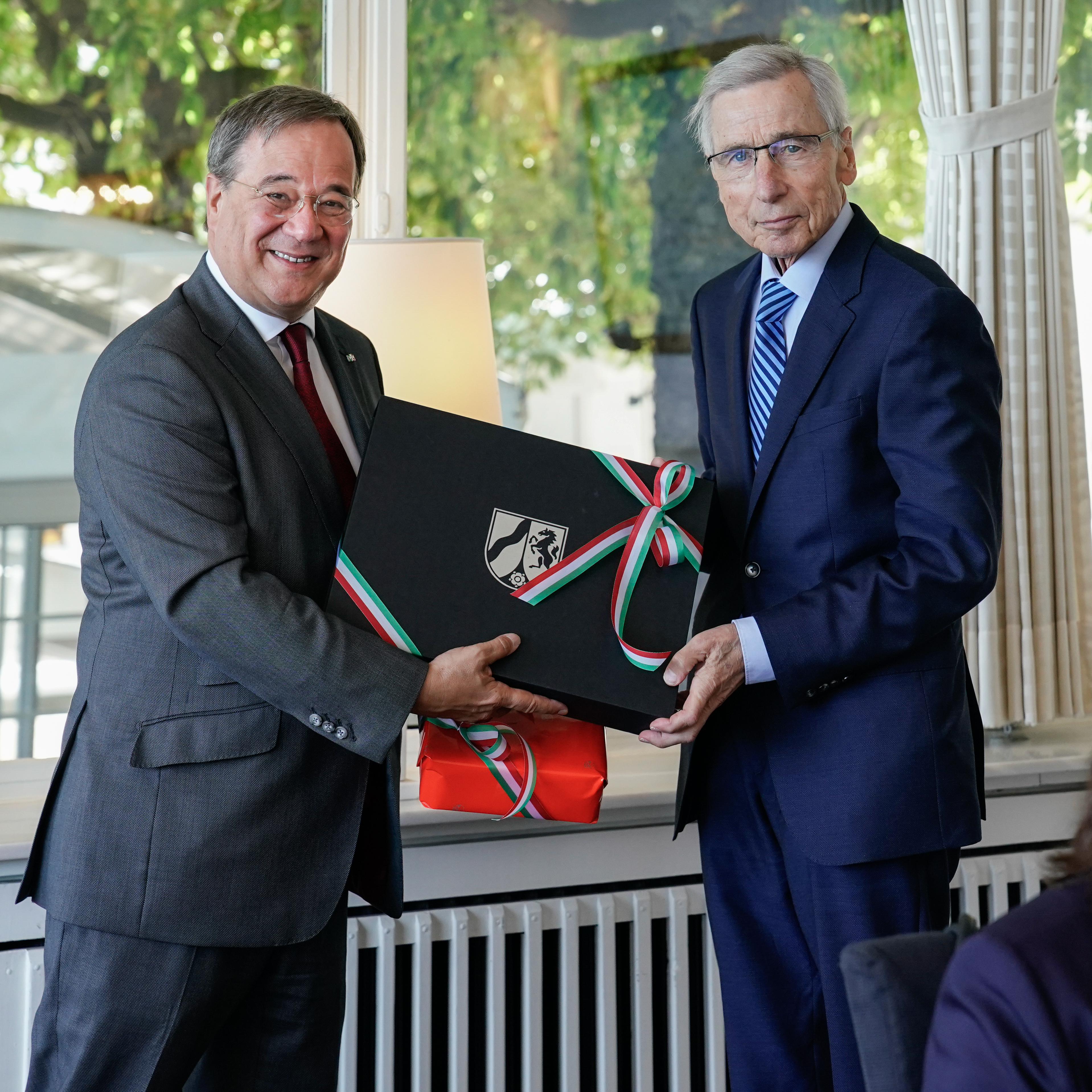 Ministerpräsident Armin Laschet ist in Bonn mit dem früheren Ministerpräsidenten Wolfgang Clement zusammengekommen, der am 7. Juli seinen 80. Geburtstag gefeiert hat.