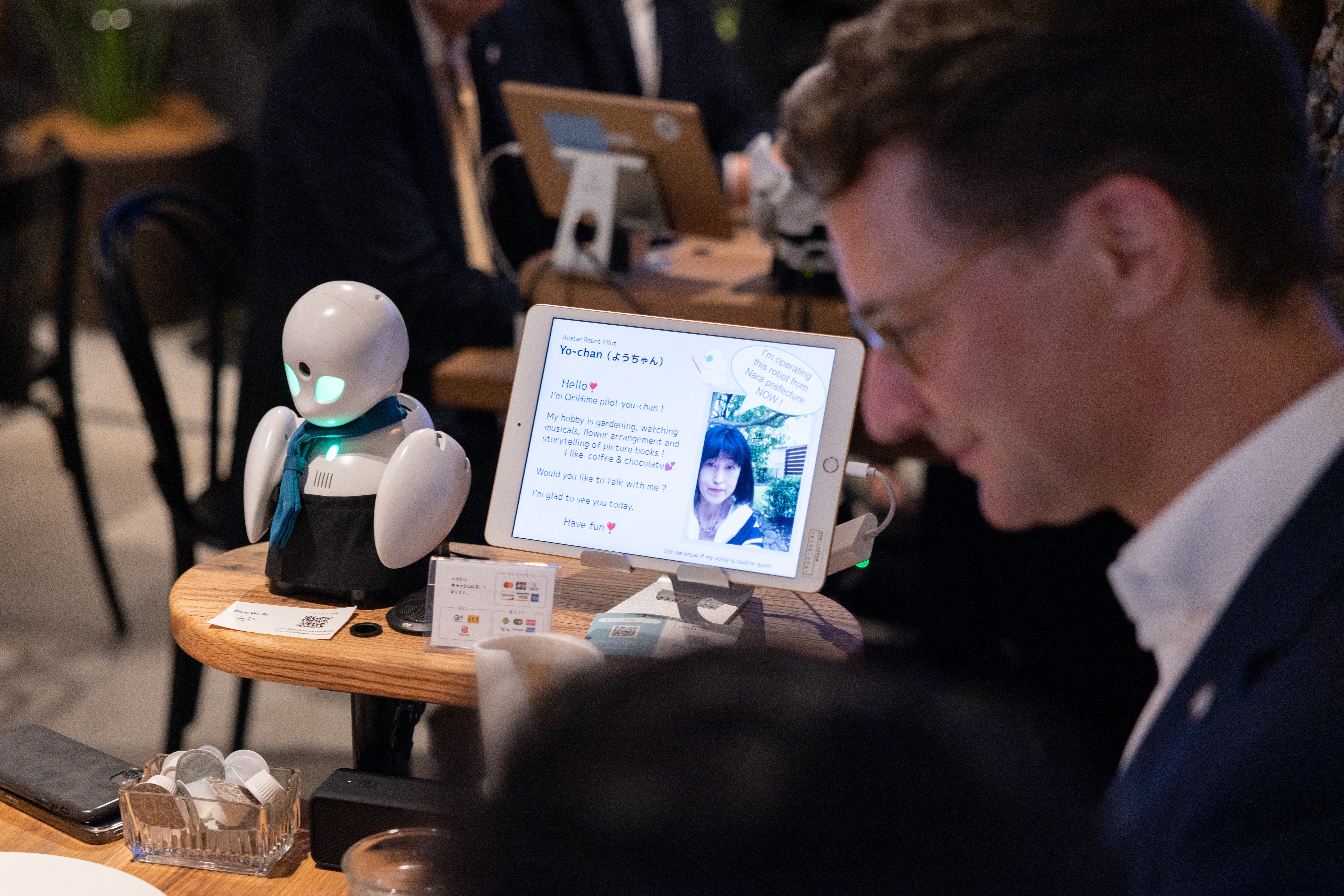 Im Avatar Robot Café bekommen Menschen mit Beeinträchtigungen die Chance, wieder am Arbeitsleben teilzuhaben – indem sie von zuhause aus Bedien-Avatare im Café steuern und so mit Gästen interagieren und kommunizieren können als wären sie vor Ort.