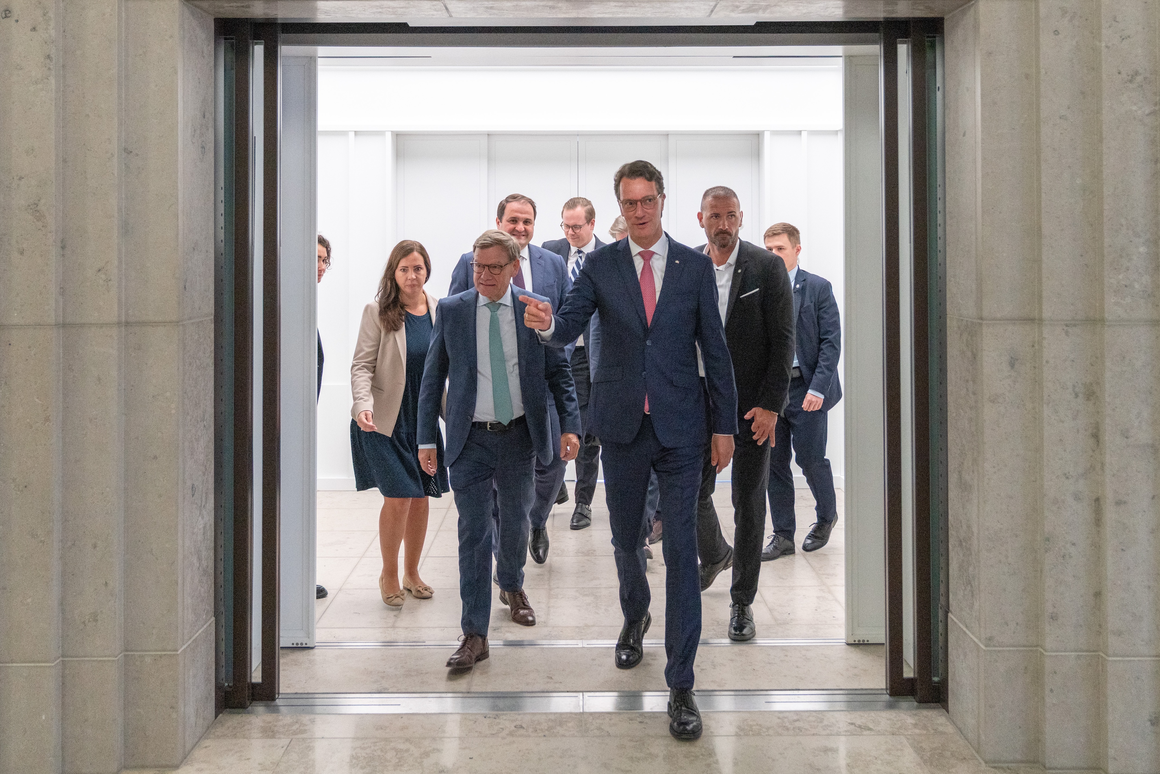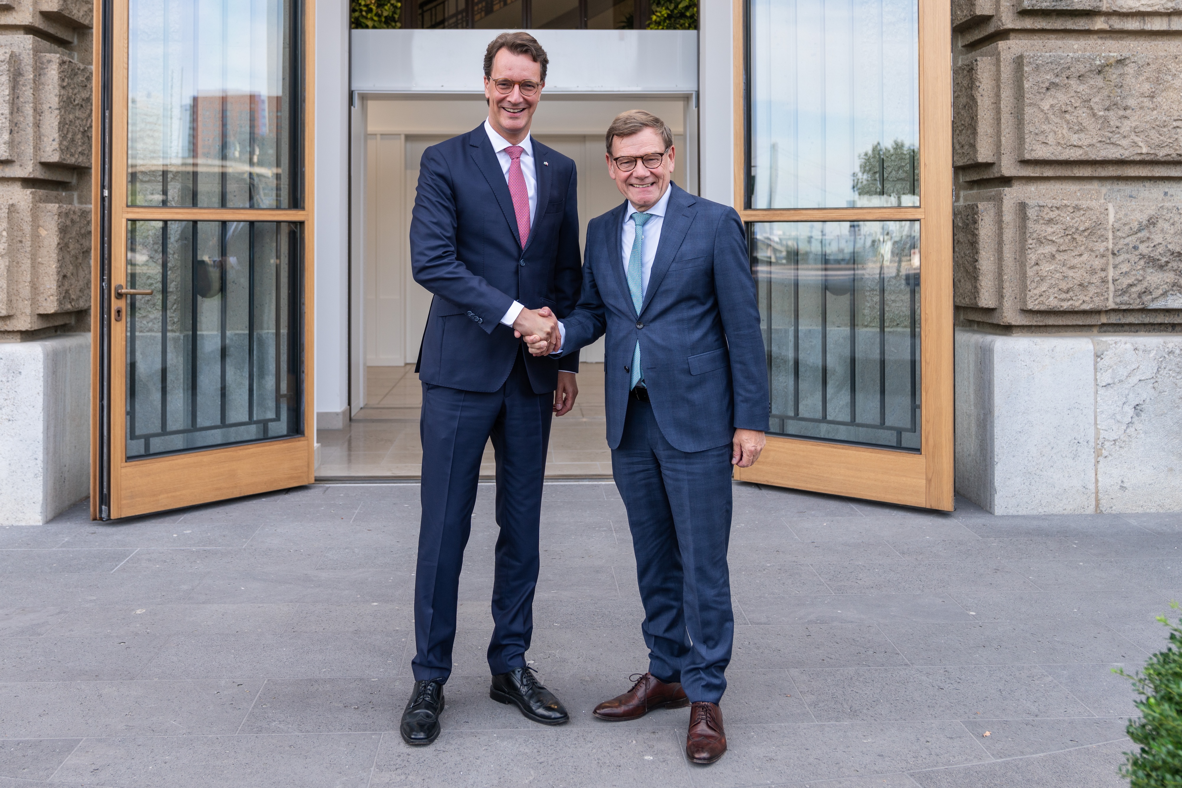 Ministerpräsident Hendrik Wüst hat am Dienstag, 26. August 2025, Außenminister Dr. Johann Wadephul zu einem Gespräch in der Staatskanzlei in Düsseldorf empfangen.