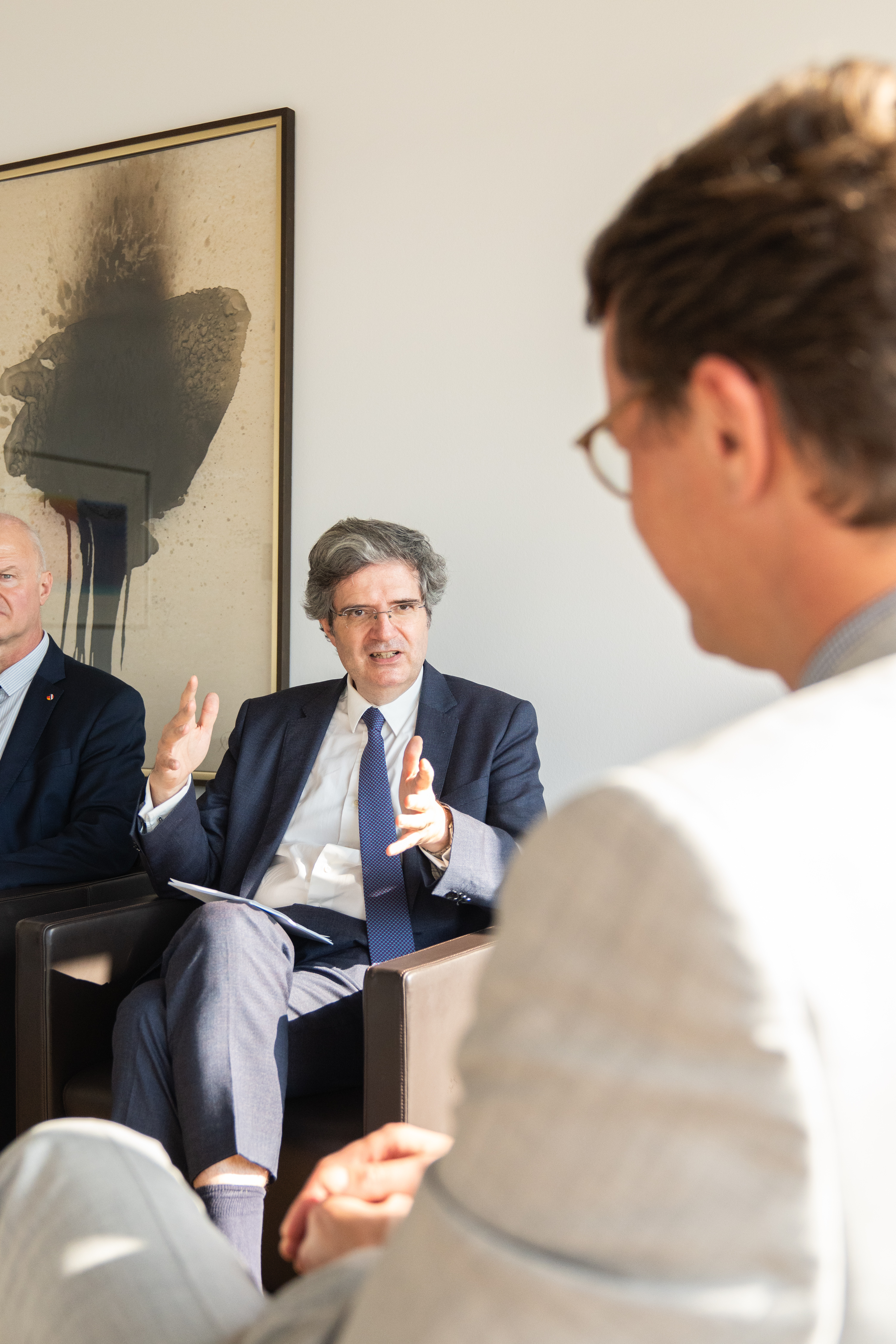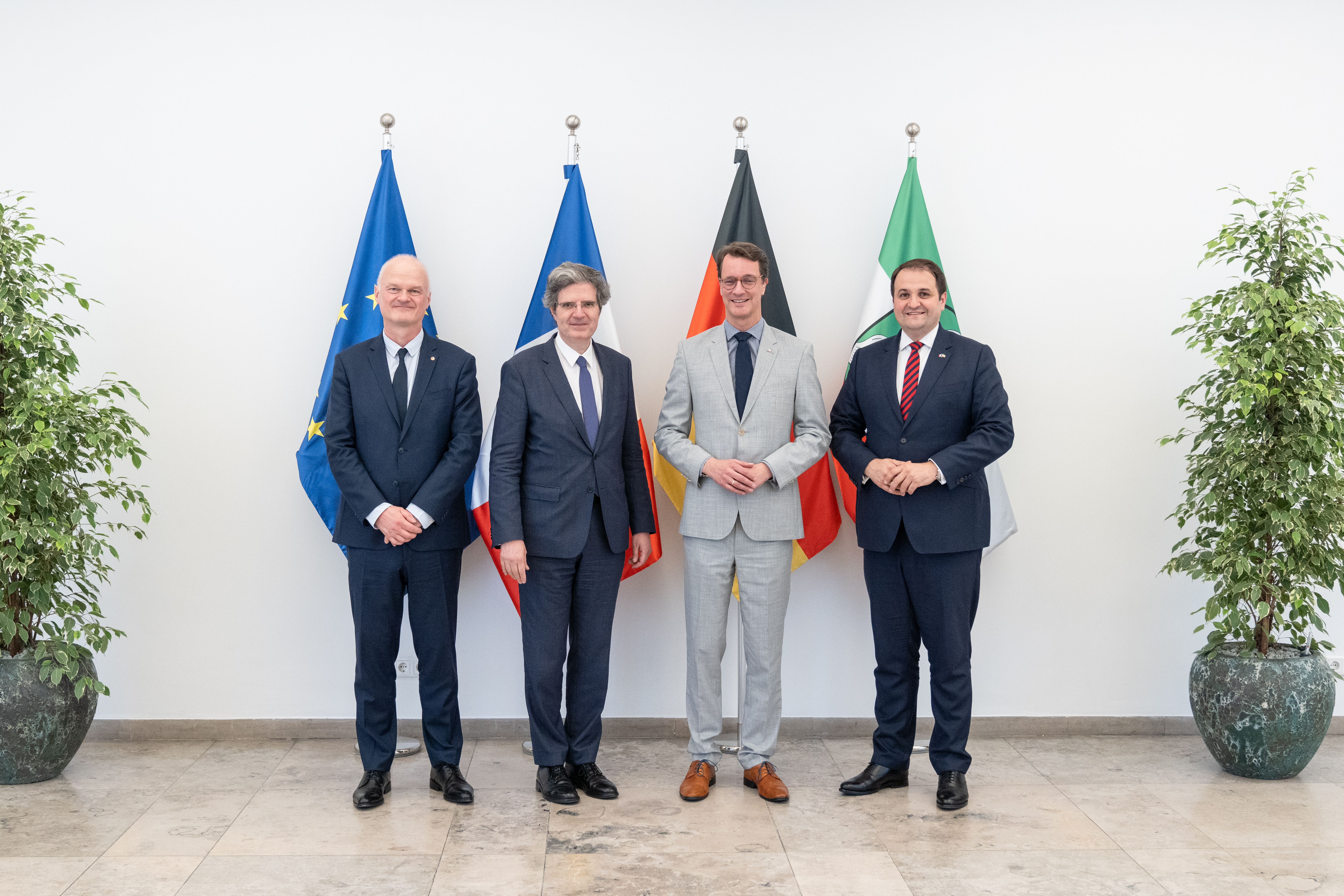 Ministerpräsident Hendrik Wüst hat am Montag, 24. Juni 2024, den Botschafter der Französischen Republik, S.E. François Delattre, in der Staatskanzlei zu einem Gespräch empfangen. Europaminister Nathanael Liminski nahm ebenfalls am Gespräch teil.