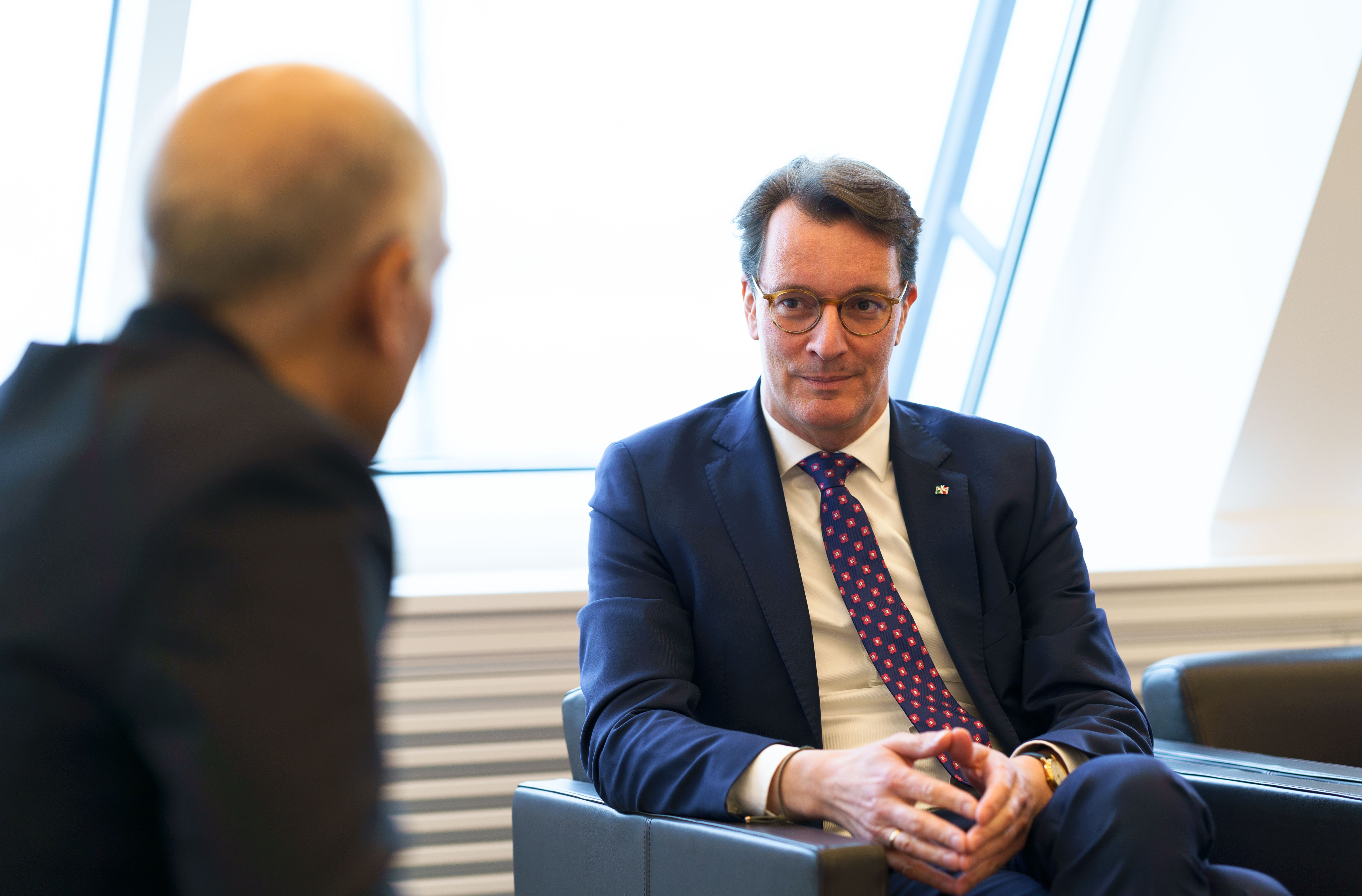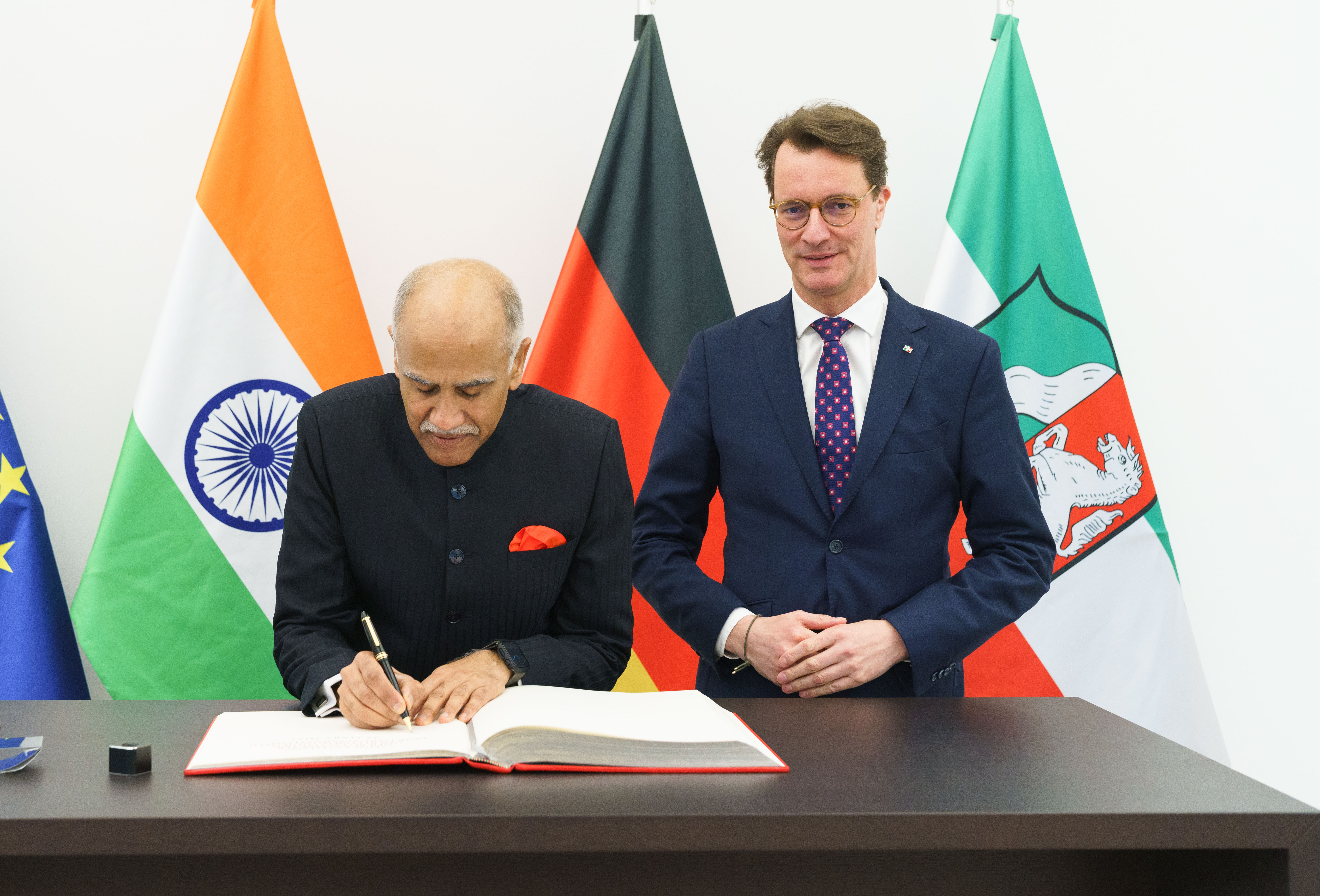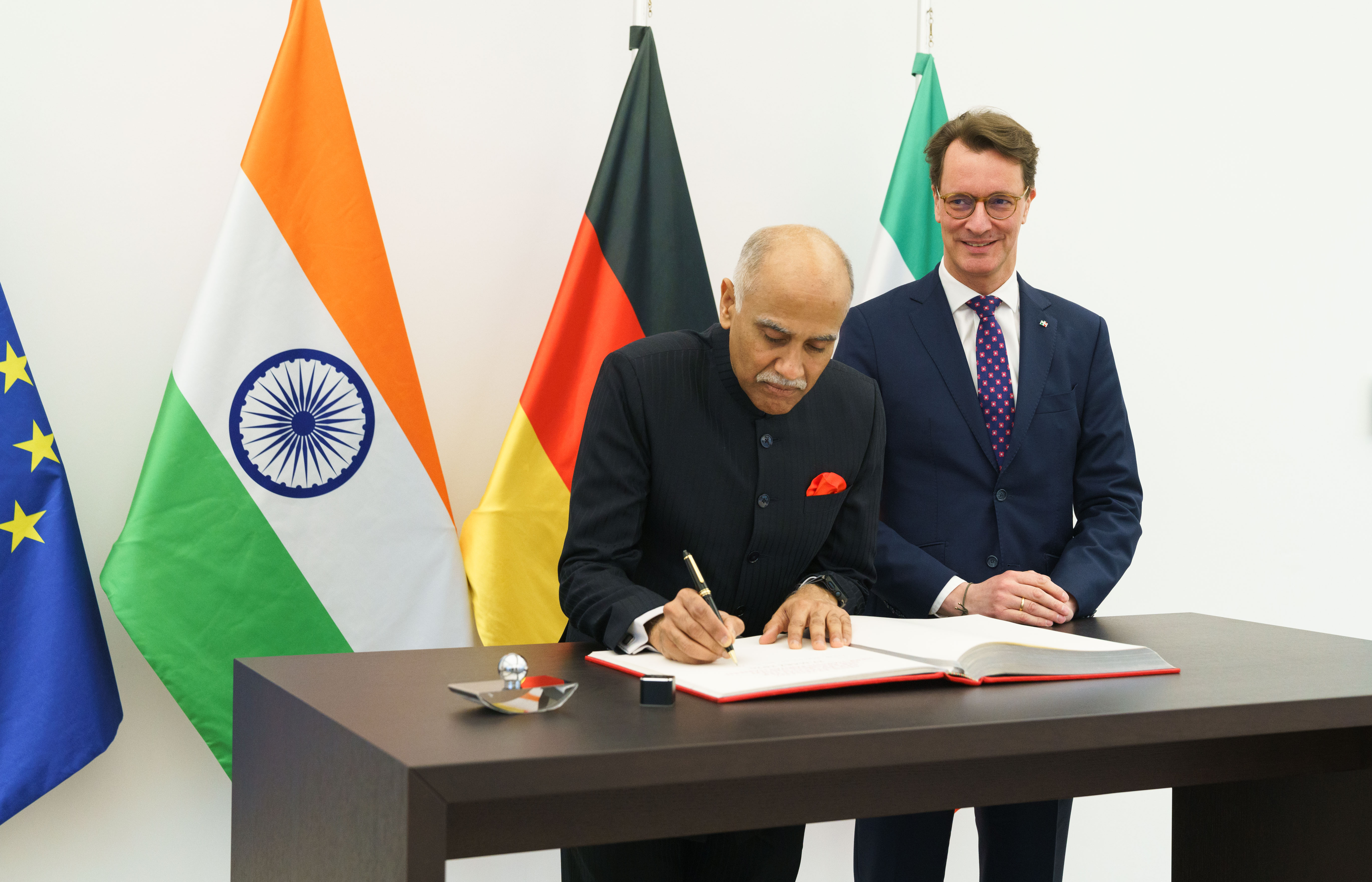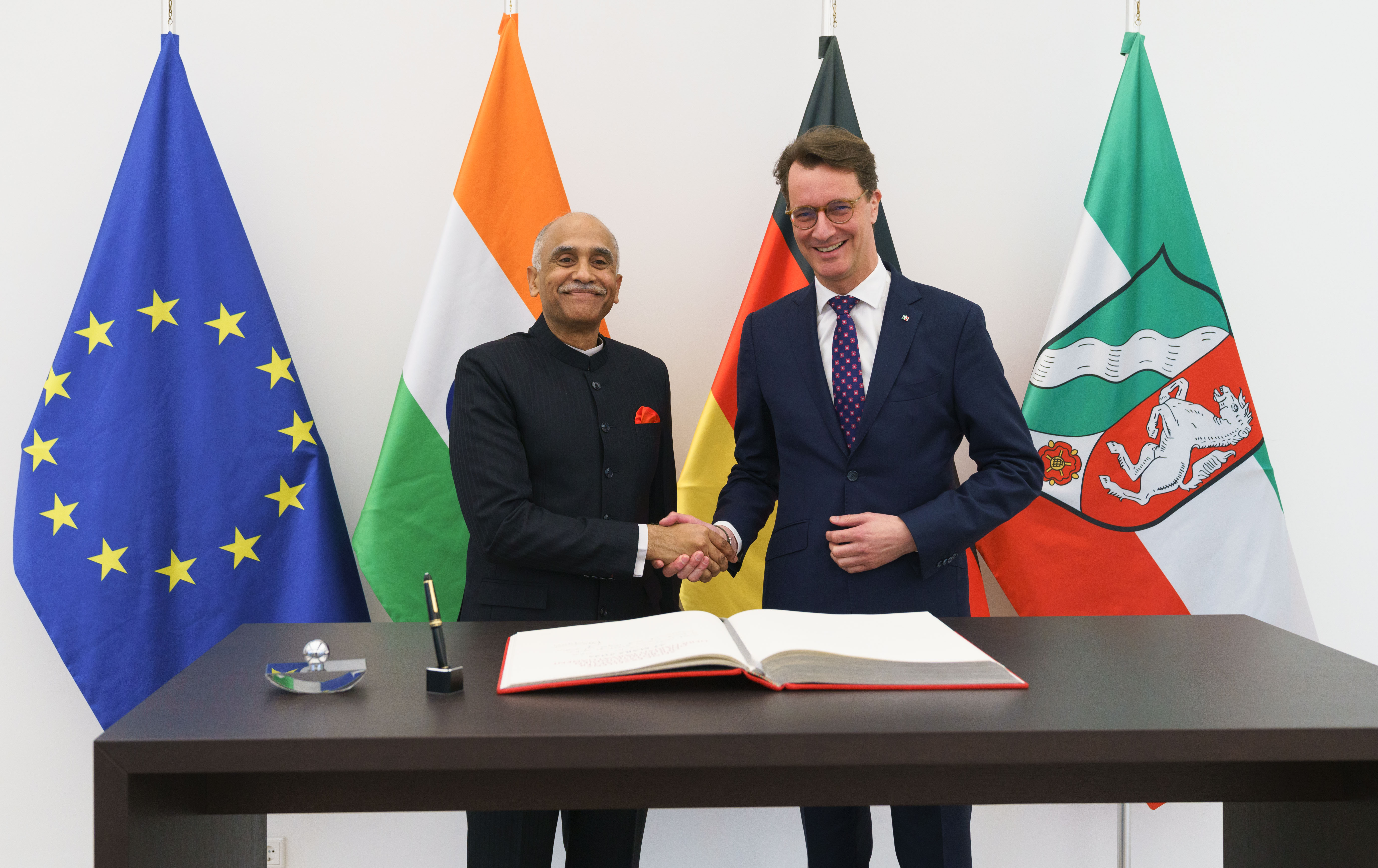 Ministerpräsident Hendrik Wüst hat den Botschafter der Republik Indien, S.E. Harish Parvathaneni, in der Staatskanzlei zu einem Gespräch empfangen.