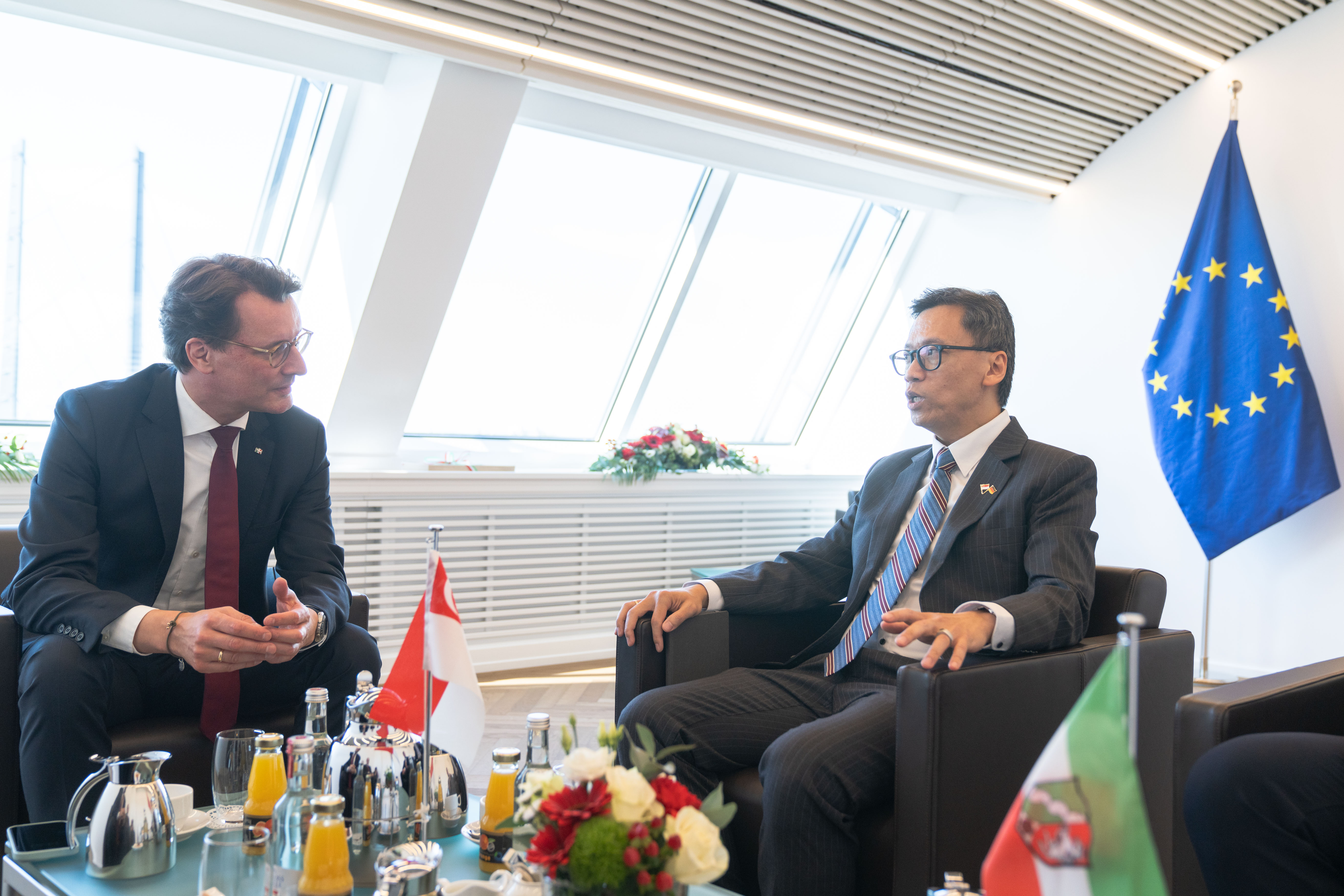 Im Mittelpunkt des Gesprächs, an dem auch Minister Nathanael Liminski teilnahm, standen vielfältige Kooperationsmöglichkeiten zwischen Nordrhein-Westfalen und Singapur, die beide als hochindustrialisierte und exportorientierte Wirtschaftsregionen viele Gemeinsamkeiten aufweisen. Beide Länder stehen zugleich vor den Chancen und Herausforderungen der grünen und digitalen Transformation. Nordrhein-Westfalen und Singapur verbinden schon heute diverse wirtschaftliche Kontakte. Im April 2023 vereinbarten zudem die beiden Wirtschaftsförderungsagenturen, NRW.Global Business und Enterprise Singapore, künftig enger zusammenzuarbeiten und die Stärken beider Standorte für innovative Wirtschaftskollaborationen zu nutzen.
