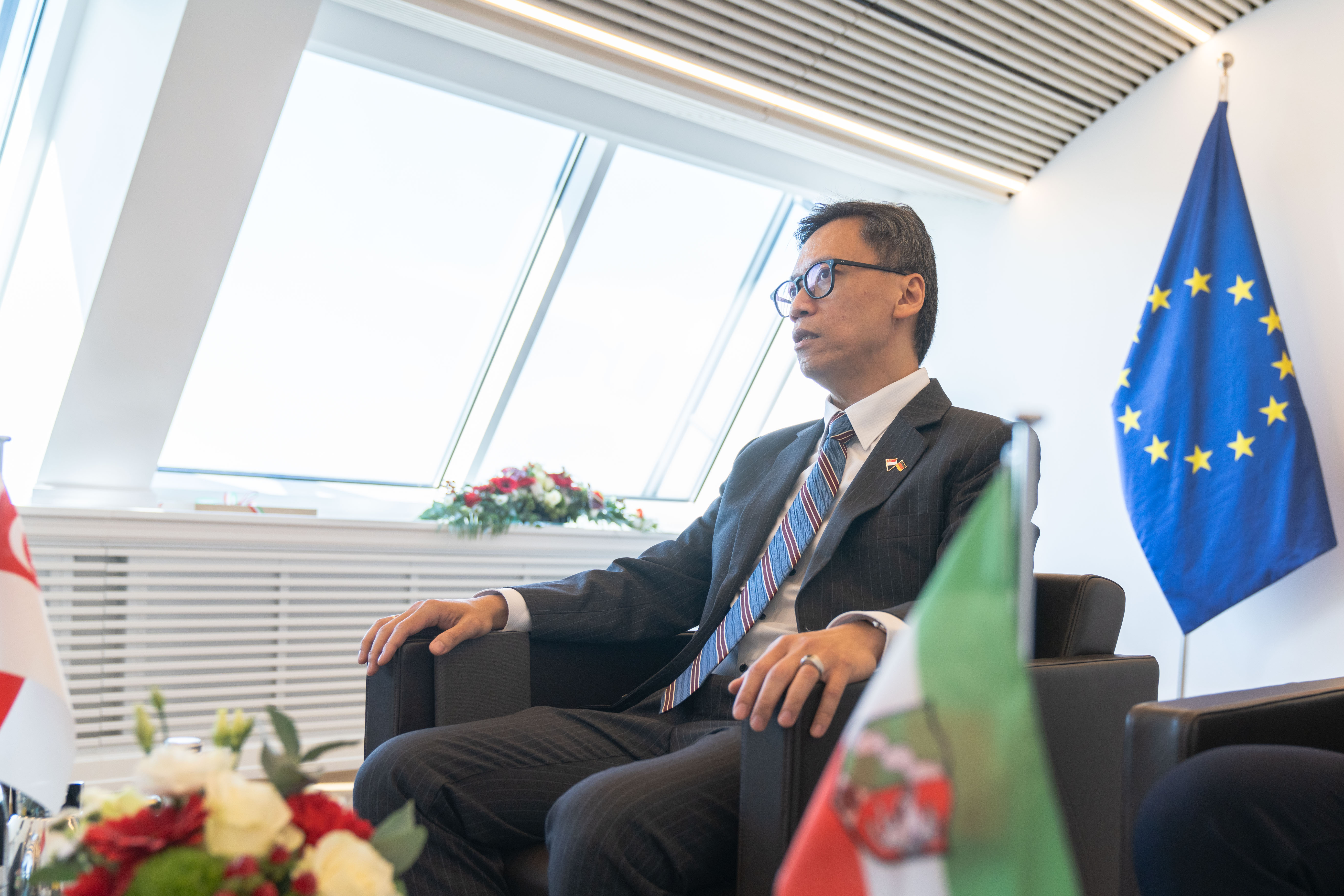 Ministerpräsident Hendrik Wüst hat am Dienstag, 10. Oktober 2023, den Botschafter der Republik Singapur Lee Chong Hock in der Staatskanzlei zu einem Gespräch empfangen.