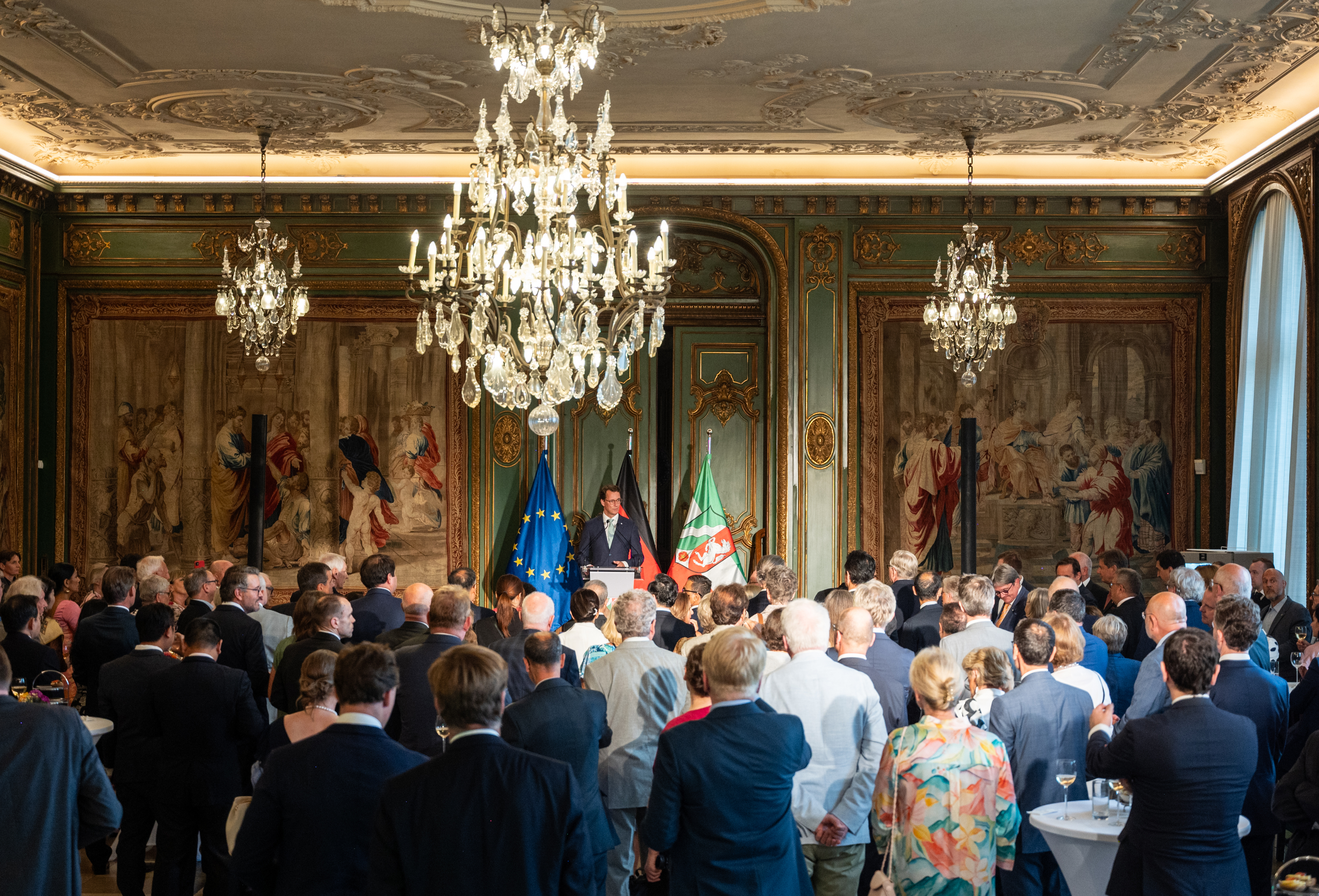 „Kriege, Krisen und Konflikte erschüttern unsere globale und europäische Ordnung. Vertrauensvolle internationale Zusammenarbeit und enge Freundschaften über Ländergrenzen hinweg sind daher heute wichtiger denn je. Frieden ist – auch in Europa – nicht mehr selbstverständlich, das haben uns die letzten beiden Jahre auf brutale Weise gezeigt. Deshalb müssen wir immer wieder den Dialog suchen und zeigen, dass unsere demokratischen Gesellschaften von Konsens und Kompromiss leben“, so Ministerpräsident Hendrik Wüst. „In Nordrhein-Westfalen sind wir eng mit unseren Partnern verbunden. Das Konsularische Korps schlägt Brücken und ist für ein vertrauensvolles Miteinander und die Pflege unserer Freundschaften von besonderer Bedeutung. Unsere Partnerschaften und länderübergreifender Dialog sind dann besonders wichtig, wenn es auf internationaler Ebene stürmischer wird. Für mich steht fest: Den enormen Herausforderungen, vor denen wir stehen, werden wir nur gemeinsam begegnen können.“