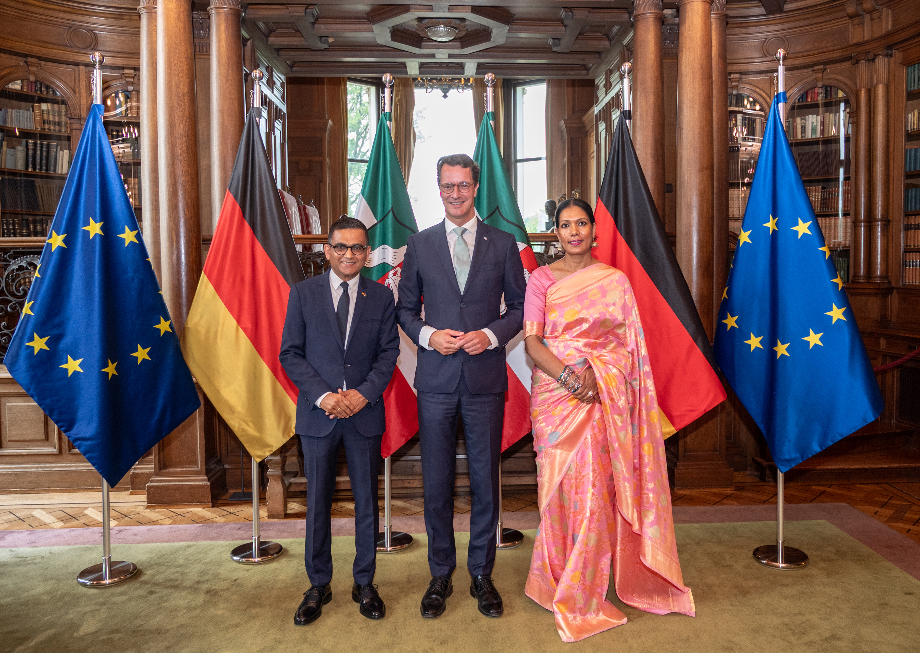 Ministerpräsident Hendrik Wüst richtet am Mittwoch, 14. August 2024, einen sommerlichen Empfang für das Konsularische Korps Nordrhein-Westfalen in der Villa Hügel in Essen aus, an dem Repräsentantinnen und Repräsentanten der rund 100 konsularischen und diplomatischen Vertretungen ausländischer Staaten in Nordrhein-Westfalen teilnehmen. Der Ministerpräsident würdigt mit dem Sommerempfang das bedeutende Engagement und den wertvollen Austausch mit dem Konsularischen Korps in Nordrhein-Westfalen. Der Minister für Bundes- und Europaangelegenheiten, Internationales sowie Medien und Chef der Staatskanzlei, Nathanael Liminski, nimmt ebenfalls an dem Empfang teil.
