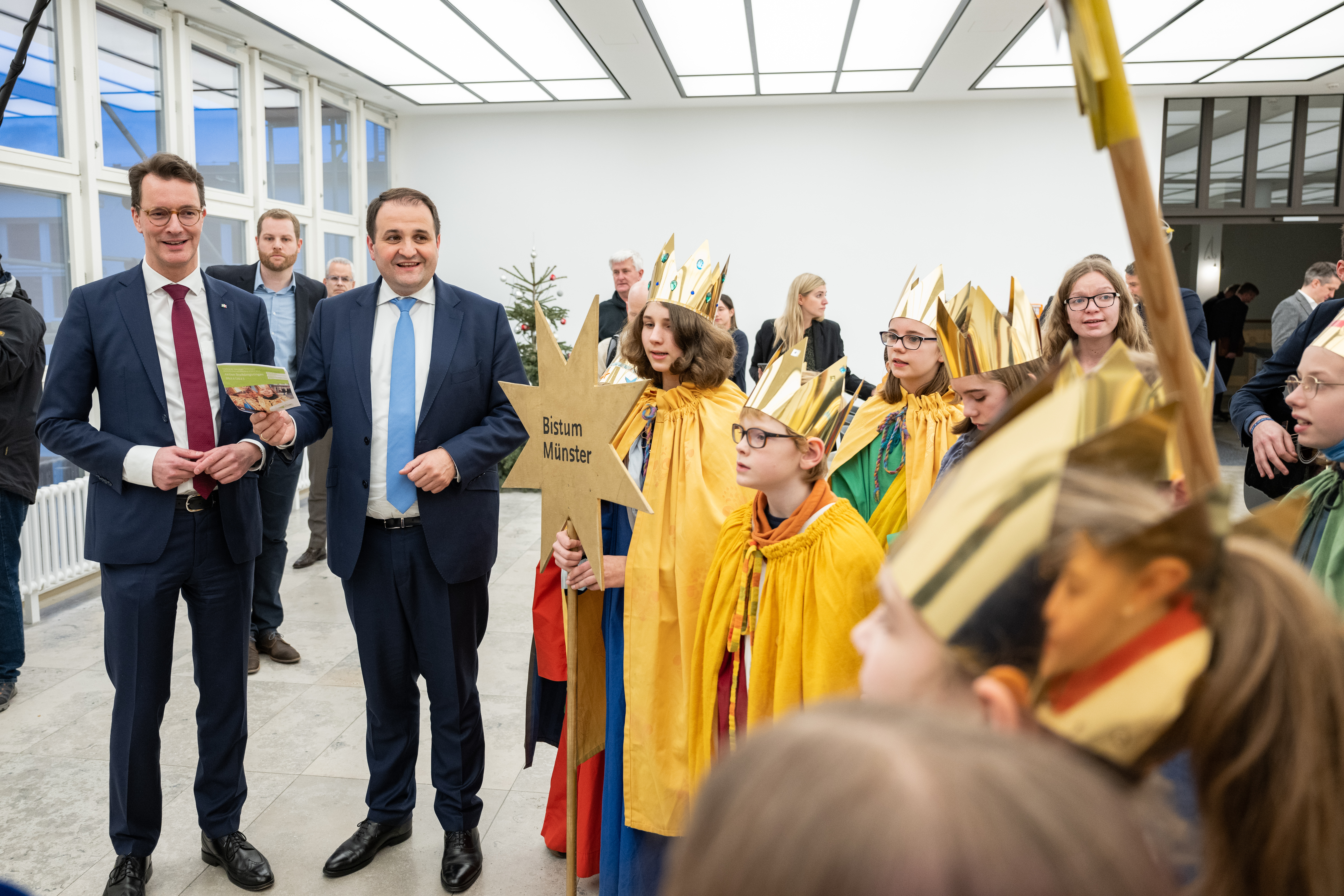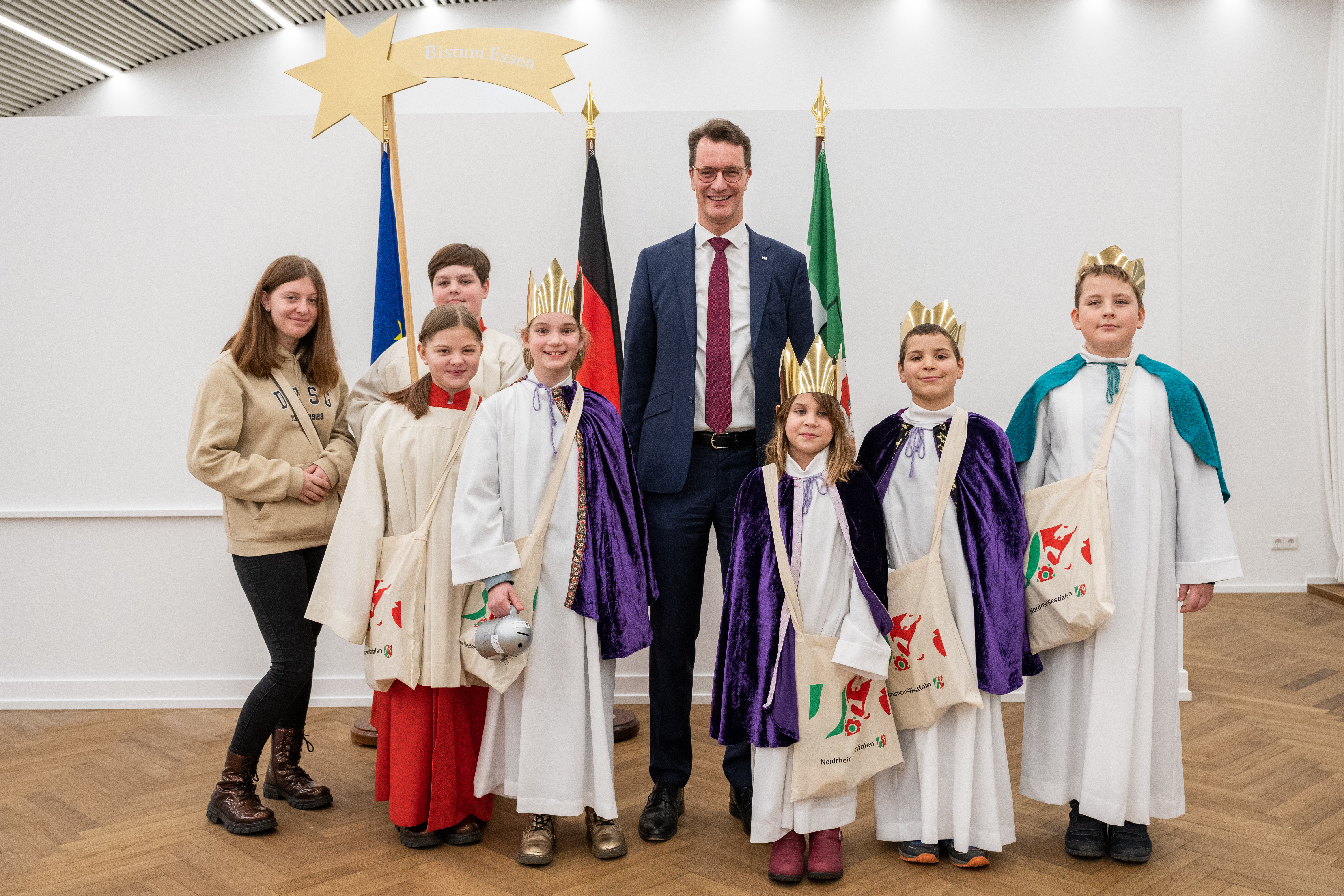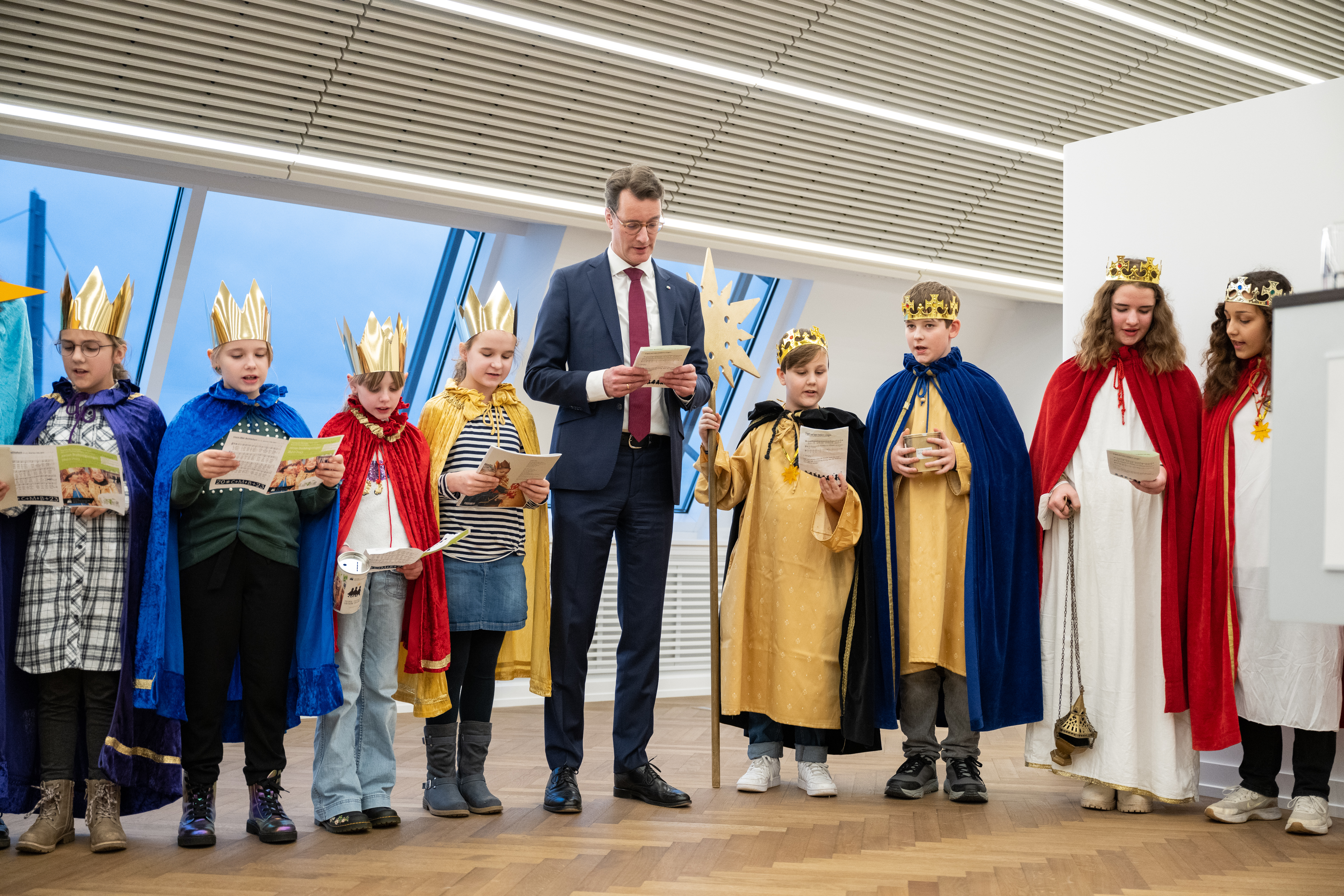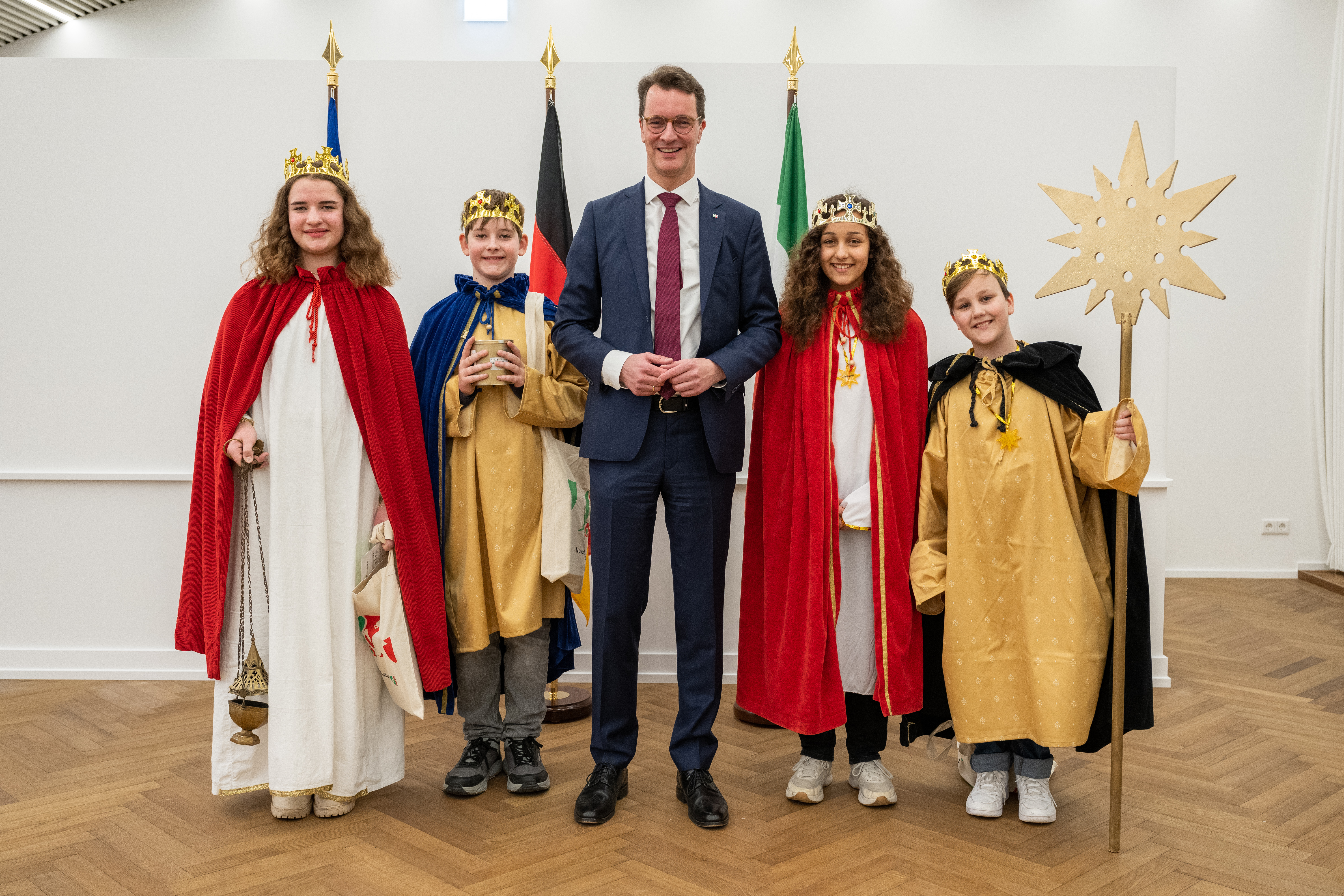 Ministerpräsident Hendrik Wüst empfängt Sternsinger zum traditionellen Dreikönigssingen