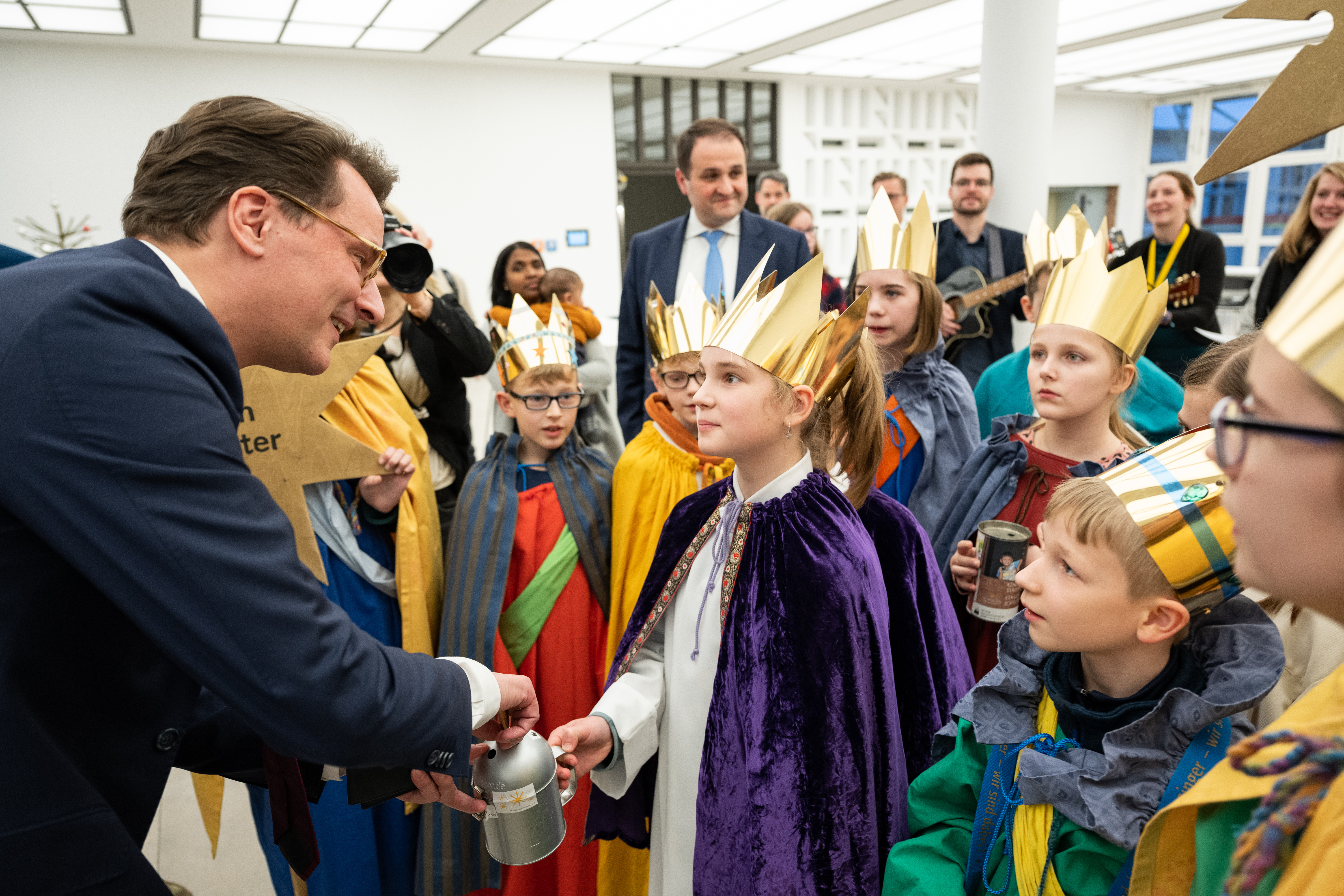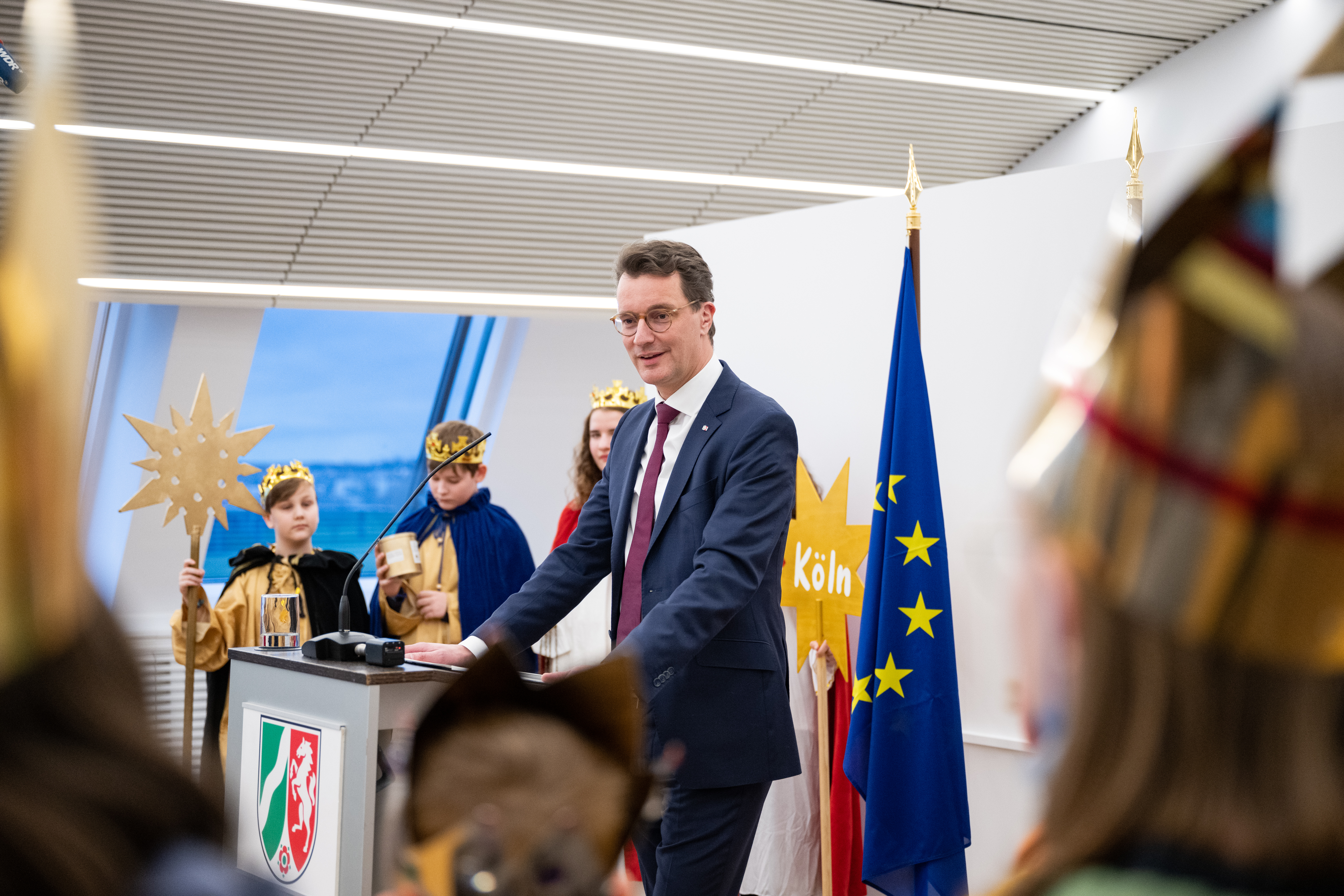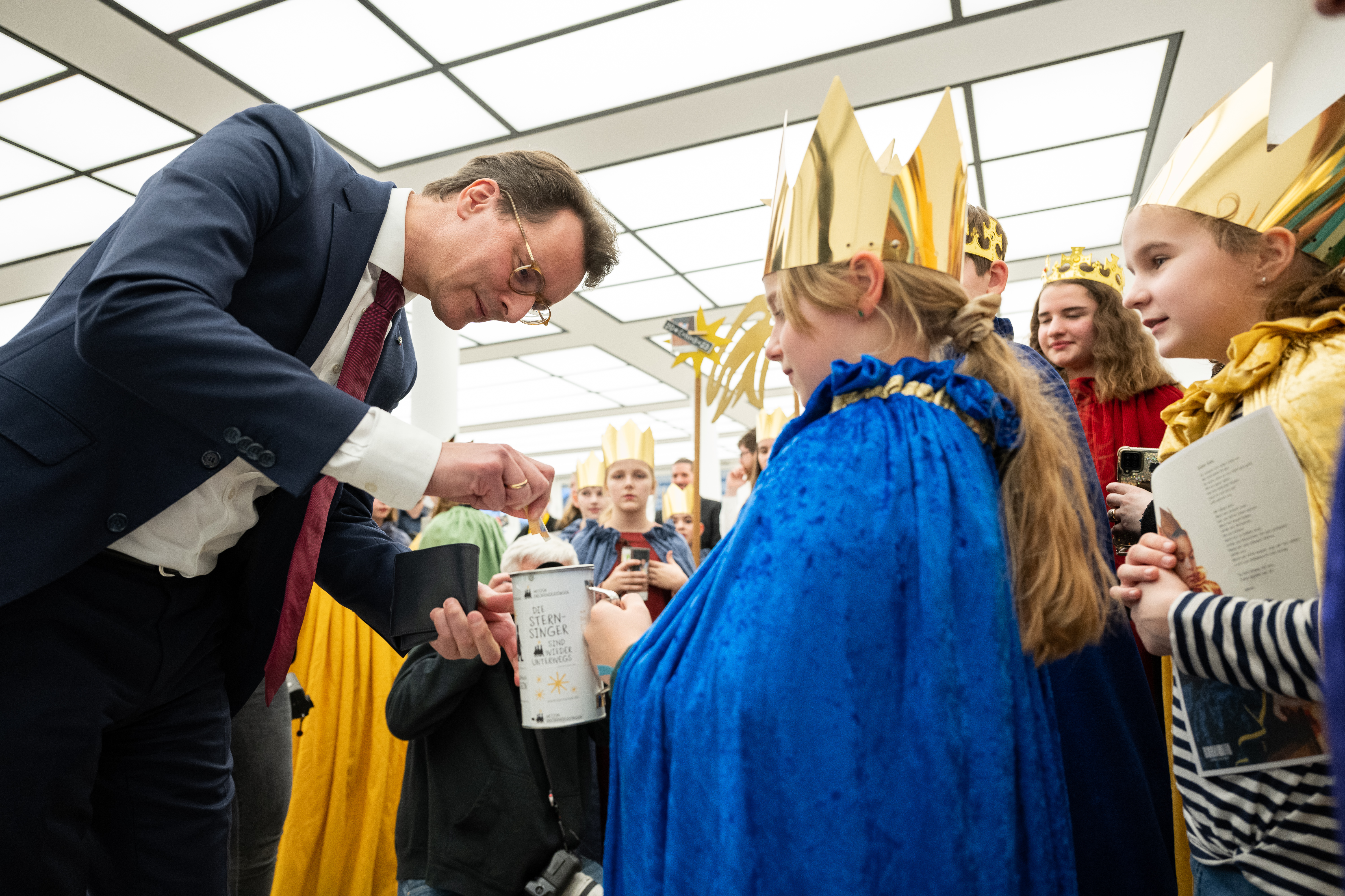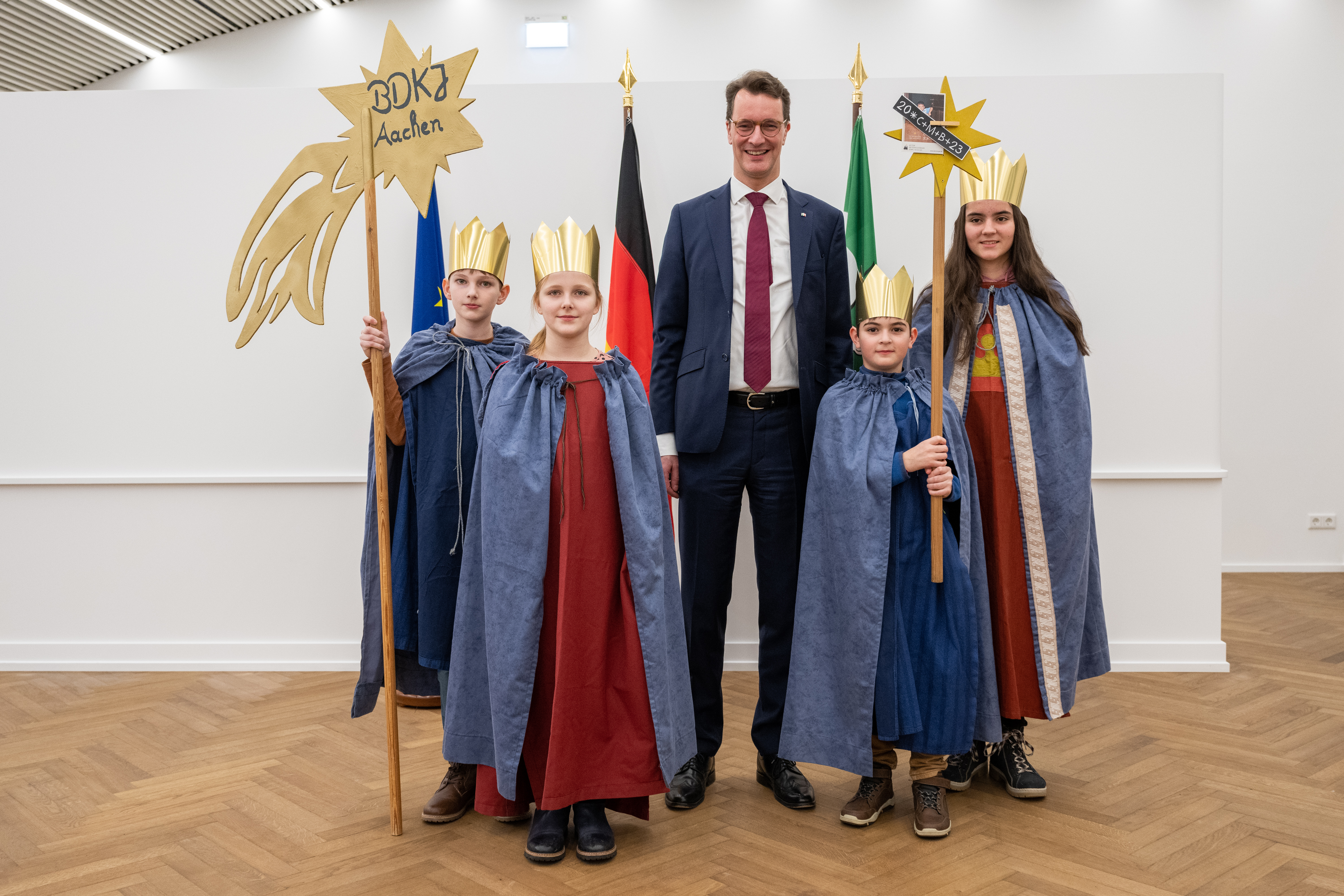 Ministerpräsident Hendrik Wüst empfängt Sternsinger zum traditionellen Dreikönigssingen