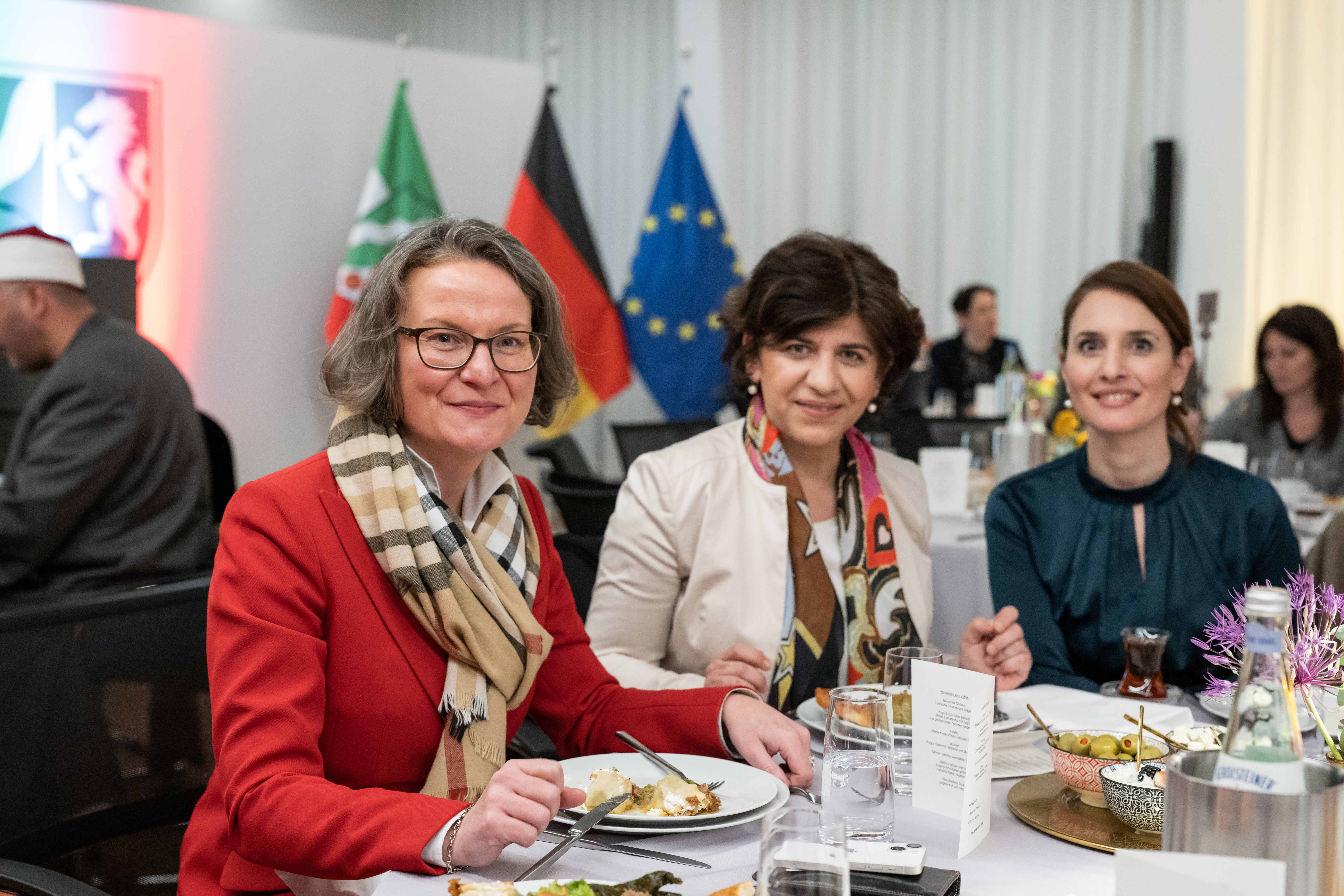 An dem Empfang und gemeinsamen Fastenbrechen im Landeshaus nehmen Vertreterinnen und Vertreter der islamischen Landesverbände, Repräsentanten der Kirchen und der jüdischen Gemeinden, Persönlichkeiten der Landespolitik und Mitglieder des konsularischen Korps in Nordrhein-Westfalen teil.