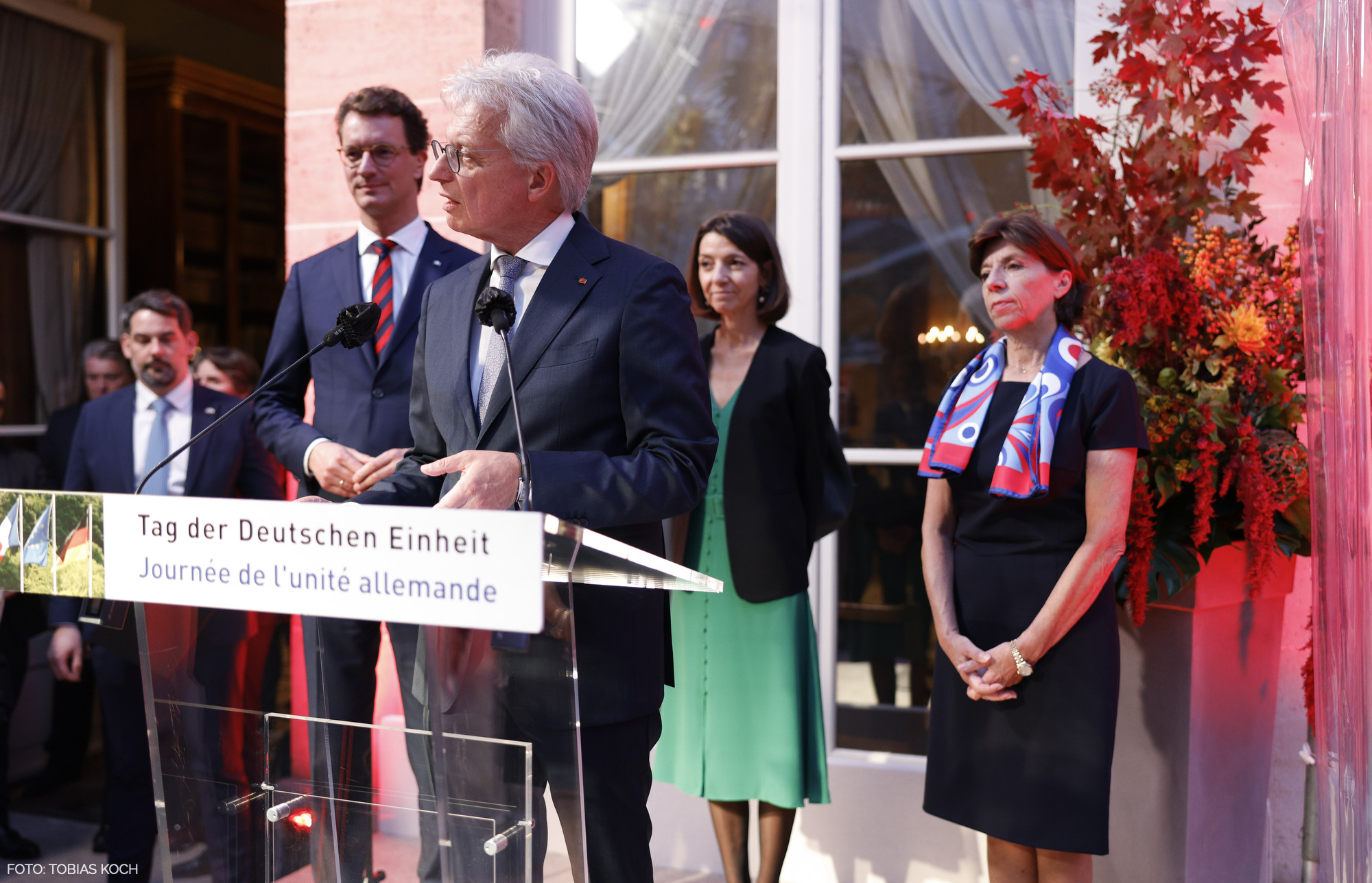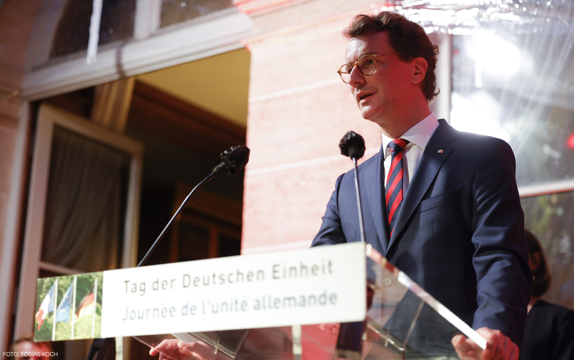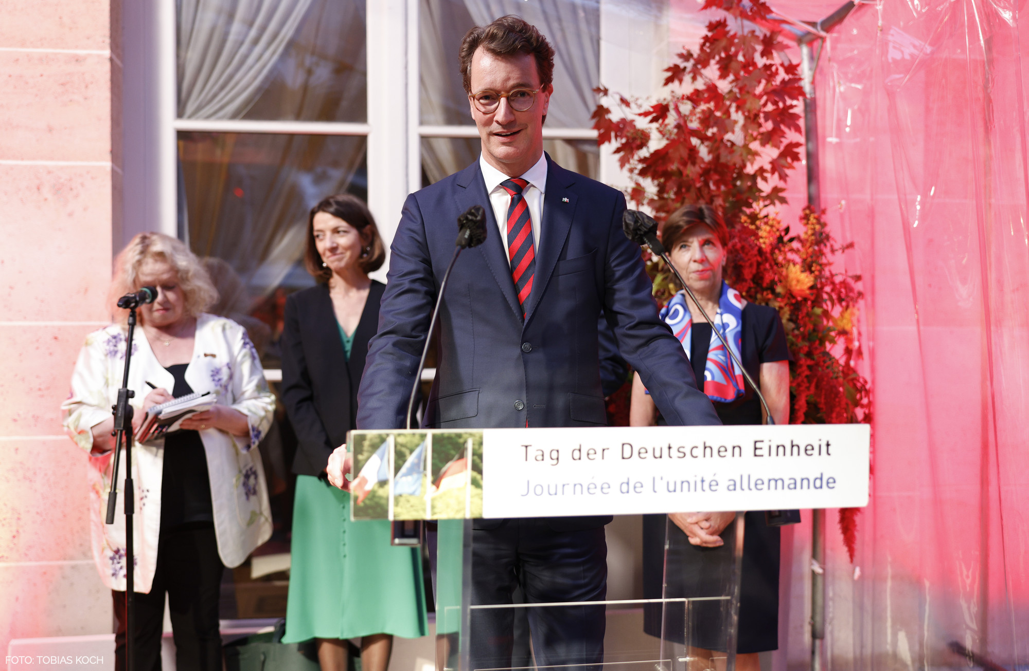 Ministerpräsident Hendrik Wüst: „Die deutsche Einheit steht für das Vertrauen, das uns unsere europäischen Freunde entgegengebracht haben – gerade Frankreich. Unsere tiefe Freundschaft findet ihre Spuren sowohl in der Wiedervereinigung Deutschlands wie im Zusammenwachsen Europas. Dafür sind wir dankbar und deshalb feiern wir gerne diesen Jahrestag der Wiedervereinigung in Paris. Die Stärke des geeinten Deutschlands verdanken wir auch der tiefen Freundschaft Frankreichs.“