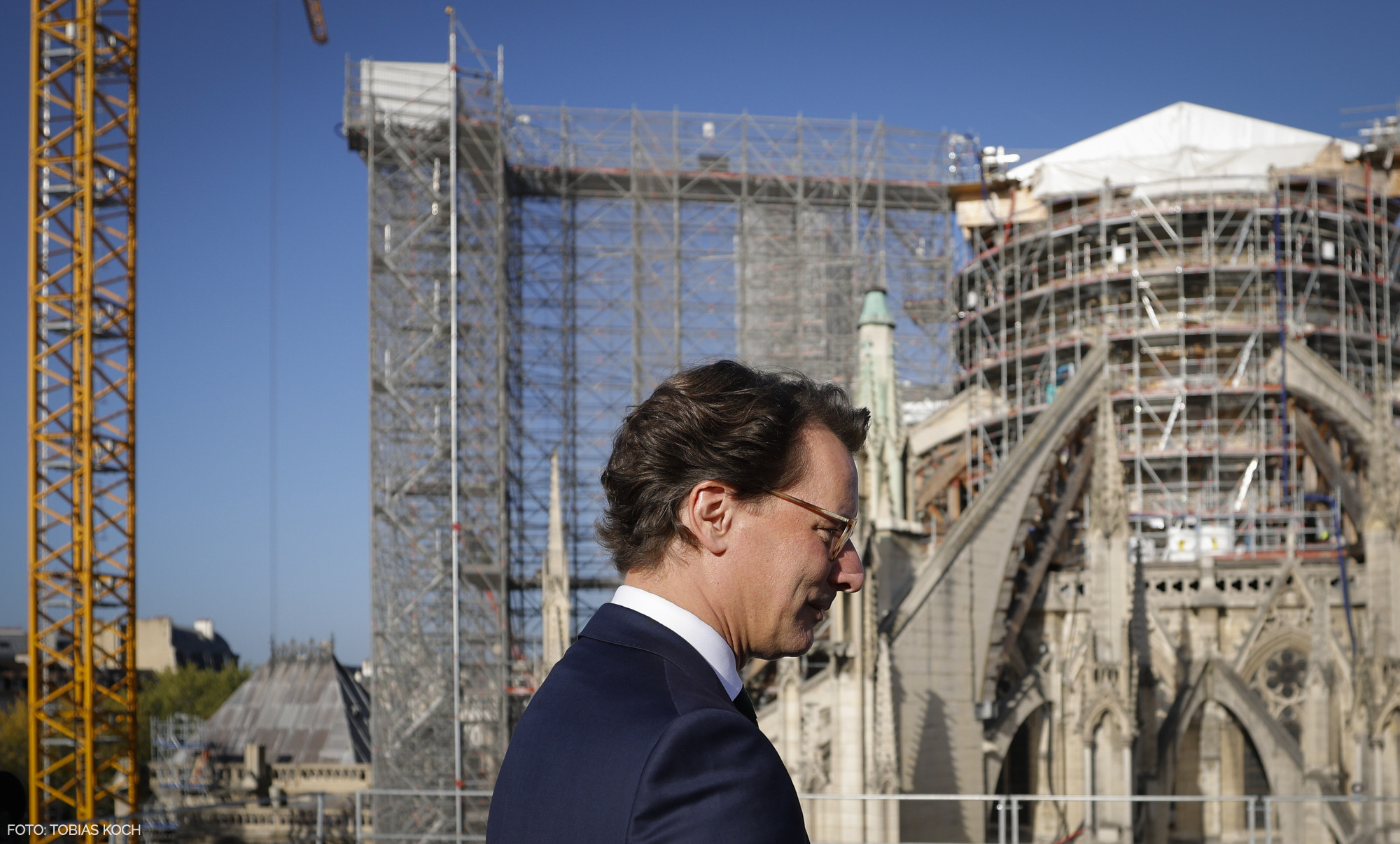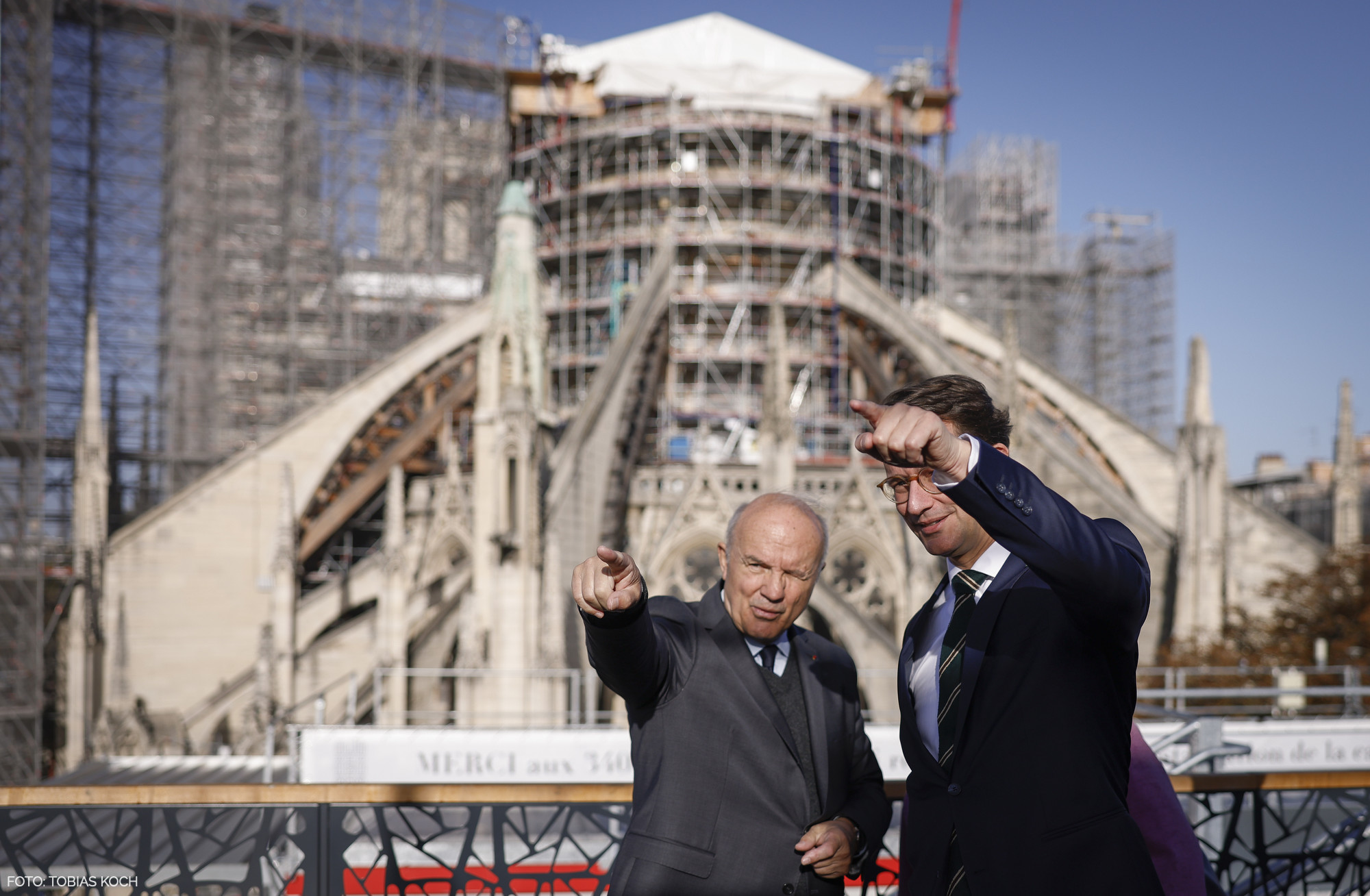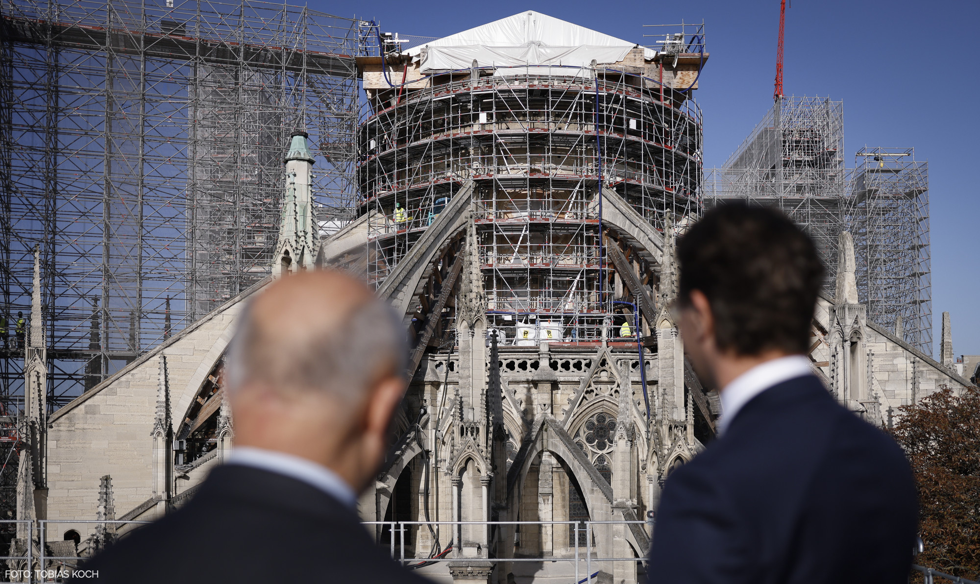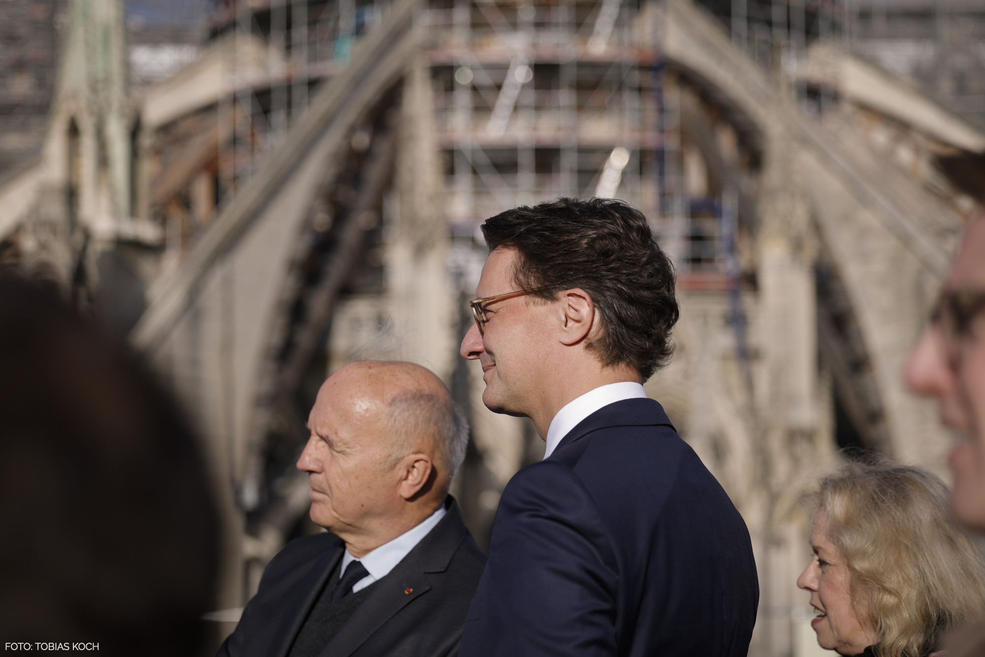 Ministerpräsident Hendrik Wüst besucht in Paris die Kathedrale Notre-Dame de Paris. Bei einem Großbrand am 15. und 16. April 2019 wurden große Teile des historischen Bauwerks zerstört, besonders der Dachstuhl ist betroffen. Schon am Tag nach der Brandkatastrophe riefen der deutsch-französische Kulturbevollmächtigte und die Präsidentin der deutschen UNESCO-Kommission eine Spendenaktion „NRW für Notre-Dame“ ins Leben. Dabei kamen knapp 500.000 Euro zusammen, die nun in den Wiederaufbau fließen. So werden vier Obergadenfenster aus dem Langhaus der Kathedrale in einem einzigartigen deutsch-französischen Kooperationsprojekt in der Kölner Dombauhütte restauriert.