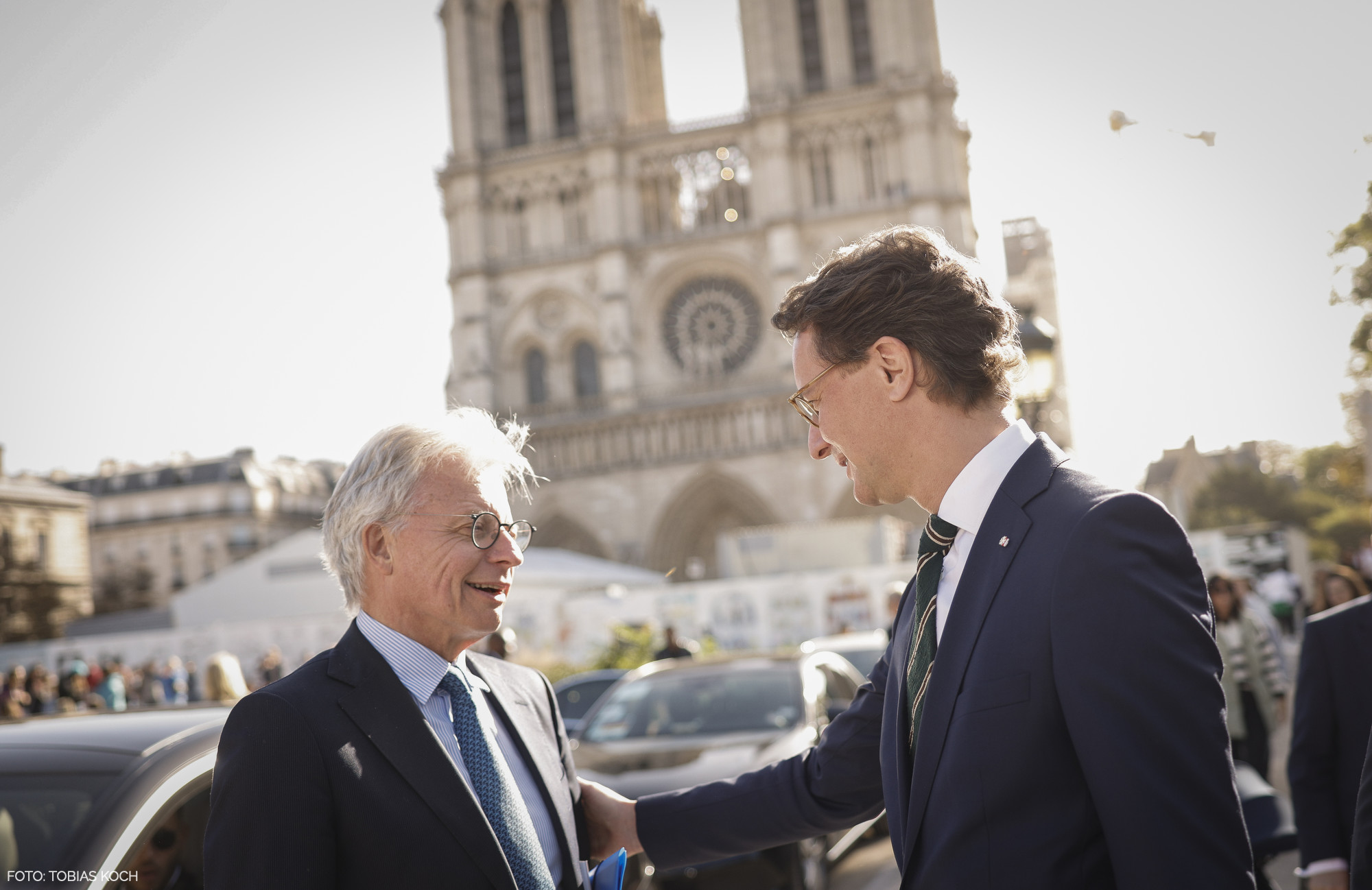 Ministerpräsident und Bevollmächtigter der Bundesrepublik Deutschland für kulturelle Angelegenheiten im Rahmen des Vertrags über die deutsch-französische Zusammenarbeit, Hendrik Wüst, reist anlässlich des gemeinsamen Empfangs des Deutschen Botschafters und der Landesregierung zum Tag der Deutschen Einheit nach Paris. Im Rahmen der Reise wird der Ministerpräsident auch politische Gespräche mit den Mitgliedern der Deutsch-Französischen Freundschaftsgruppe im französischen Senat, dem Minister für Finanzen, Industrielle Souveränität und Digitales, Bruno Le Maire, sowie mit dem UN-Sondergesandten für Verkehrssicherheit, Jean Todt, führen. Auch ein Zusammentreffen während des Empfangs zum Tag der Deutschen Einheit mit der Außenministerin Catherine Colonna ist vorgesehen. Zudem wird der Ministerpräsident die Restaurierungsarbeiten der Kathedrale Notre-Dame de Paris besichtigen.