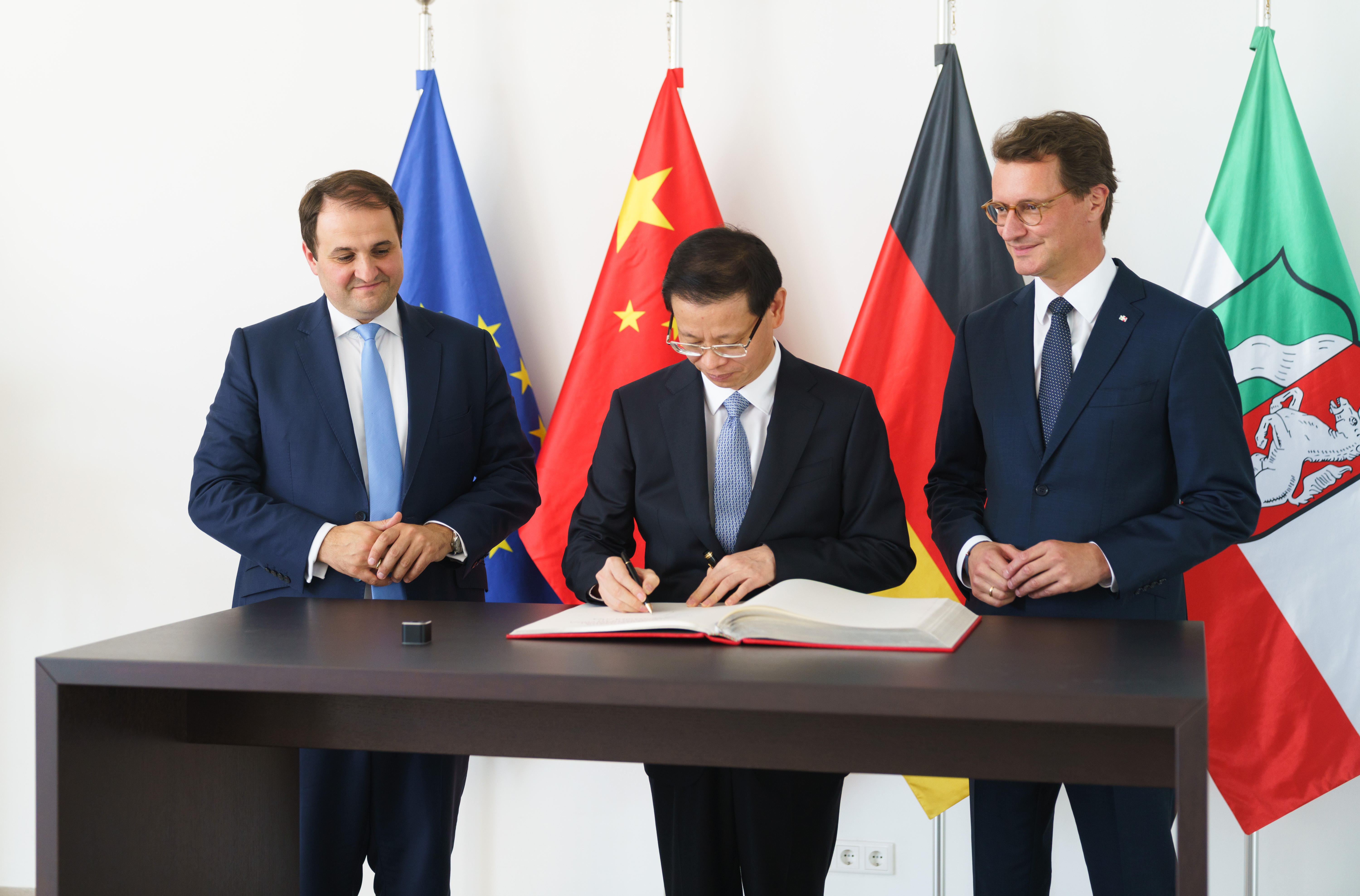 Ministerpräsident Hendrik Wüst weiter: „Mit Jiangsu verbinden uns vielfältige Beziehungen in Wirtschaft, Wissenschaft, aber auch Zivilgesellschaft. Wir wollen die Zusammenarbeit weiter fortsetzen und dabei die Interessen und Werte beider Seiten noch stärker in den Blick nehmen. Angesichts der großen gemeinsamen Herausforderung des Klimawandels und der notwendigen Transformationsprozesse könnten sich insbesondere auf dem Feld der nachhalten Energieversorgung und bei Erneuerbaren Energien Möglichkeiten für zukünftige Kooperationen erschließen.“