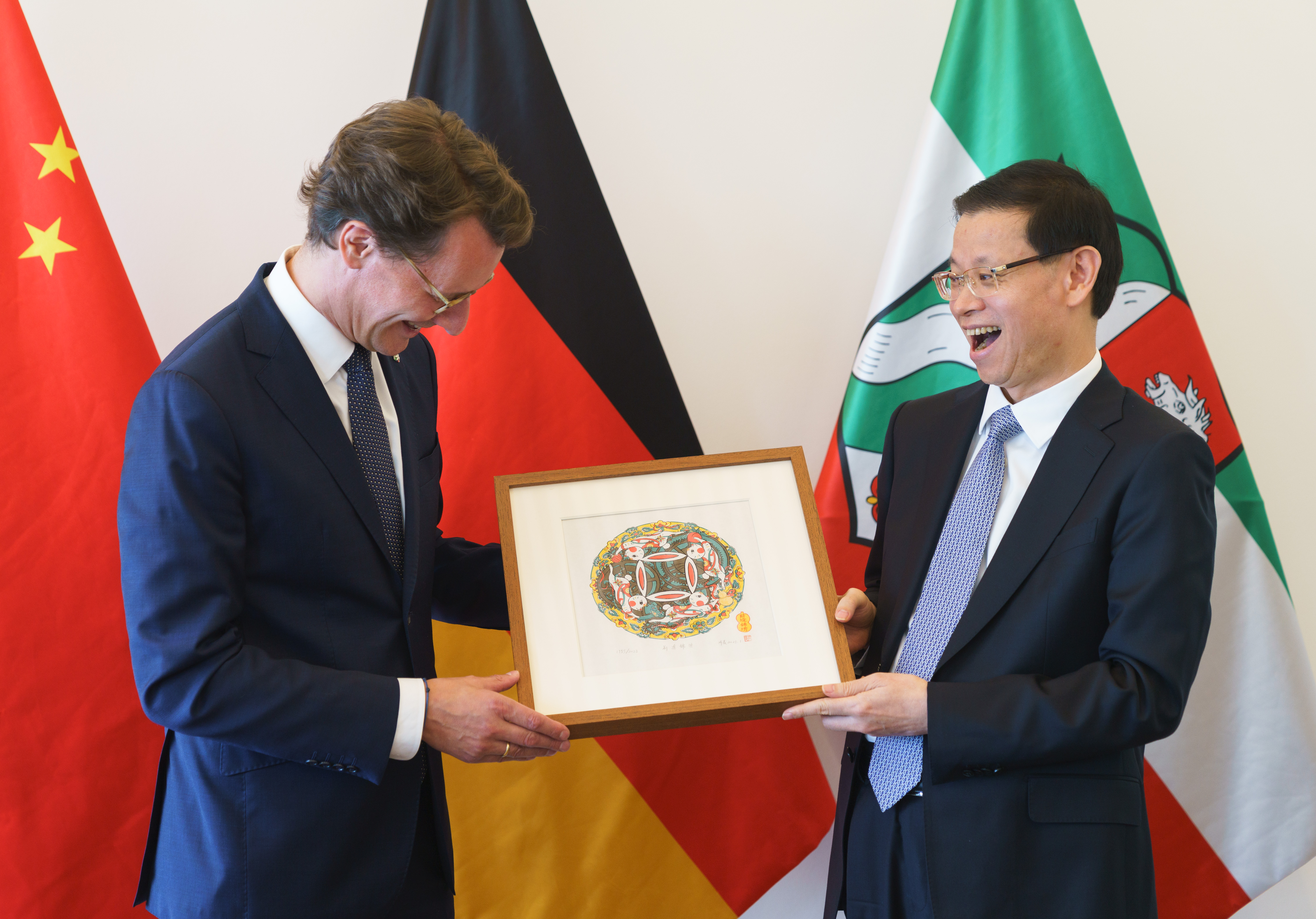 Ministerpräsident Hendrik Wüst trifft den Gouverneur der chinesischen Partnerprovinz Jiangsu