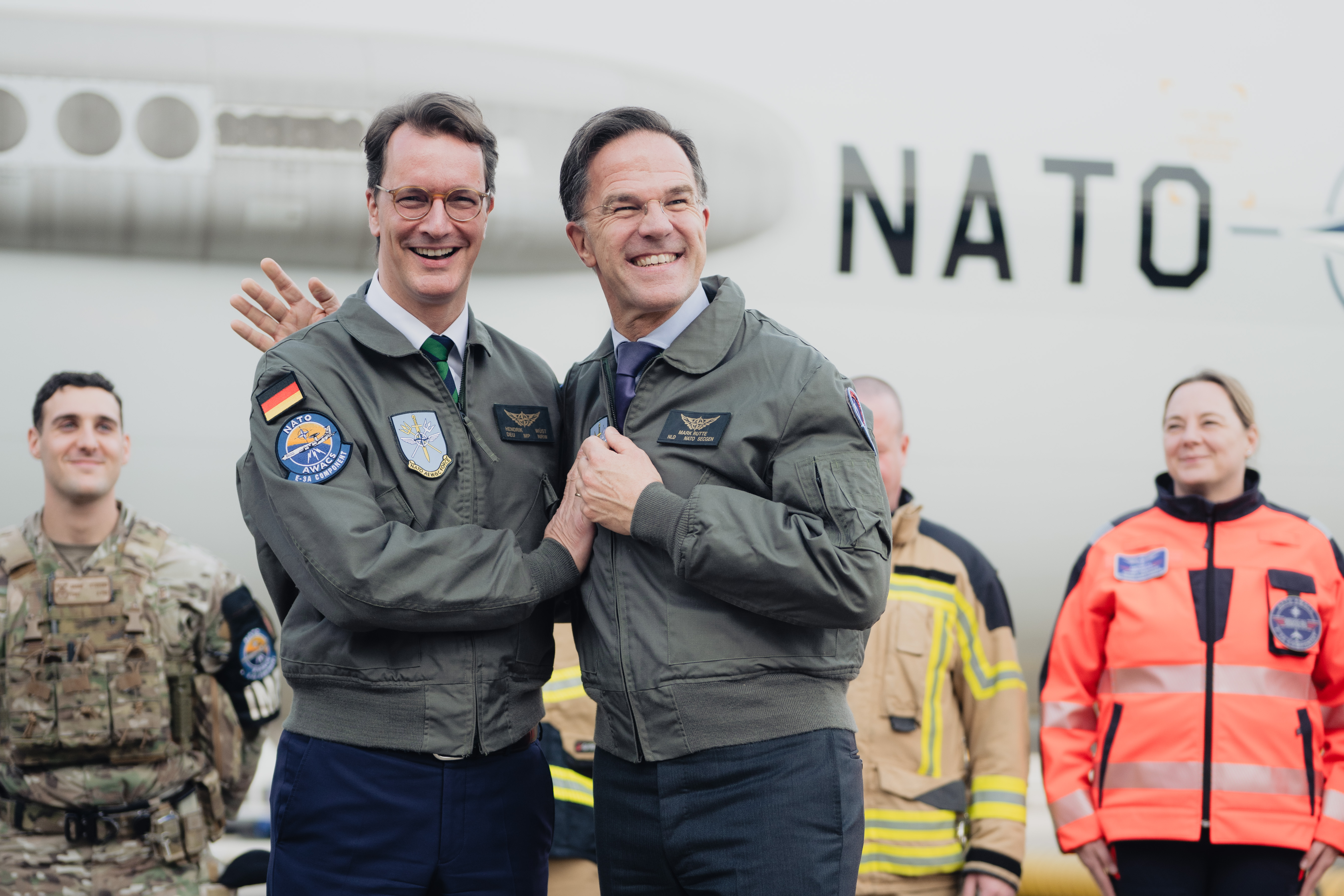 Ministerpräsident Hendrik Wüst hat im Rahmen eines Truppenbesuches am Donnerstag, 13. November 2025, NATO-Generalsekretär Mark Rutte zu einem Austausch auf der NATO-Air Base Geilenkirchen getroffen, dem einzigen direkt von der NATO betriebenen Fliegerhorst in Deutschland. Im Zentrum des gemeinsamen Besuchs auf Einladung von Ministerpräsident Wüst bei der NATO Airborne Early Warning and Control Force standen insbesondere aktuelle verteidigungspolitische Fragen. Ministerpräsident Wüst und NATO-Generalsekretär Rutte besichtigten zunächst die Airborne Early Warning and Control System (AWACS)-Flotte. Das fliegende Radarsystem unterstützt die NATO bei der Luftüberwachung, Gefechtsführung, dem Kommando sowie der Kommunikation und werden für eine Vielzahl von NATO-Missionen eingesetzt. Anschließend haben sich der Ministerpräsident und der NATO-Generalsekretär mit Soldatinnen und Soldaten der NATO-Air Base Geilenkirchen ausgetauscht.