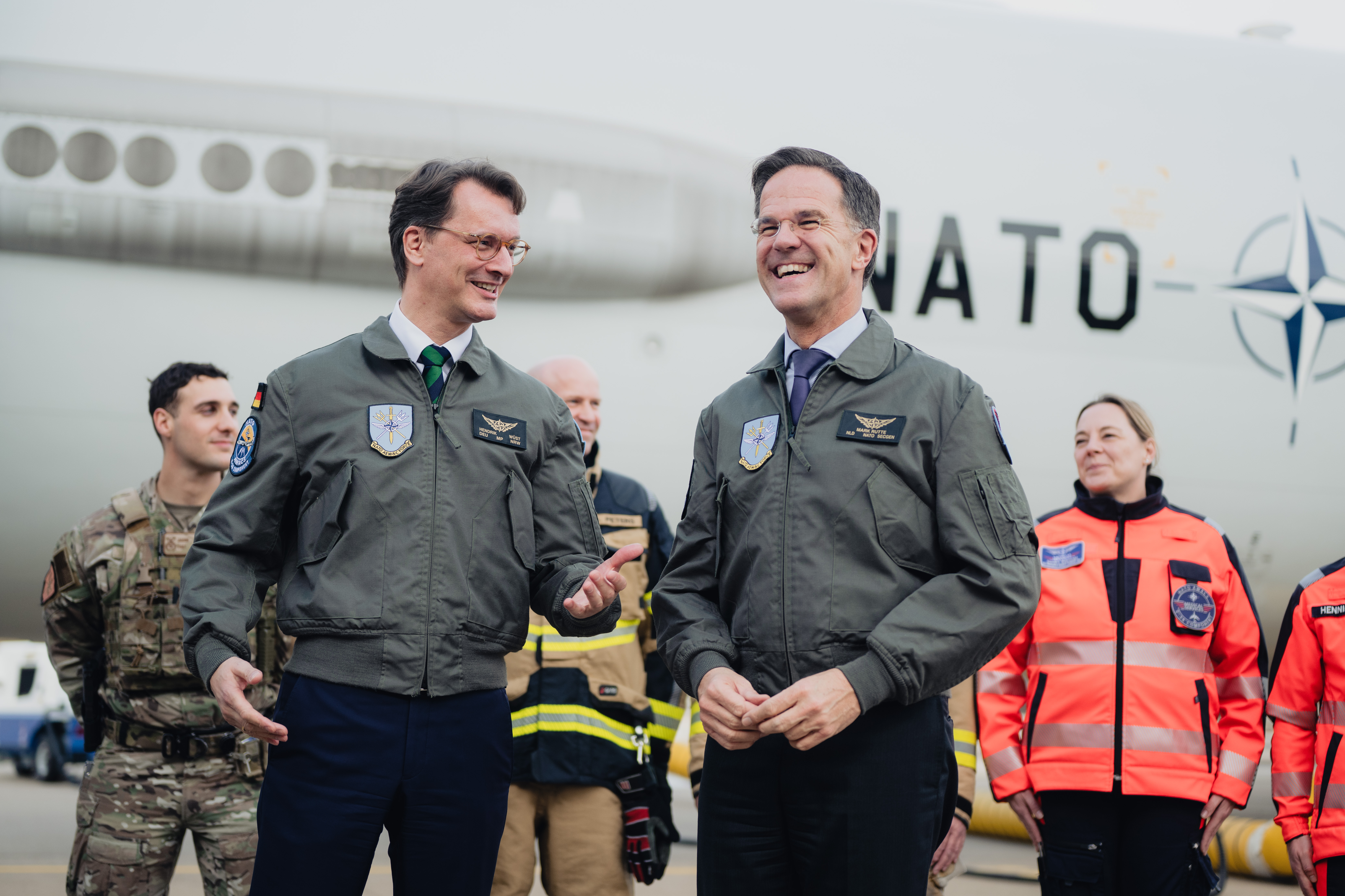 Ministerpräsident Hendrik Wüst hat im Rahmen eines Truppenbesuches am Donnerstag, 13. November 2025, NATO-Generalsekretär Mark Rutte zu einem Austausch auf der NATO-Air Base Geilenkirchen getroffen, dem einzigen direkt von der NATO betriebenen Fliegerhorst in Deutschland. Im Zentrum des gemeinsamen Besuchs auf Einladung von Ministerpräsident Wüst bei der NATO Airborne Early Warning and Control Force standen insbesondere aktuelle verteidigungspolitische Fragen.