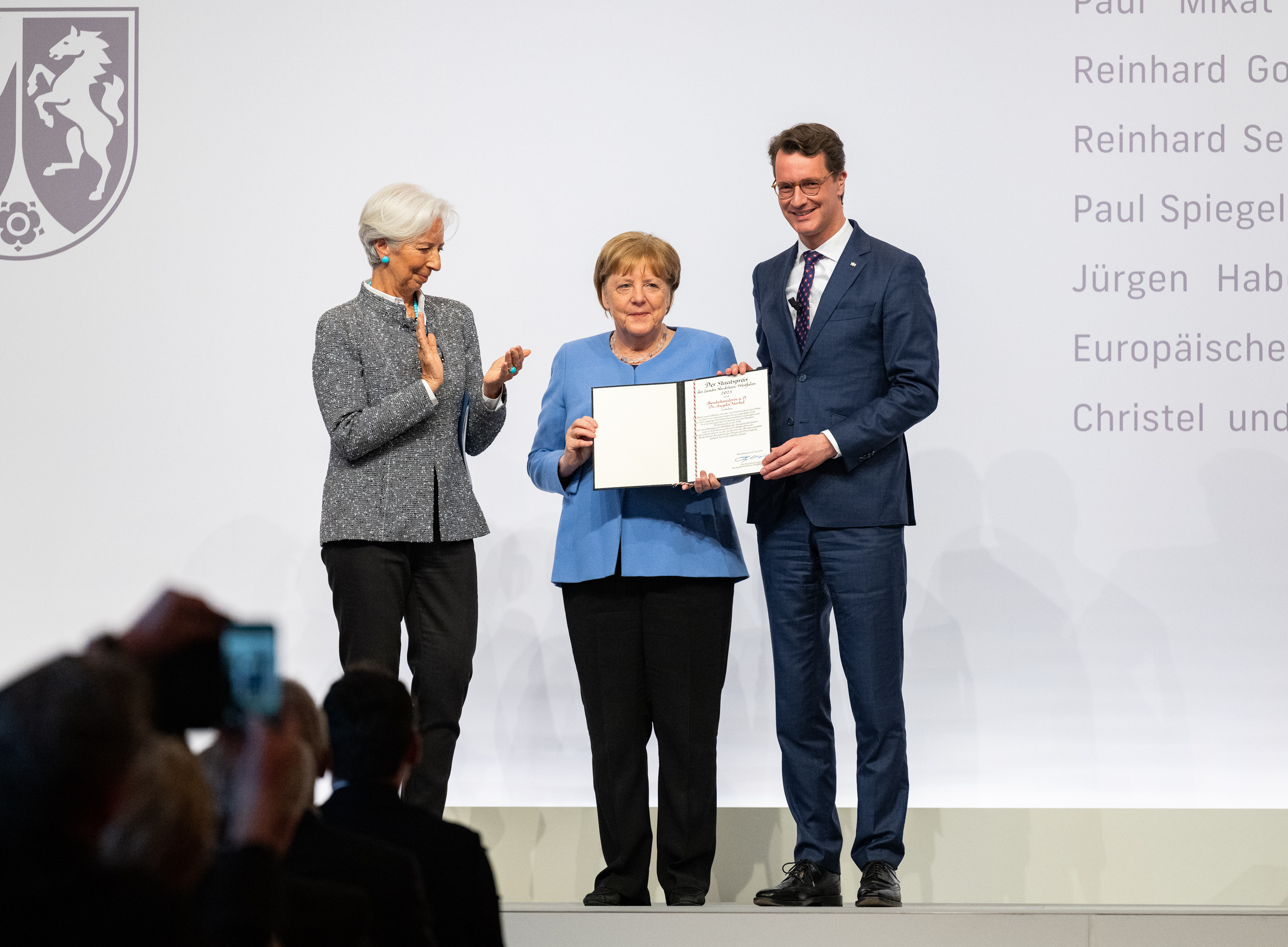 Die Laudatio auf die 59. Trägerin der höchsten Auszeichnung des Landes Nordrhein-Westfalen hielt Christine Lagarde, Präsidentin der Europäischen Zentralbank.
