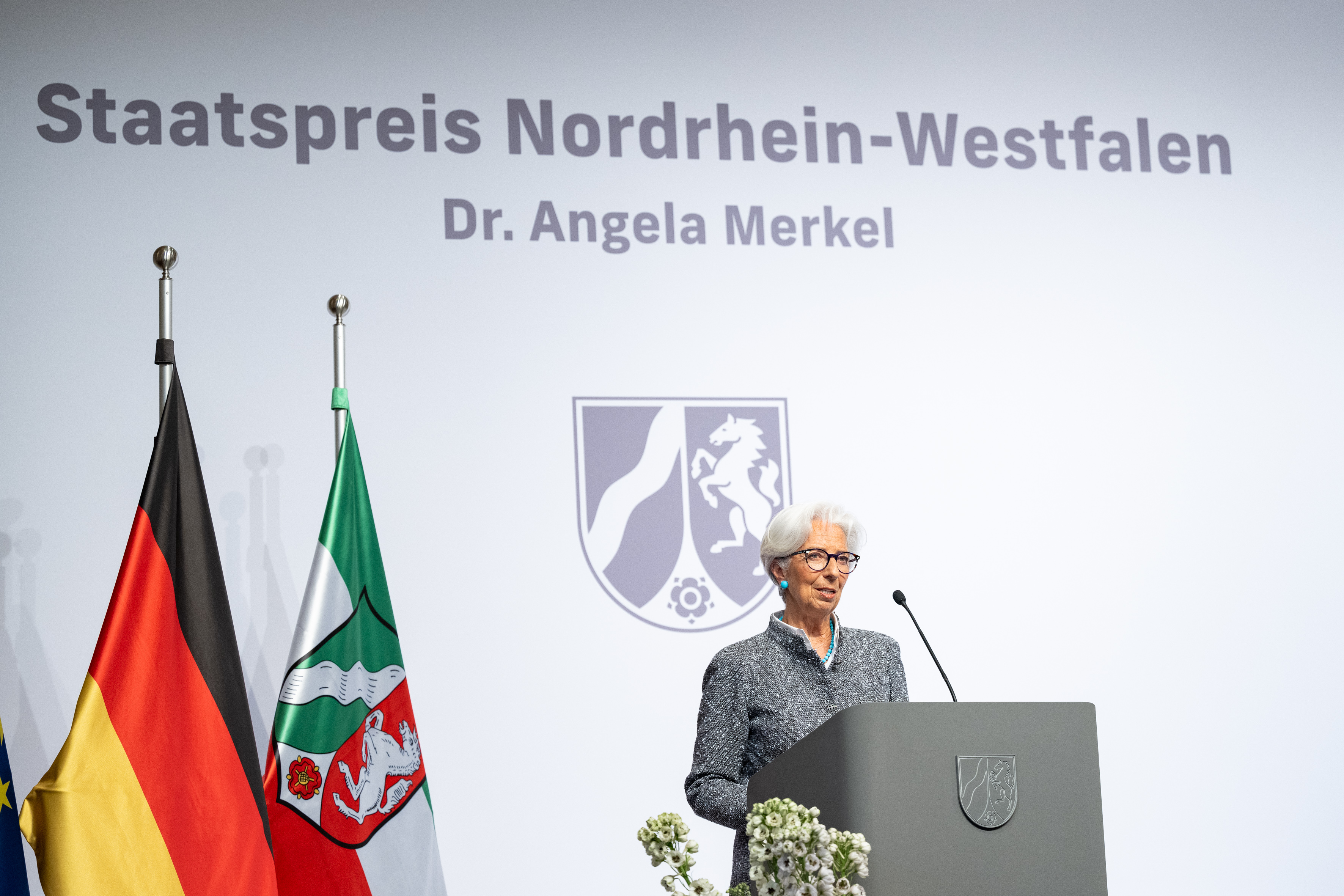 - Laudatio von Christine Lagarde, Präsidentin der EZB, zur Verleihung des Staatspreises des Landes Nordrhein-Westfalen an Bundeskanzlerin a.D. Dr. Angela Merkel am 16. Mai 2023 in Köln