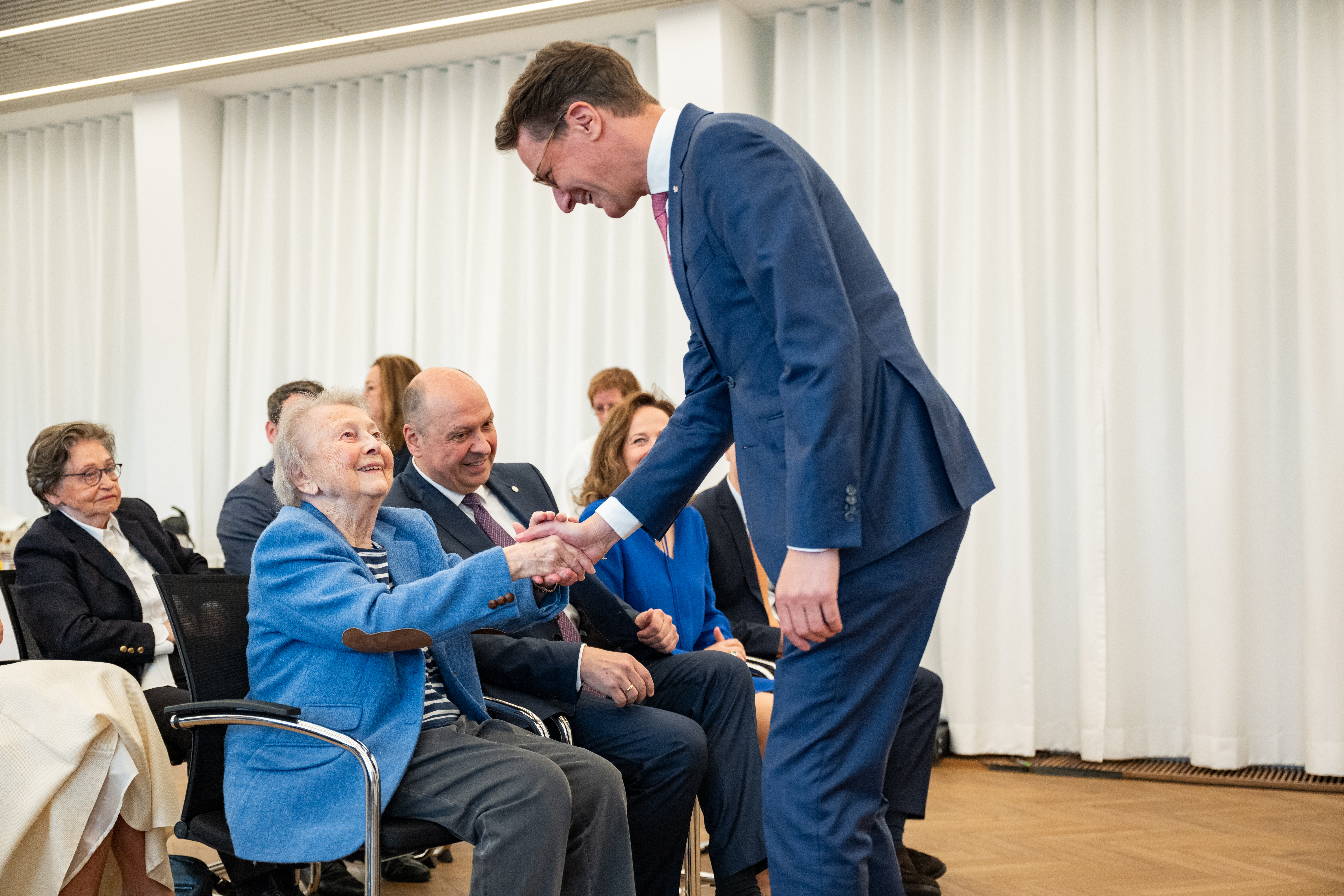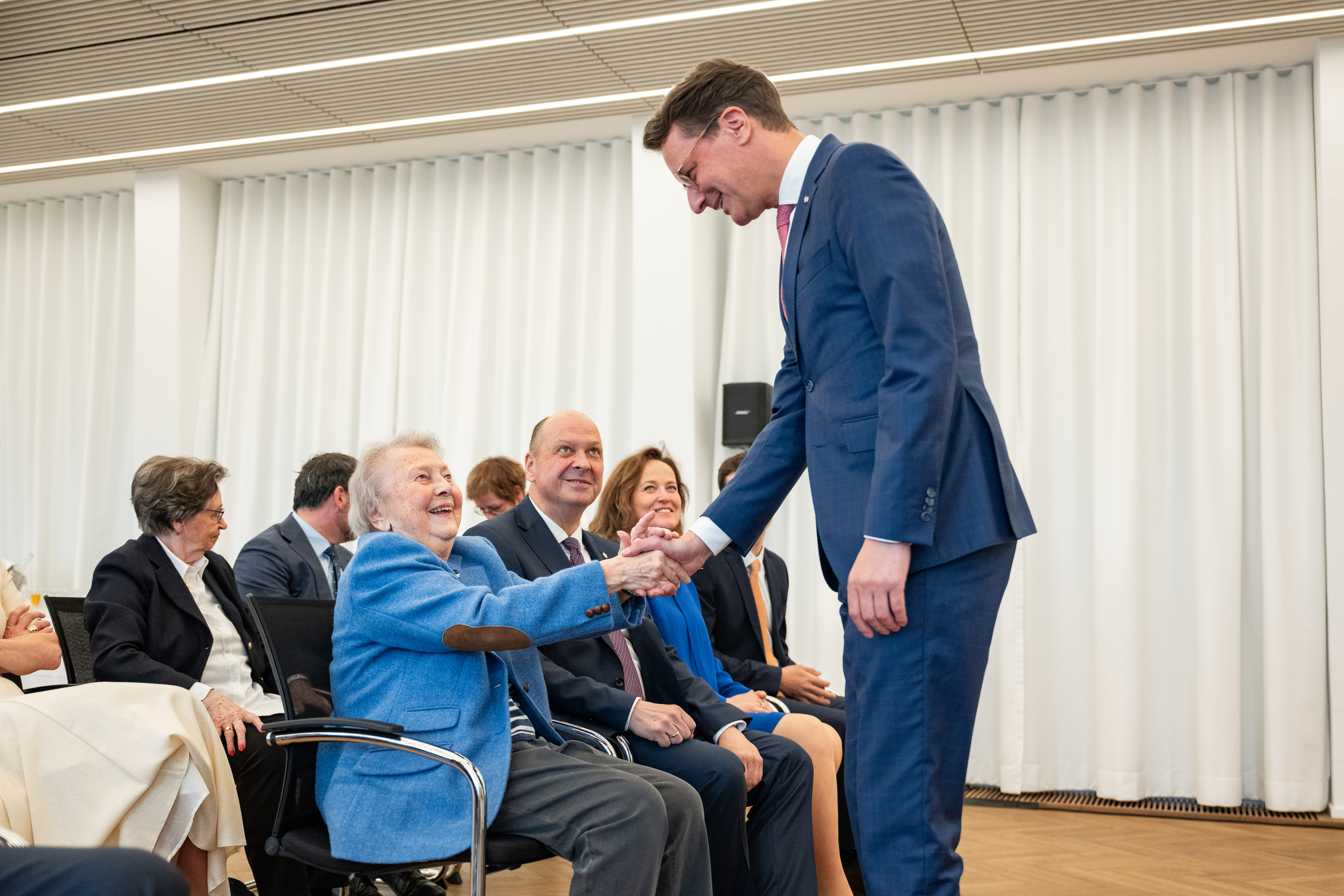 Ich begrüße Sie alle herzlich im Landeshaus zur Verleihung des Verdienstordens des Landes Nordrhein-Westfalen an Frau Dr. Esther Betz! Es ist mir eine große Freude, dass auch Ihre Familie heute hier ist, um diesen Tag mit Ihnen zu feiern. Herzlich willkommen an Sie alle!