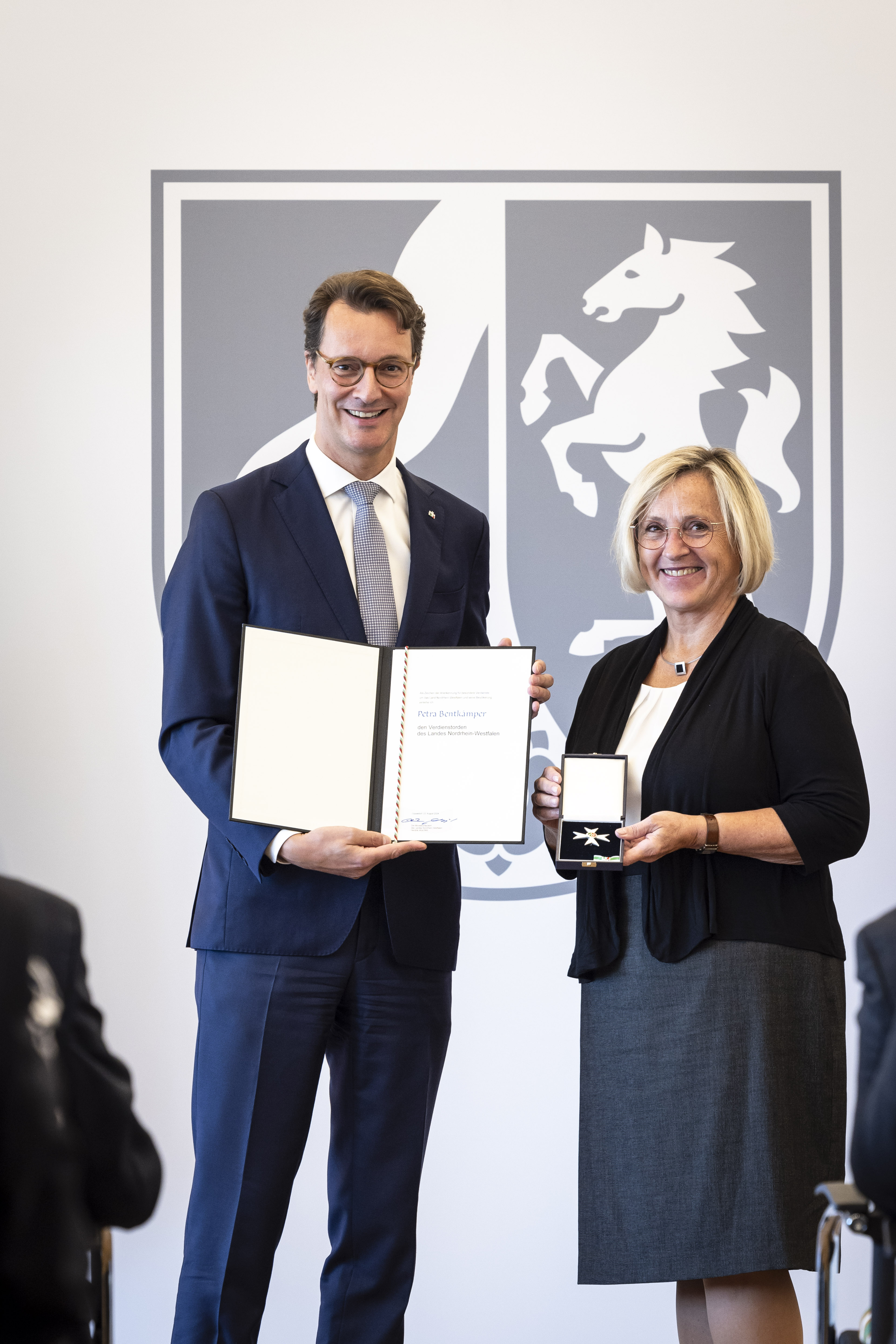 Liebe Frau Bentkämper, Sie werden wegen Ihrer offenen, den Menschen zugewandten und verbindenden Art besonders geschätzt. Heute verleihe ich Ihnen für Ihr Engagement den Verdienstorden des Landes Nordrhein-Westfalen.