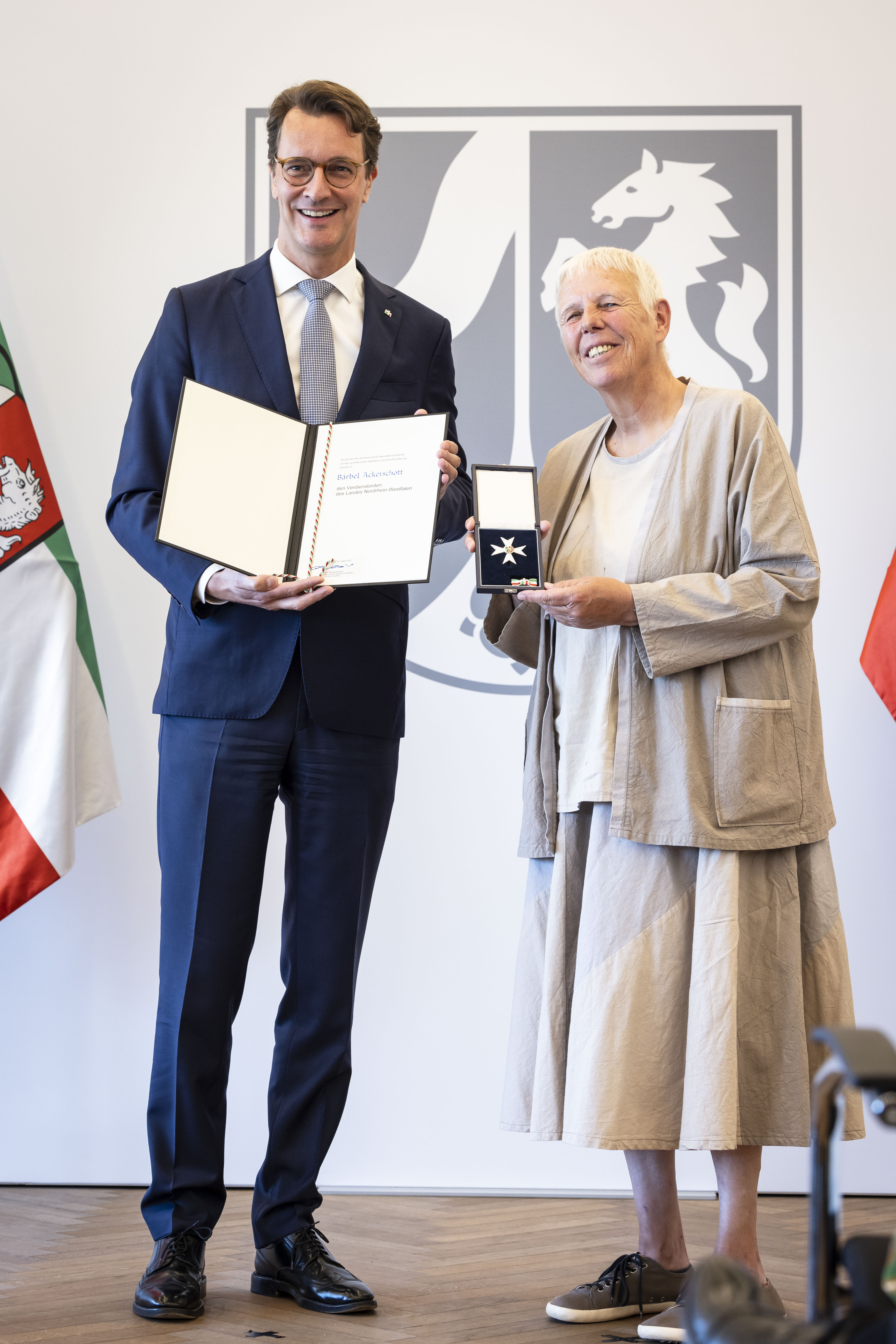 „Unser Land und unsere Gesellschaft leben von Menschlichkeit, Solidarität und Nächstenliebe. Wenn besondere Menschen sich den Einsatz und das Engagement für diese entscheidenden Werte zur Lebensaufgabe machen, verdienen sie unseren Dank und unsere Anerkennung“, so Ministerpräsident Hendrik Wüst. „Die Auszeichnung mit dem Verdienstorden des Landes Nordrhein-Westfalen ist daher ein bedeutendes Zeichen: Wir ehren damit Menschen, die sich jeden Tag auf vielfältige und lebendige Art und Weise um unser Land verdient machen – unter Einsatz von viel Zeit und Kraft, immer mit dem genauen Blick auf ihre Mitmenschen. Alle Preisträgerinnen und Preisträger hier setzen sich zum Teil schon seit Jahrzehnten für unser Land ein, mit herausragendem Engagement und unter Zurückstellung eigener Interessen. Sie alle stiften Zusammenhalt und Teilhabe über Generationen hinweg und sind Vorbilder und Hoffnungsträger für uns und unser Land.“