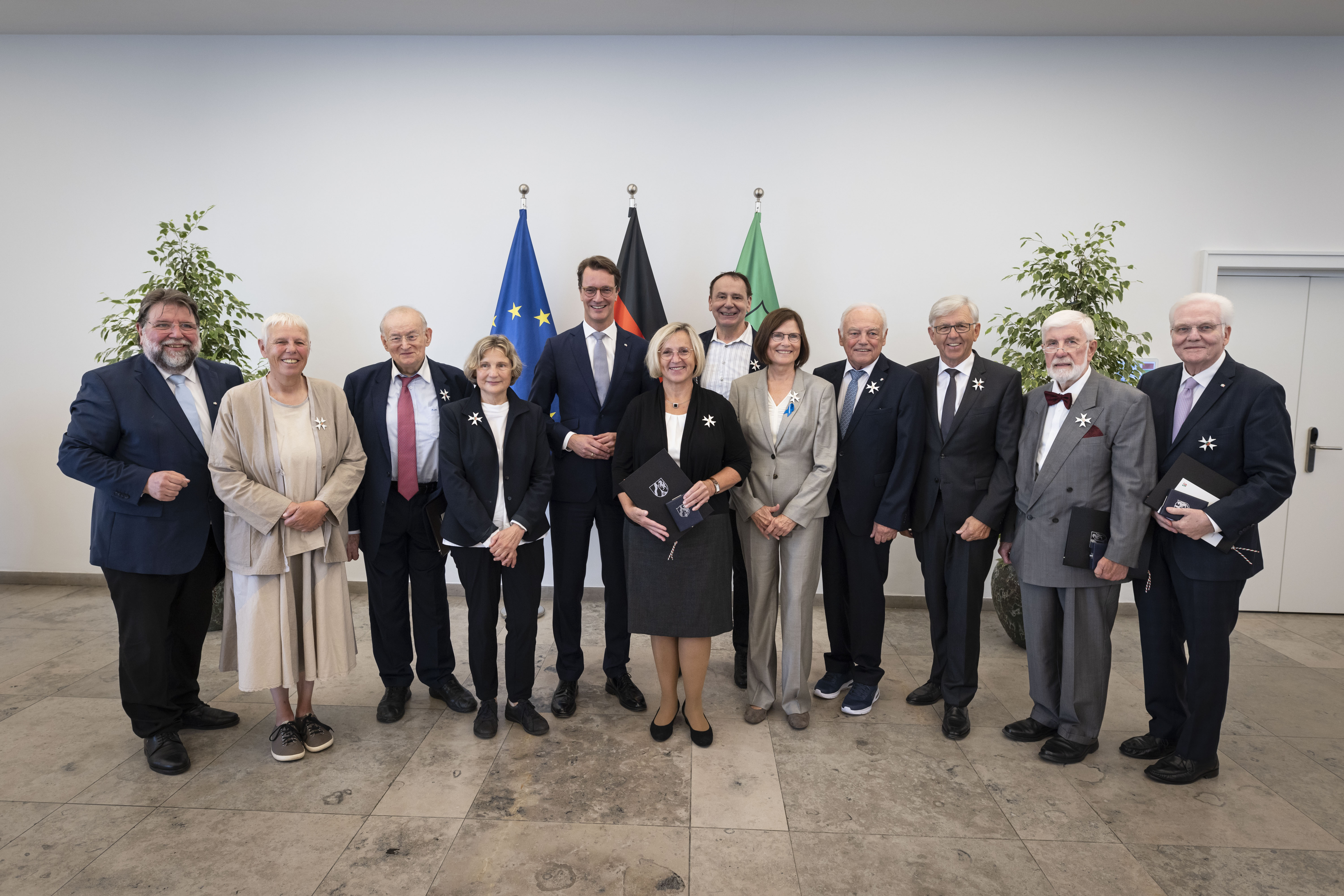 Zum 78. Landesgeburtstag hat Ministerpräsident Hendrik Wüst am Freitag, 23. August 2024, den Verdienstorden des Landes Nordrhein-Westfalen an elf engagierte Menschen verliehen. Mit dem Verdienstorden ehrt die Landesregierung traditionell ehrenamtlich besonders engagierte Personen für ihren herausragenden Einsatz für das Gemeinwohl und das Land Nordrhein-Westfalen. Die Verleihung fand in der Staatskanzlei in Düsseldorf statt.