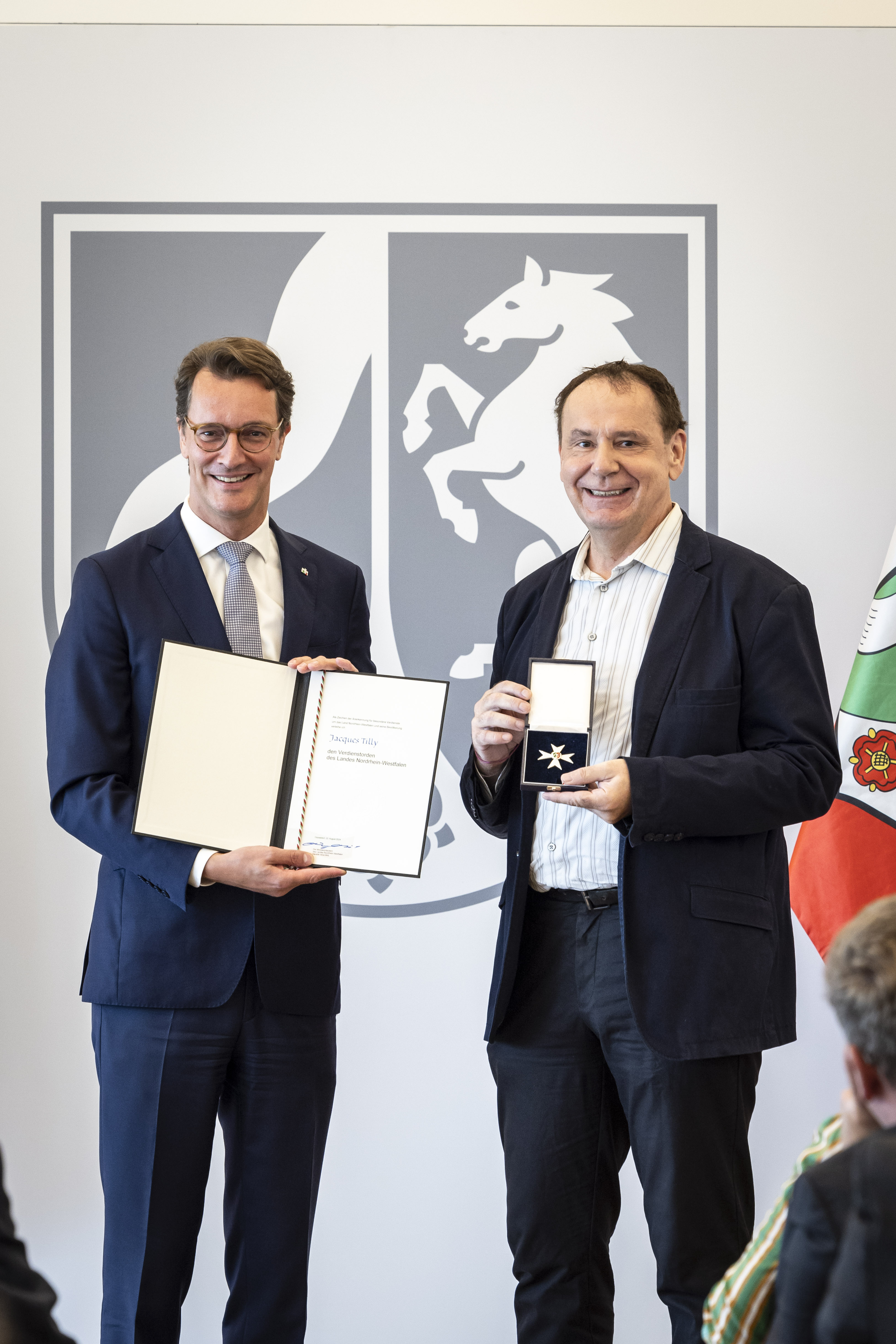 Lieber Jacques Tilly, jedes Jahr erfreuen sich hunderttausende begeisterte Menschen an Ihren Mottowagen. Indem Sie auch brisante politische Themen auf Ihre einmalige Art zuspitzen und sichtbar machen, sind Sie ein besonderer und geachteter Botschafter unseres Landes. Ihr herausragendes Engagement wird heute mit dem Verdienstorden des Landes Nordrhein-Westfalen belohnt.