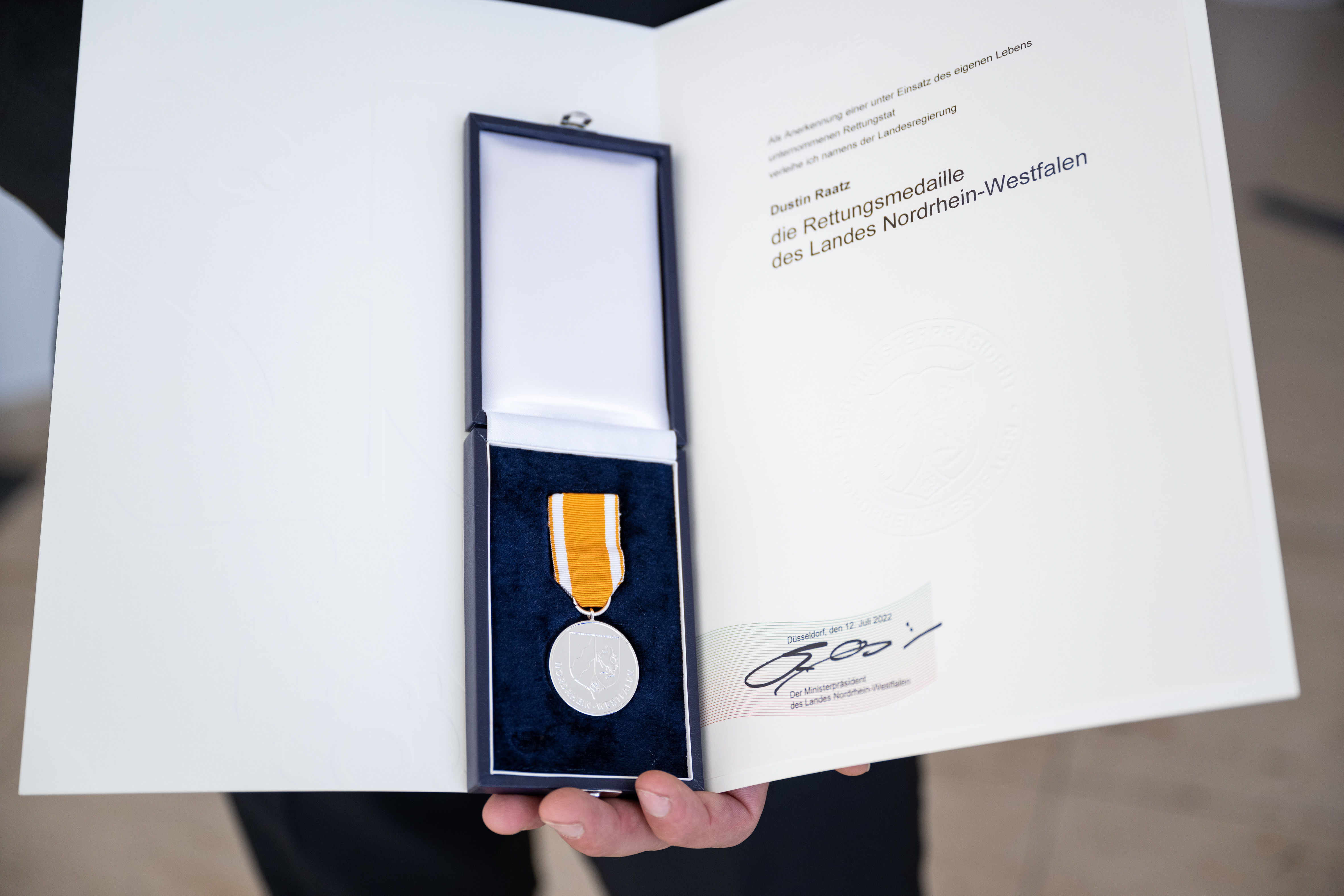 Für seine mutige Rettungsaktion verleihe ich Dustin Raatz deshalb die Rettungsmedaille des Landes Nordrhein-Westfalen.