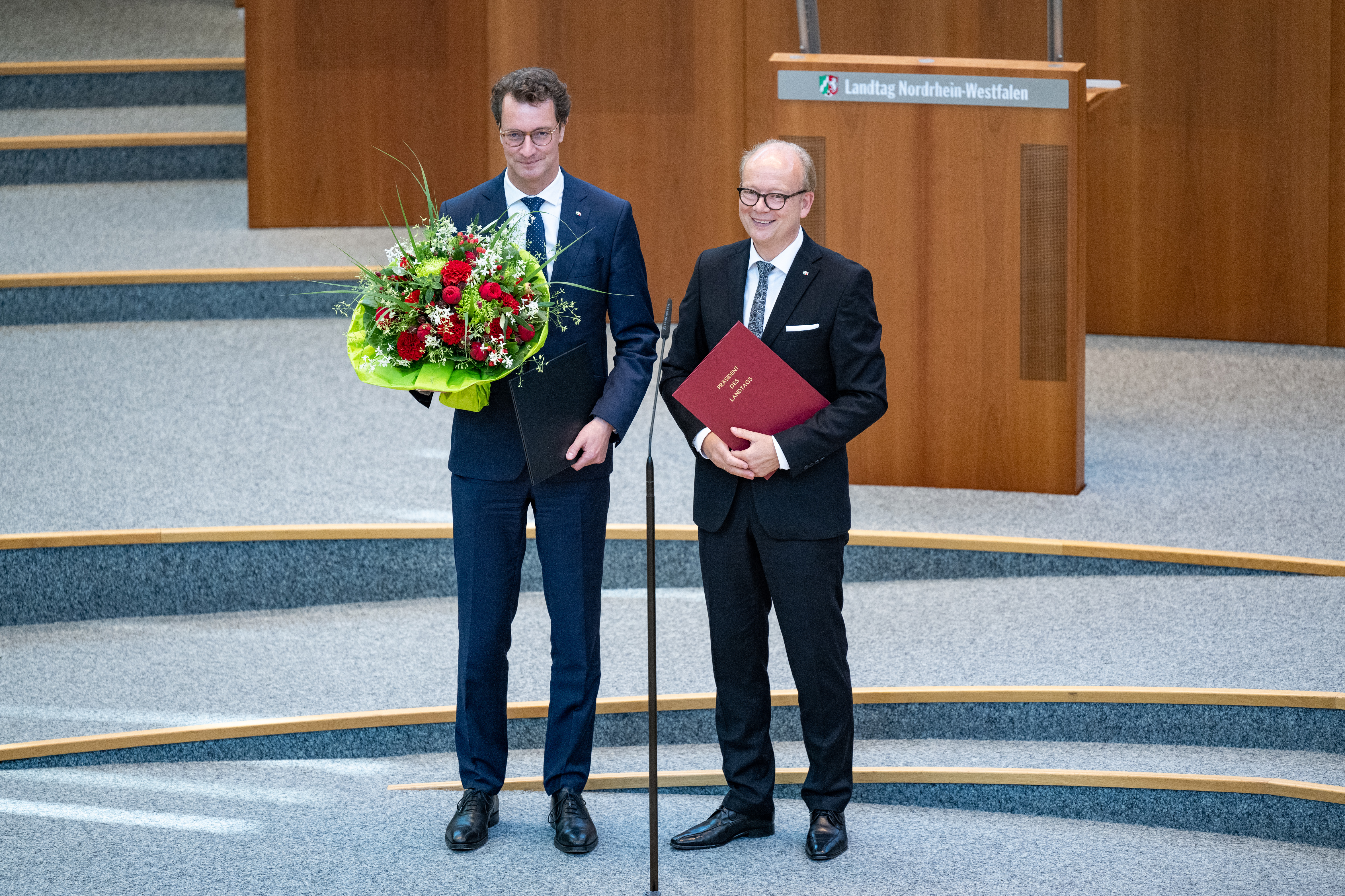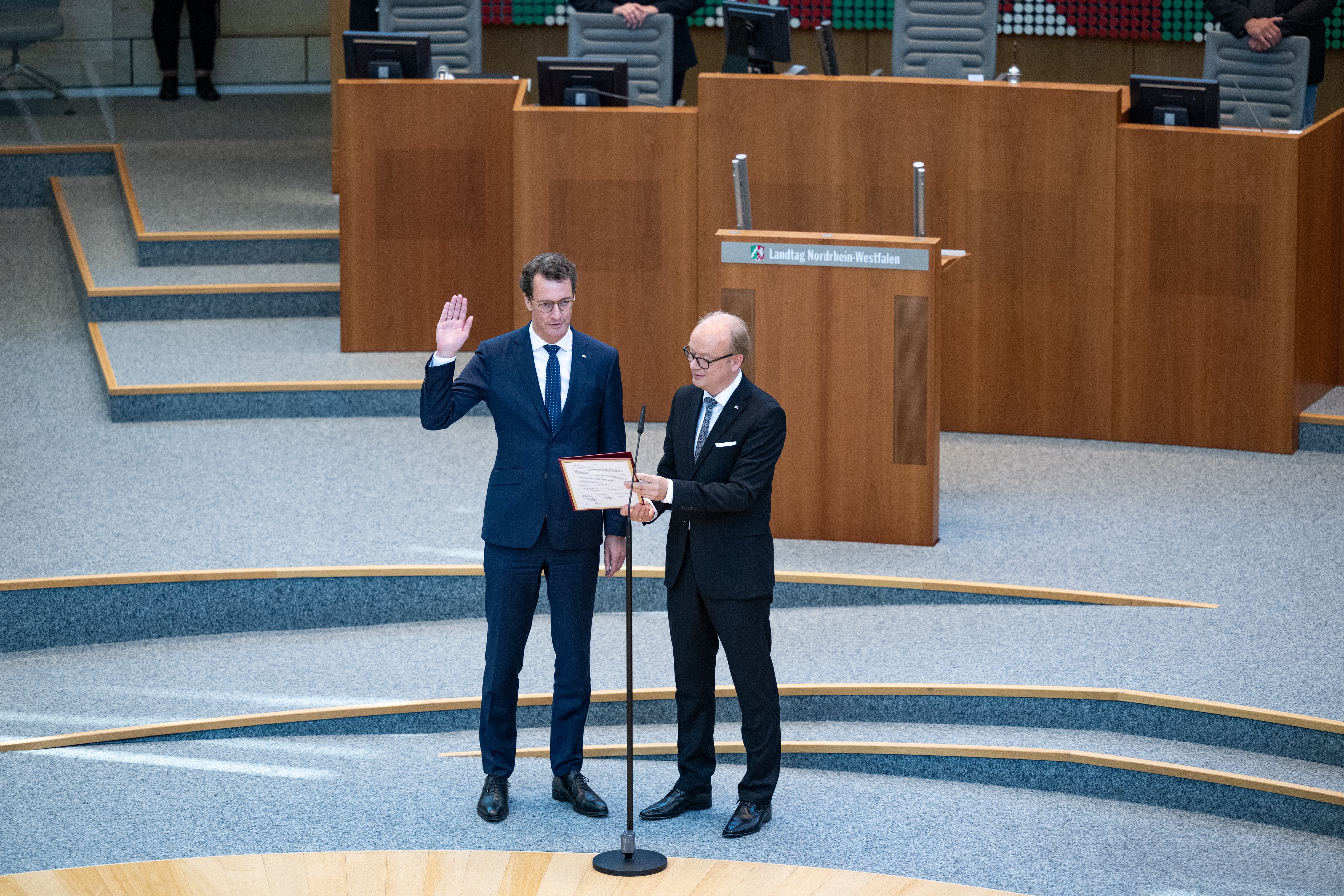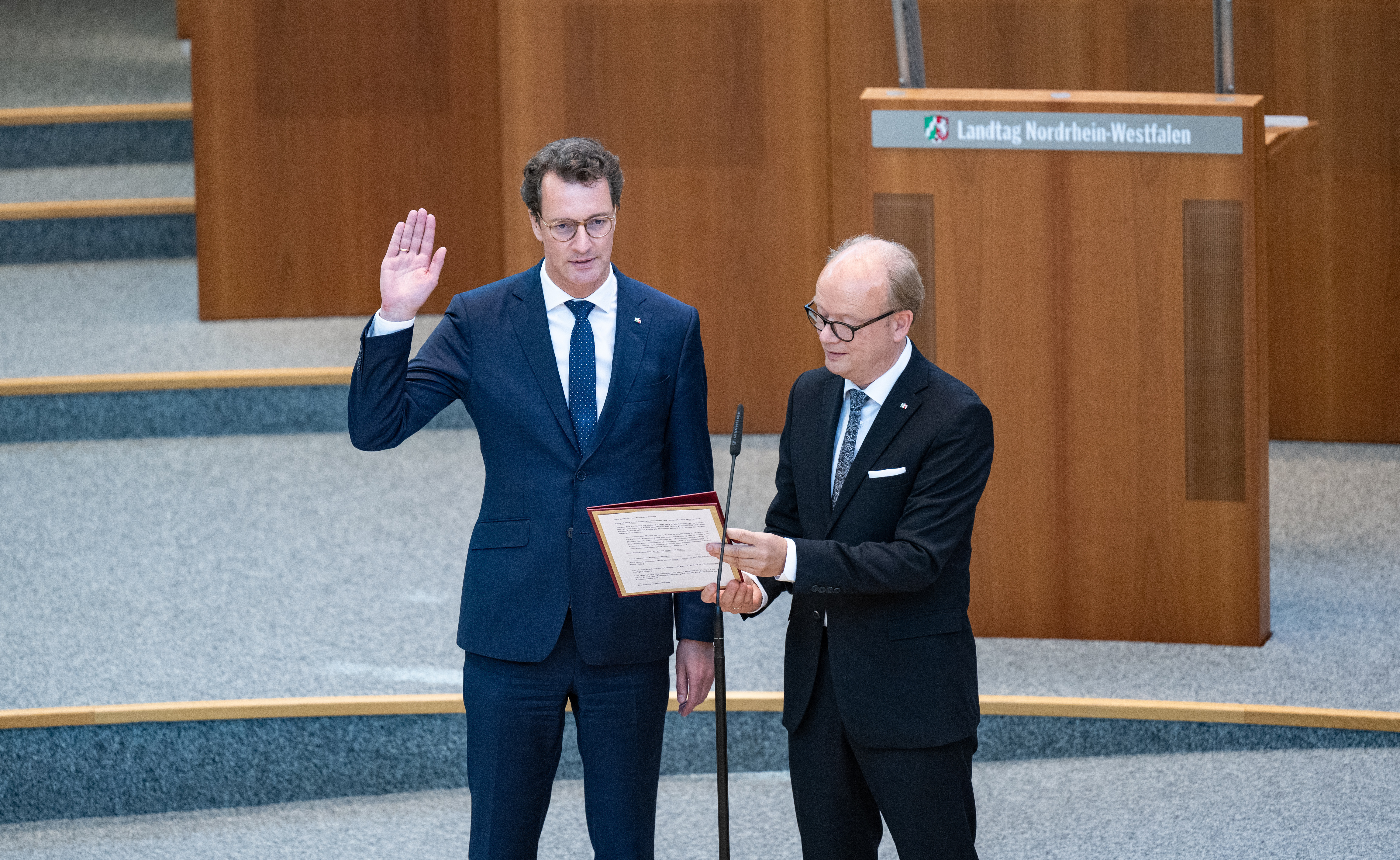 Zwölfter Regierungschef des Landes Nordrhein-Westfalen legt Amtseid ab und startet in seine zweite Amtszeit / Ernennung der Ministerinnen und Minister am Mittwoch