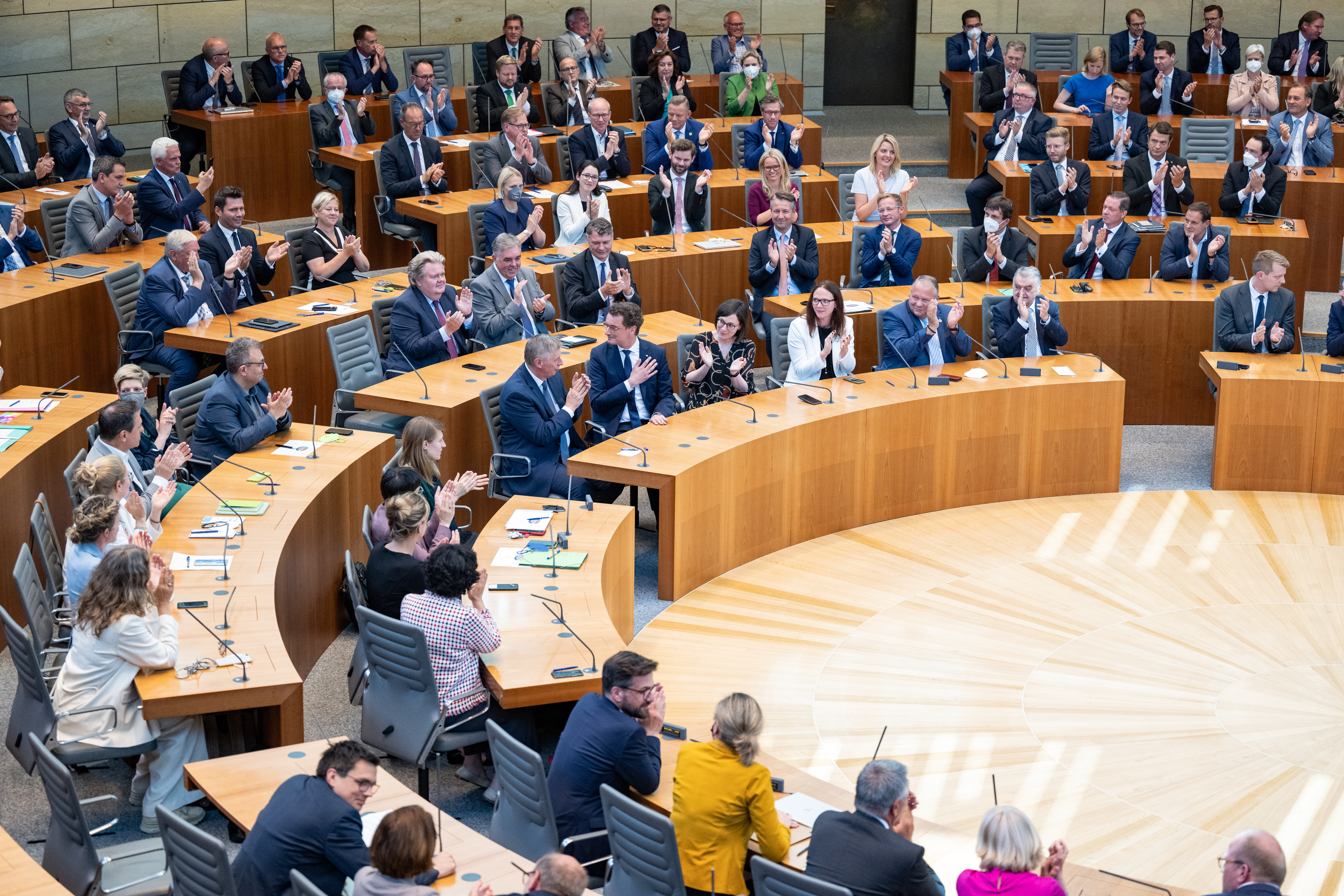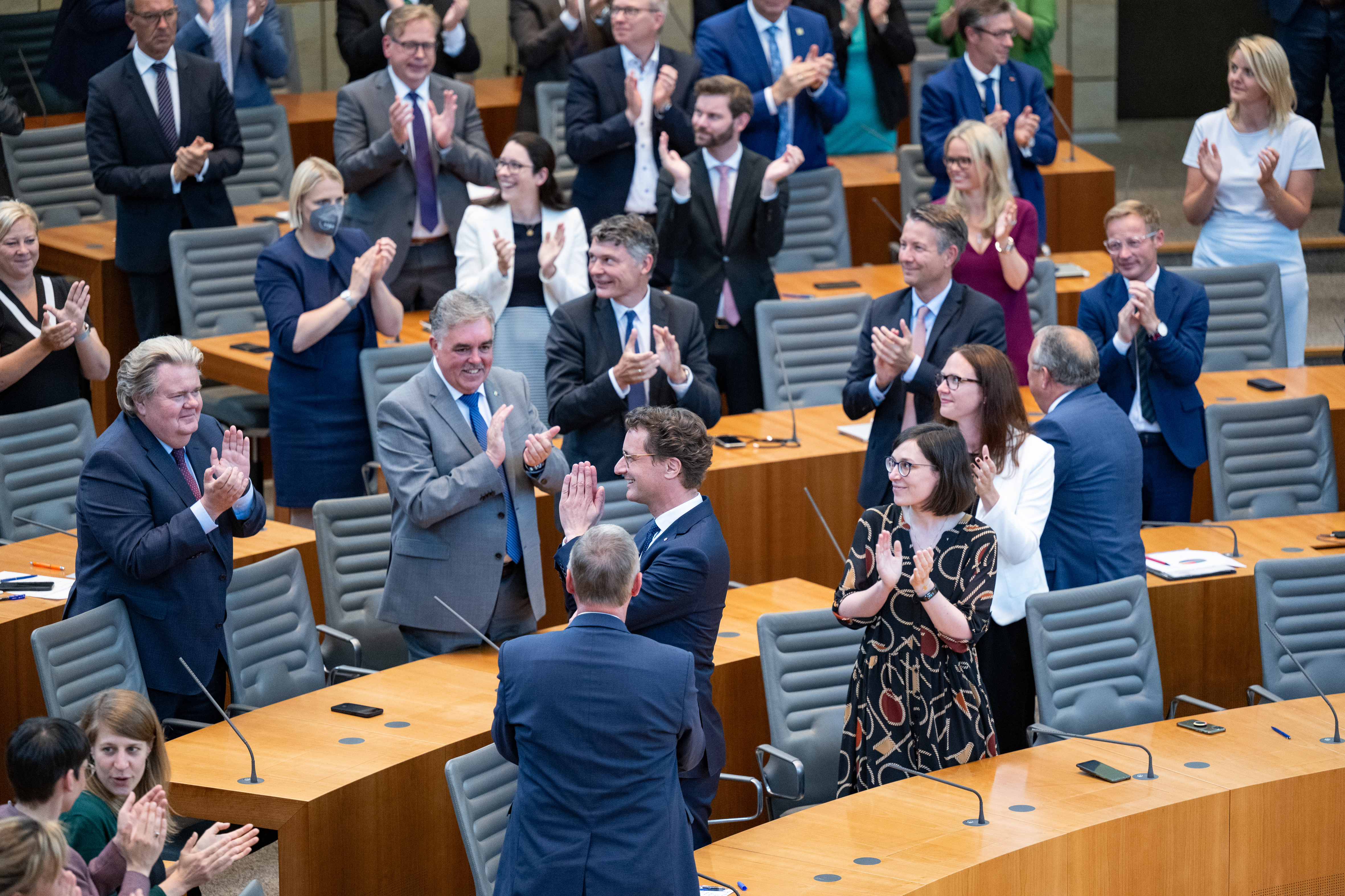 Hendrik Wüst ist am Dienstag, 28. Juni 2022, im Landtag als Ministerpräsident des Landes Nordrhein-Westfalen wiedergewählt und vereidigt worden. Für Ministerpräsident Hendrik Wüst beginnt die zweite Amtszeit; erstmals gewählt worden war er – als zwölfter Ministerpräsident des Landes Nordrhein-Westfalen – am 27. Oktober 2021. Am Mittwoch, 29. Juni 2022, wird der Ministerpräsident im K21 Ständehaus in Düsseldorf seine Ministerinnen und Minister ernennen. Im Anschluss wird das Kabinett im Landtag vereidigt.