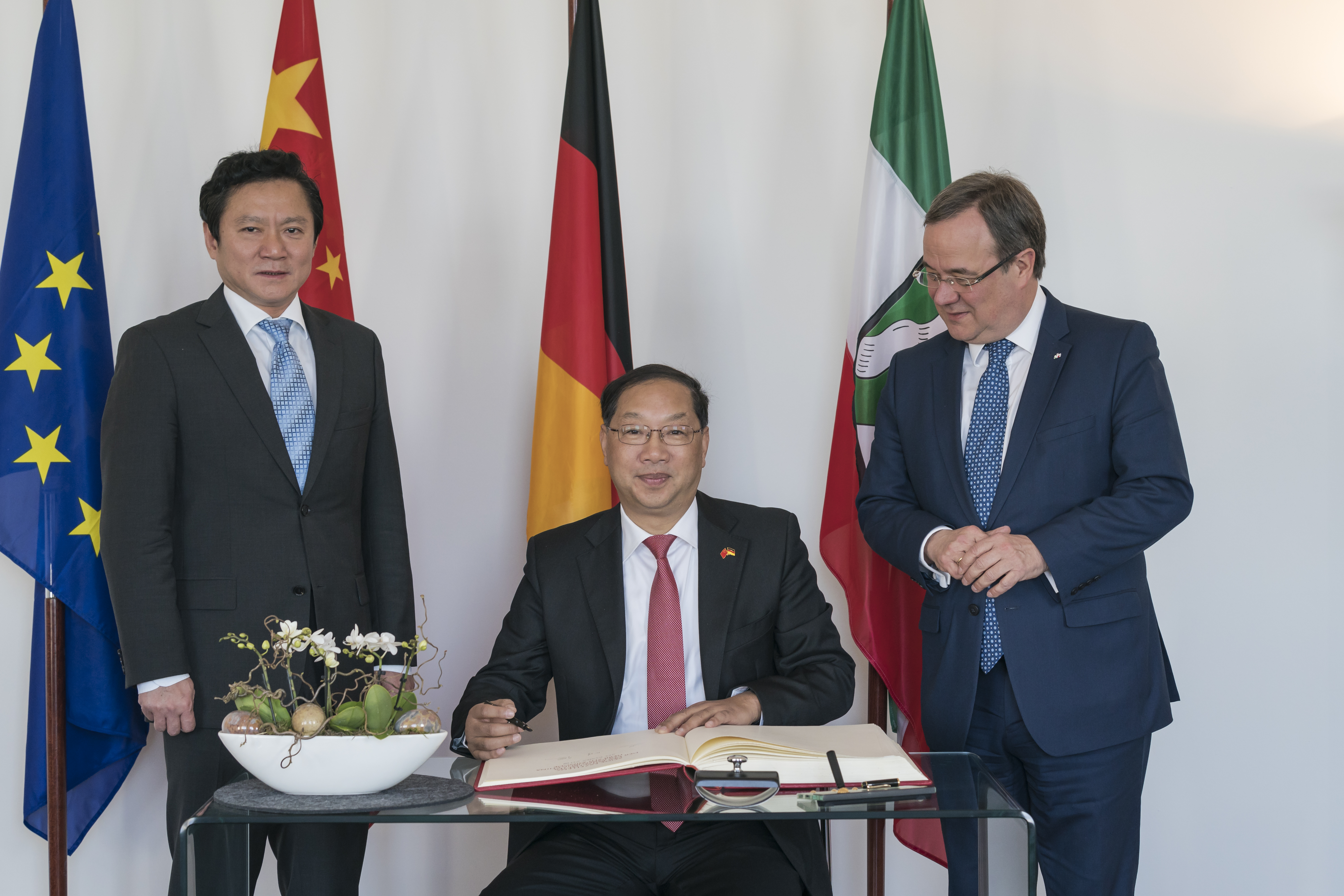 Ministerpräsident Armin Laschet sagte: „Die Volksrepublik China zählt zu den wichtigsten internationalen Partnern Nordrhein-Westfalens, unsere Beziehungen sind heute schon eng und vielfältig. Ohne Zweifel spielt der wirtschaftliche Austausch dabei eine wichtige Rolle. Hier sehe ich auch noch viel Potenzial, die Zusammenarbeit im beiderseitigen Interesse und Nutzen zu vertiefen - zum Beispiel bei der Digitalisierung, der Elektromobilität und beim Umwelt- und Klimaschutz. Wichtig sind aber auch die zahlreichen zivilgesellschaftlichen Verbindungen zwischen unseren beiden Ländern - mit über 20 Städtepartnerschaften, 200 Hochschulkooperationen und 40 Schulpartnerschaften. Darauf sind wir sehr stolz.“