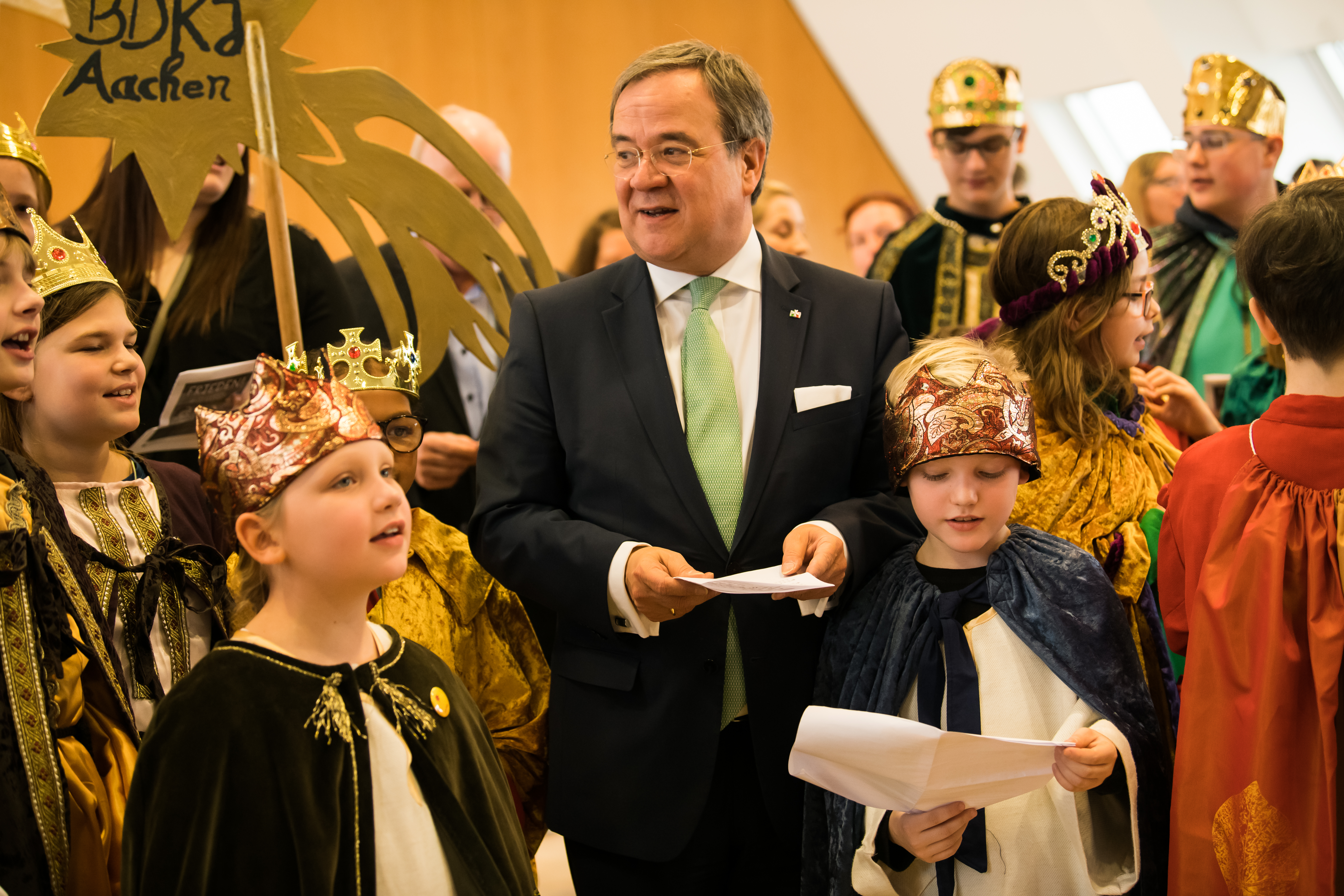 Ministerpräsident Armin Laschet hat am Freitag die Sternsinger zum traditionellen Dreikönigssingen im Landeshaus begrüßt.