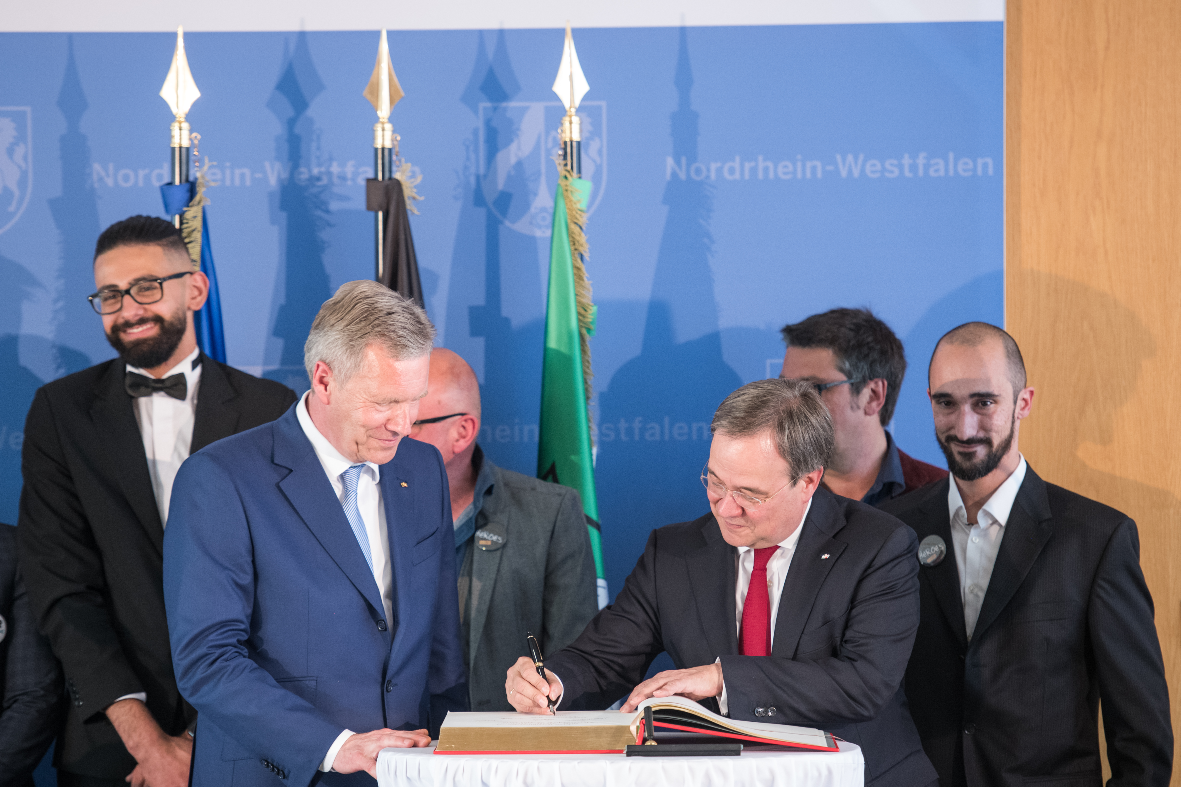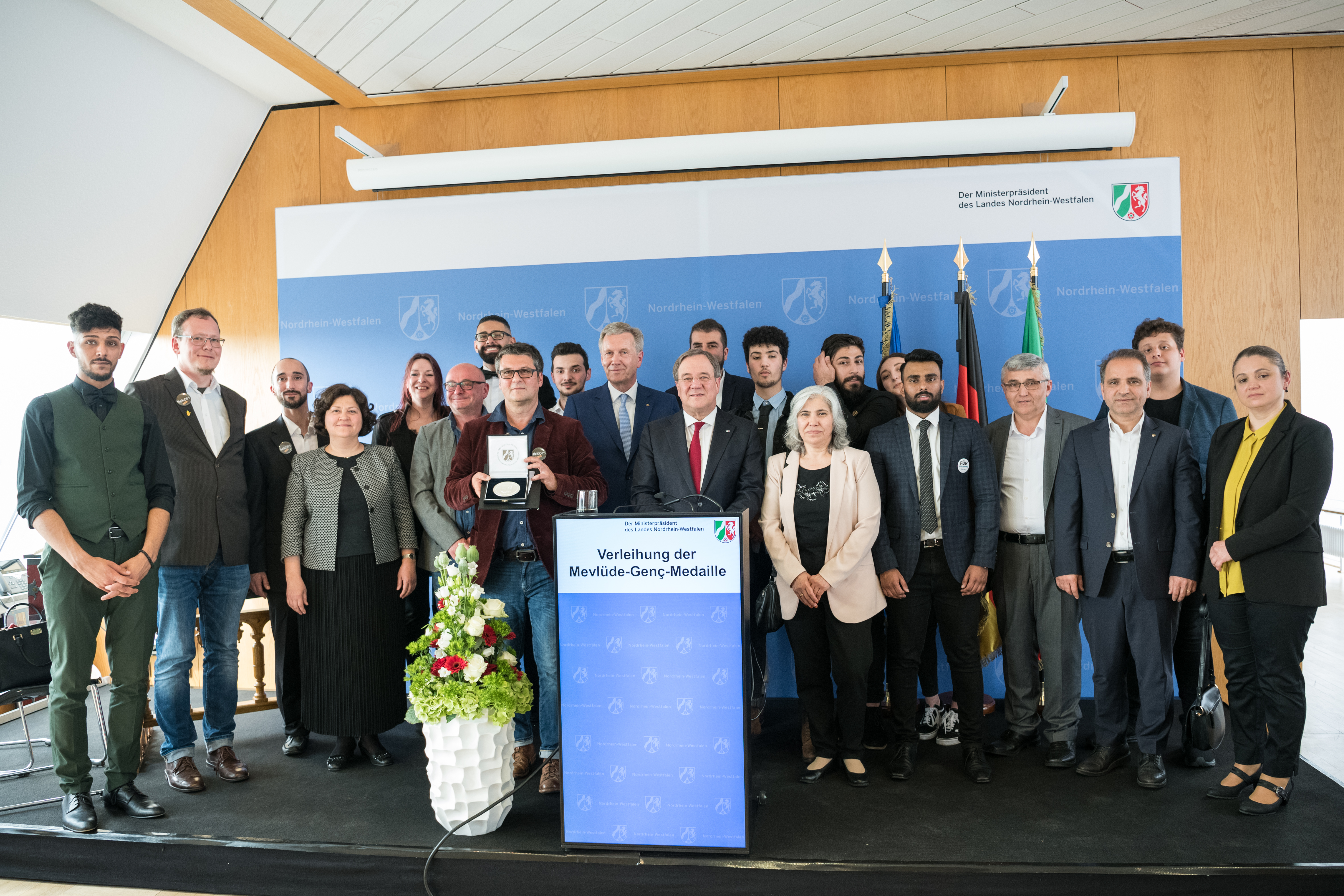 Ministerpräsident Armin Laschet hat heute den Duisburger Verein „Jungs e.V.“ mit der ersten Mevlüde-Genç-Medaille des Landes Nordrhein-Westfalen im Rahmen einer Feierstunde in der Staatskanzlei ausgezeichnet.