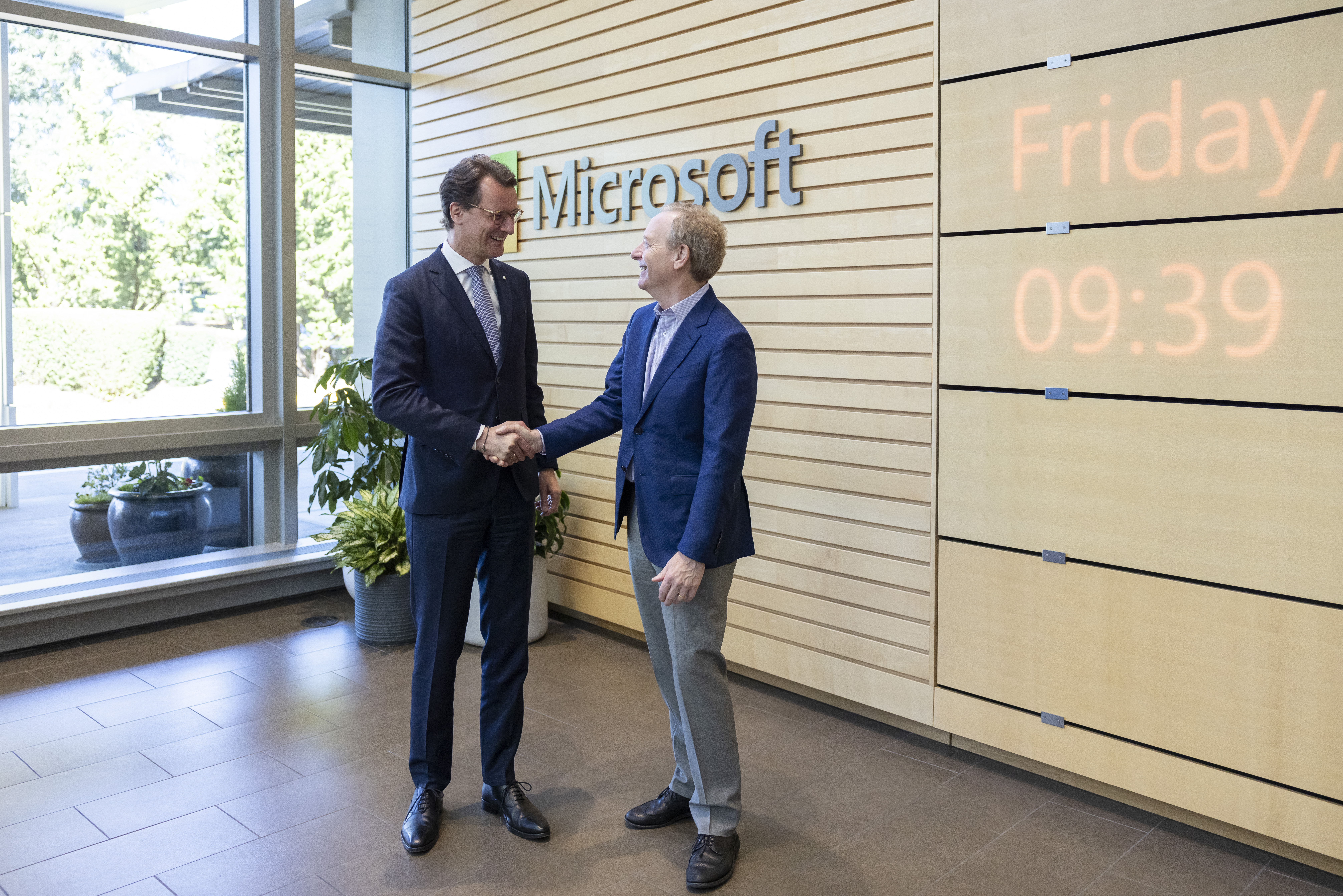 Ministerpräsident Wüst besucht Microsoft-Unternehmenszentrale in Seattle / Austausch mit Vice-Chair und President Brad Smith