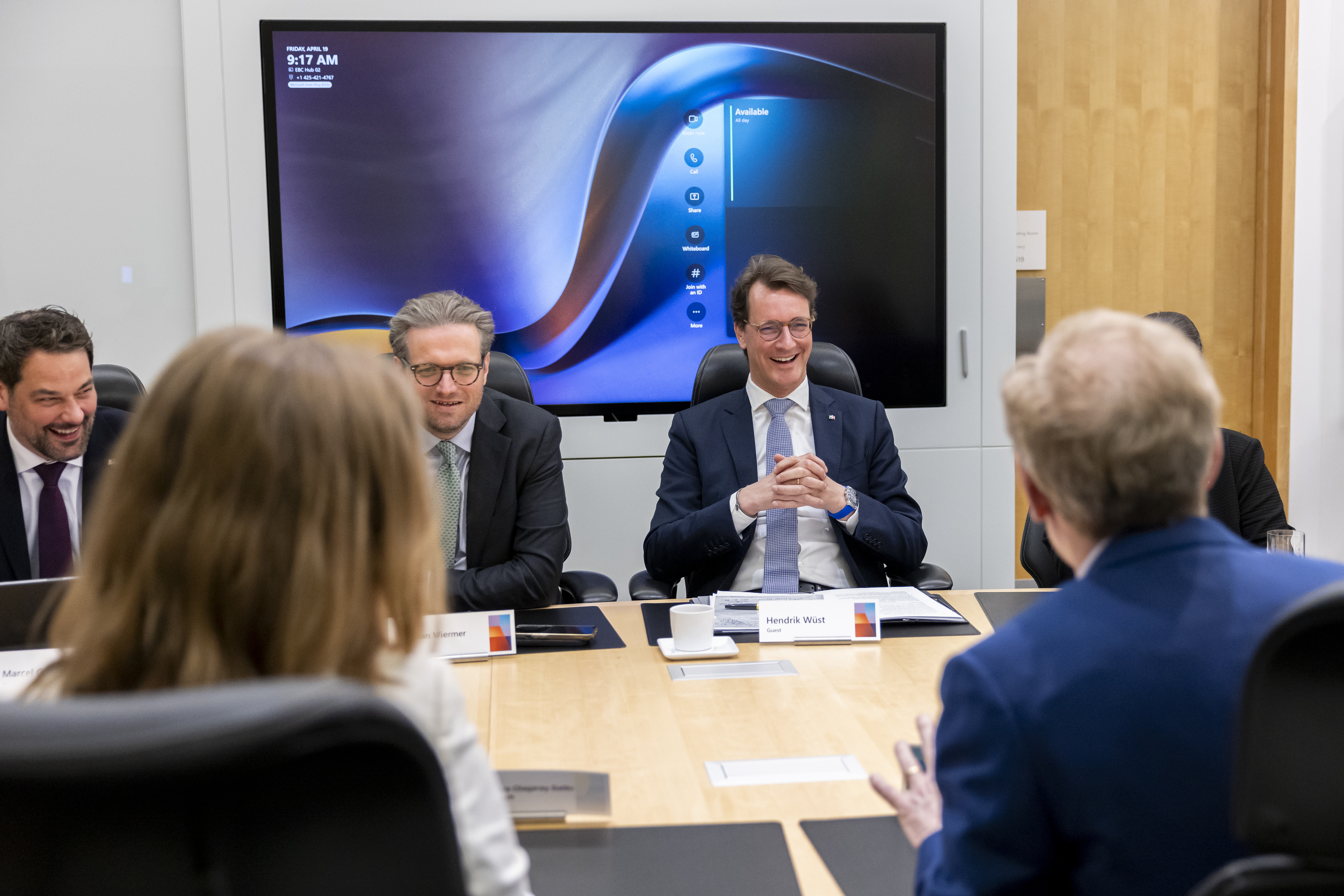 Nach dem Gespräch mit Brad Smith hat sich Ministerpräsident Wüst im Konzernsitz von Microsoft in mehreren weiteren Gesprächen unter anderem mit KI-Experten über den Ausbau von digitaler Infrastruktur ausgetauscht.