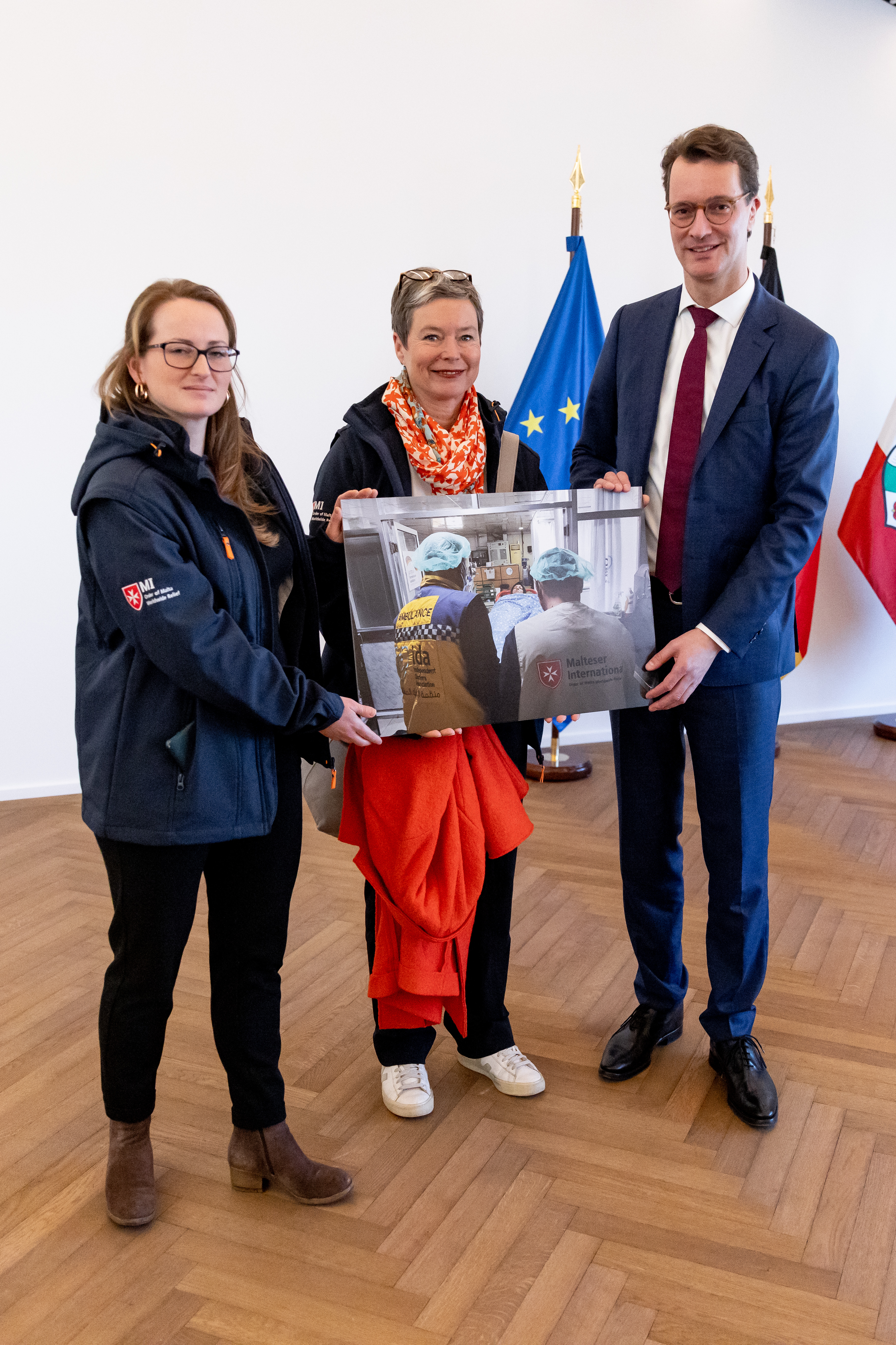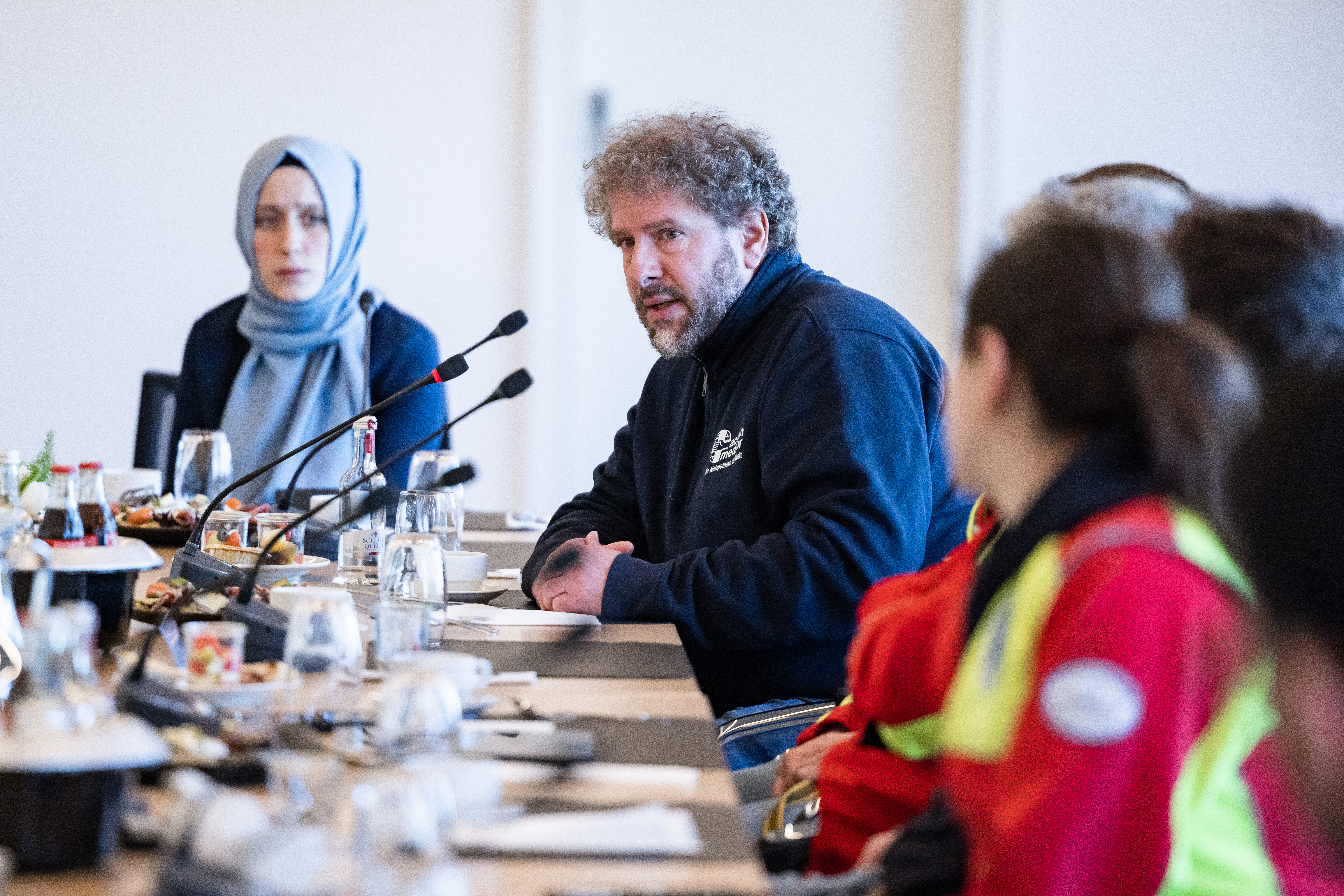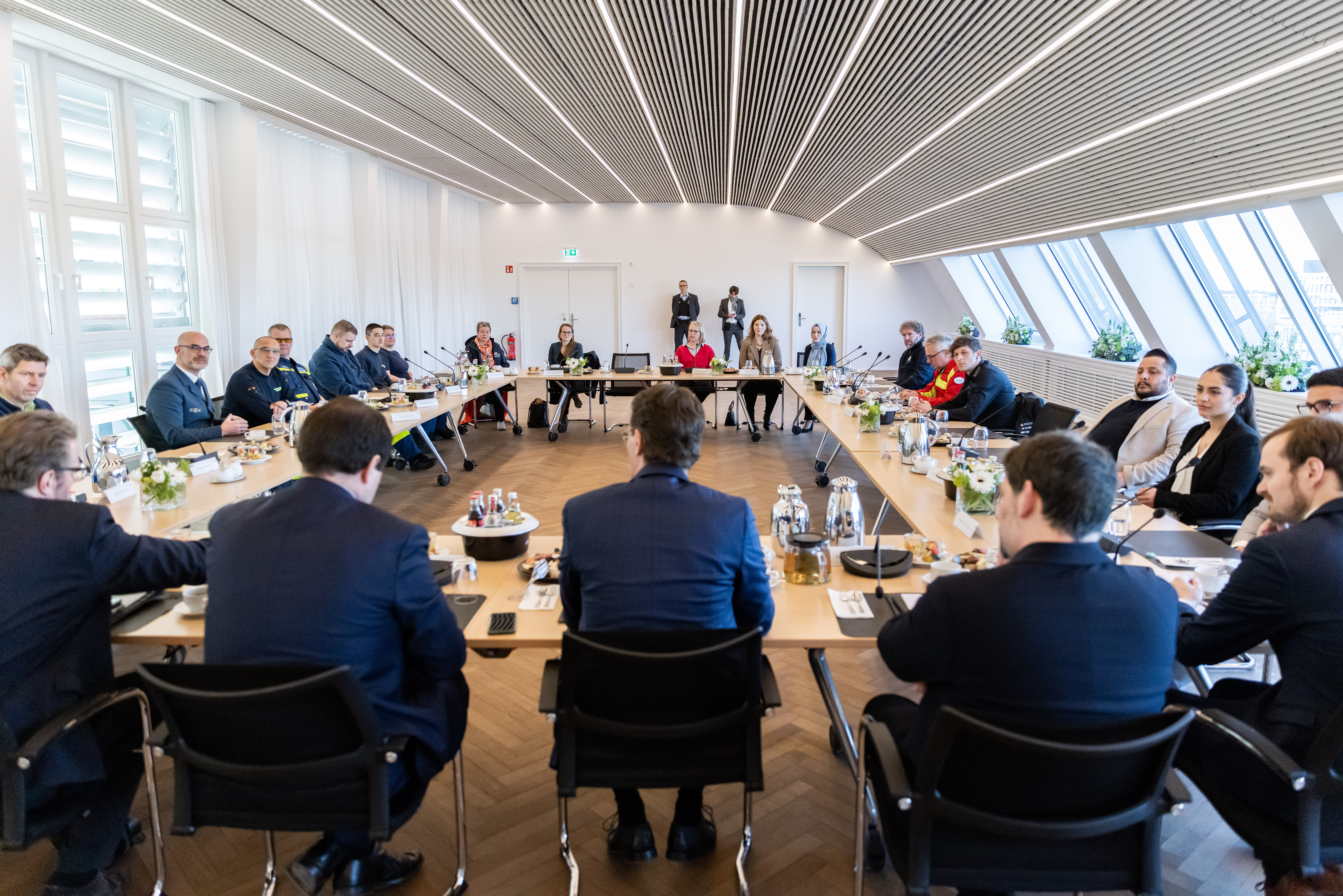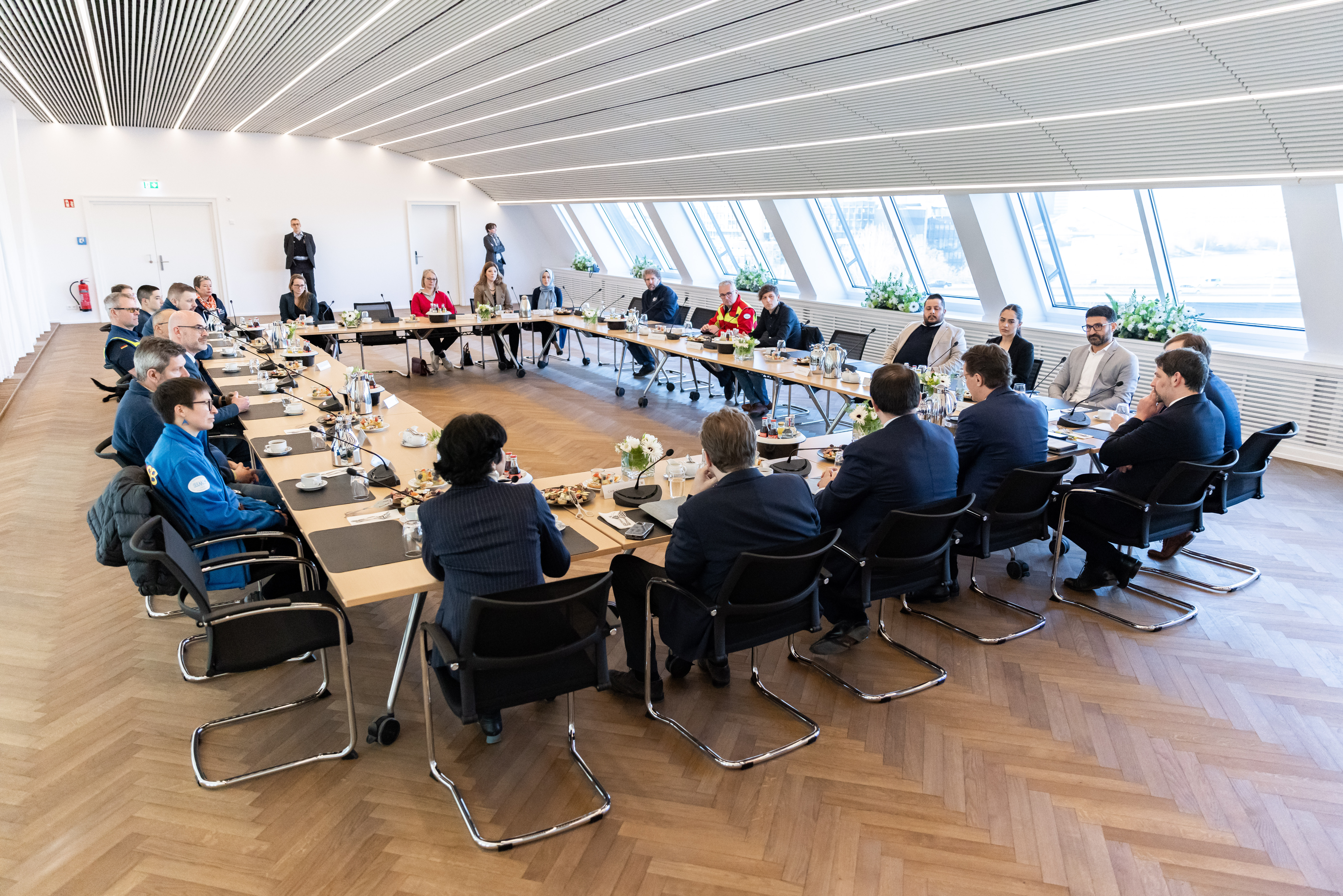 Ministerpräsident Hendrik Wüst hat sich am Donnerstag, 2. März 2023, im Landeshaus mit Helfern aus Nordrhein-Westfalen ausgetauscht, die nach den schweren Erdbeben in der Türkei und in Syrien vor Ort bei der Rettung unterstützt haben. Hilfskräfte von action medeor, den Maltesern, I.S.A.R., dem Bundesverband Rettungshunde, des Arbeiter-Samariter-Bunds und des Technischen Hilfswerks waren bereits in den ersten Tagen nach den schweren Erdbeben in die betroffenen Gebiete gereist. Auch von REWE und dem Rheinland Klinikum Neuss haben sich Freiwillige auf den Weg gemacht, um Opfer zu versorgen. An dem Gespräch nahm auch Nathanael Liminski, Minister für Bundes- und Europaangelegenheiten, Internationales sowie Medien und Chef der Staatskanzlei, teil.